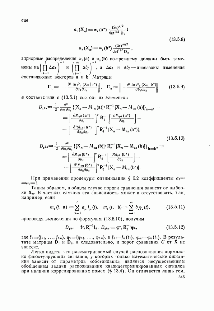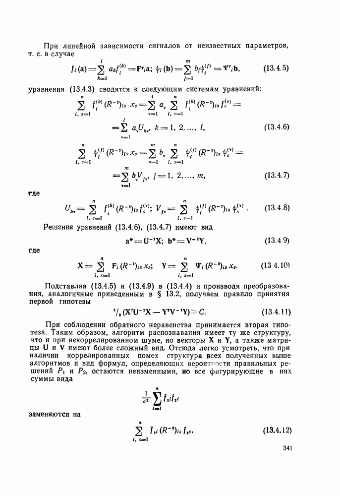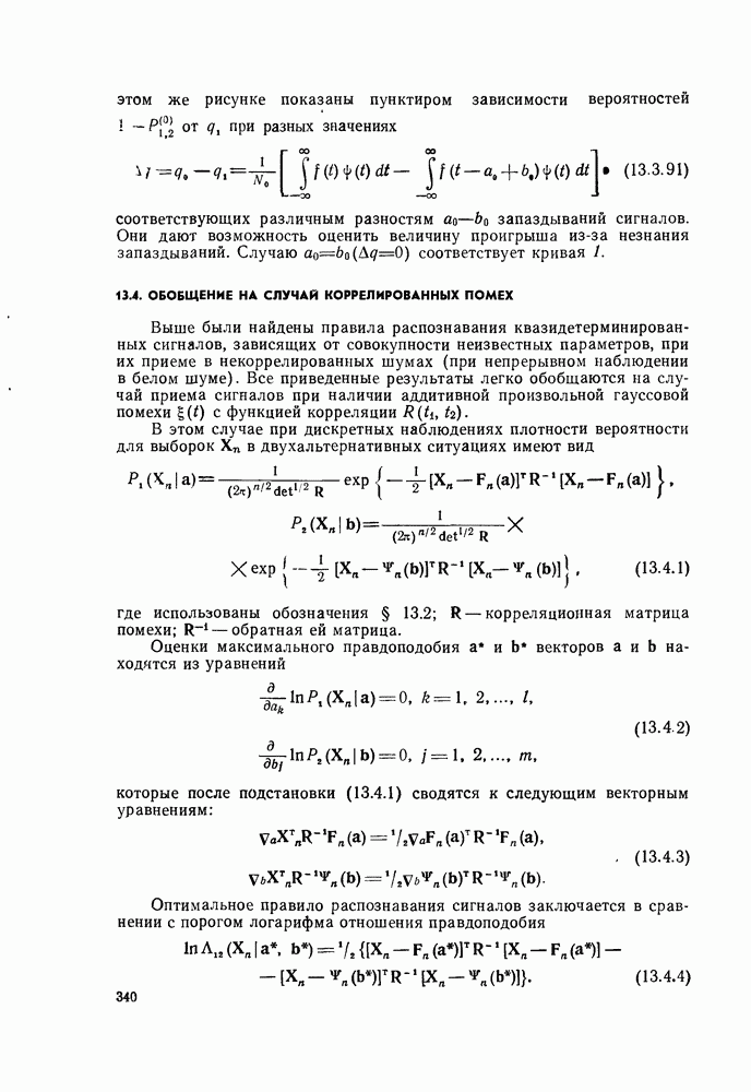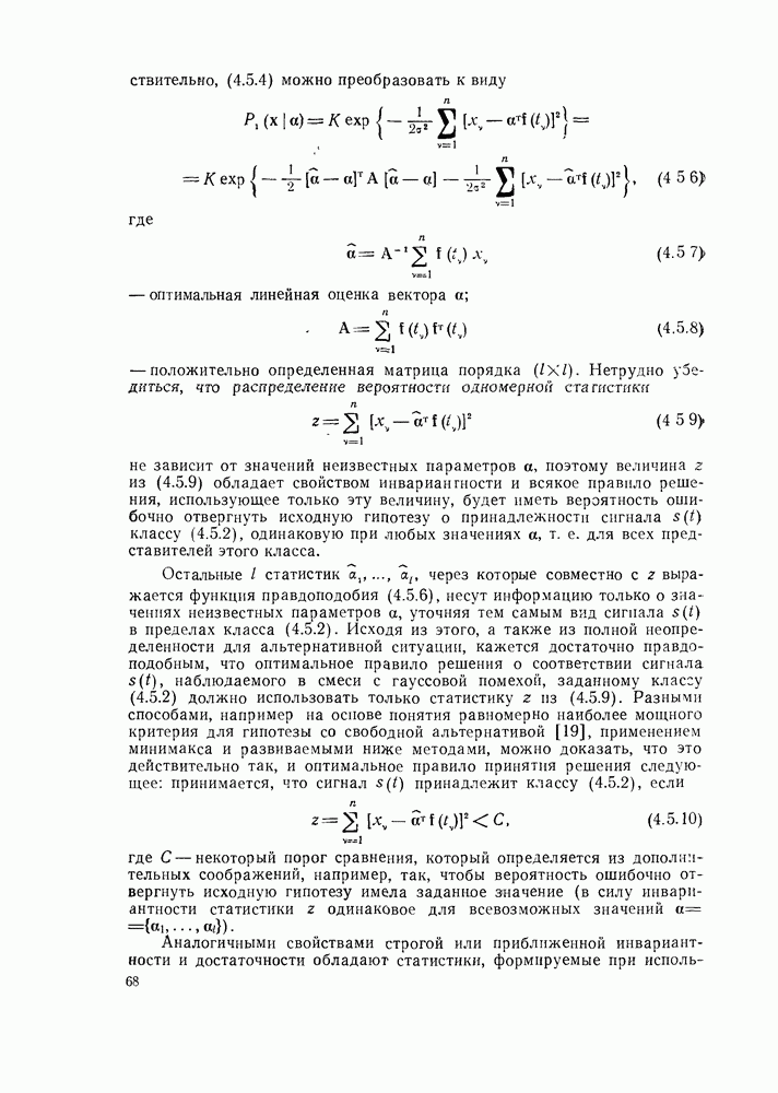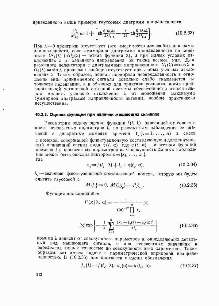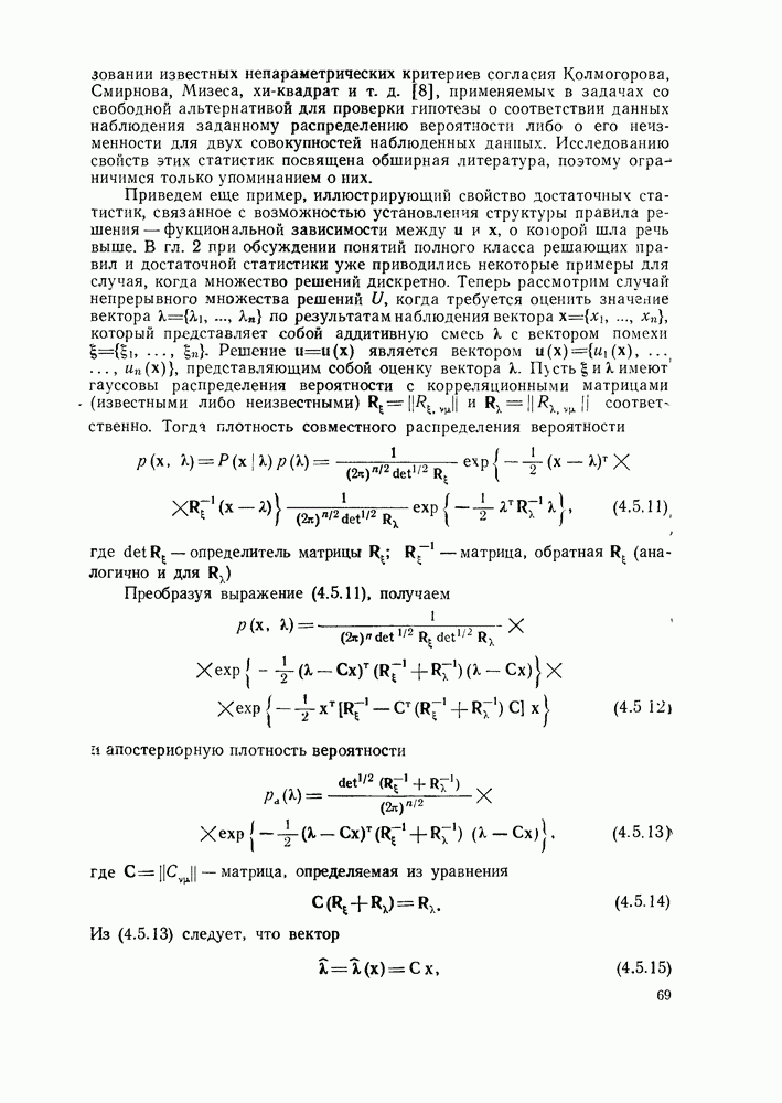 и к должны иметь гауссово распределение вероятности. Если эти условия не выполняются, то линейная оценка (9.3.1) может иметь намного худшую эффективность, чем оптимальная оценка вектора k.