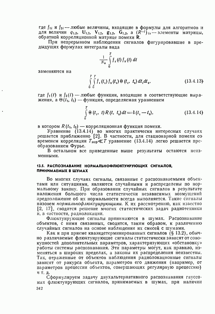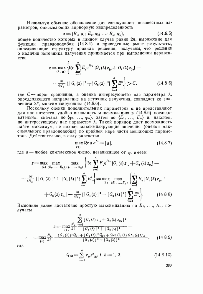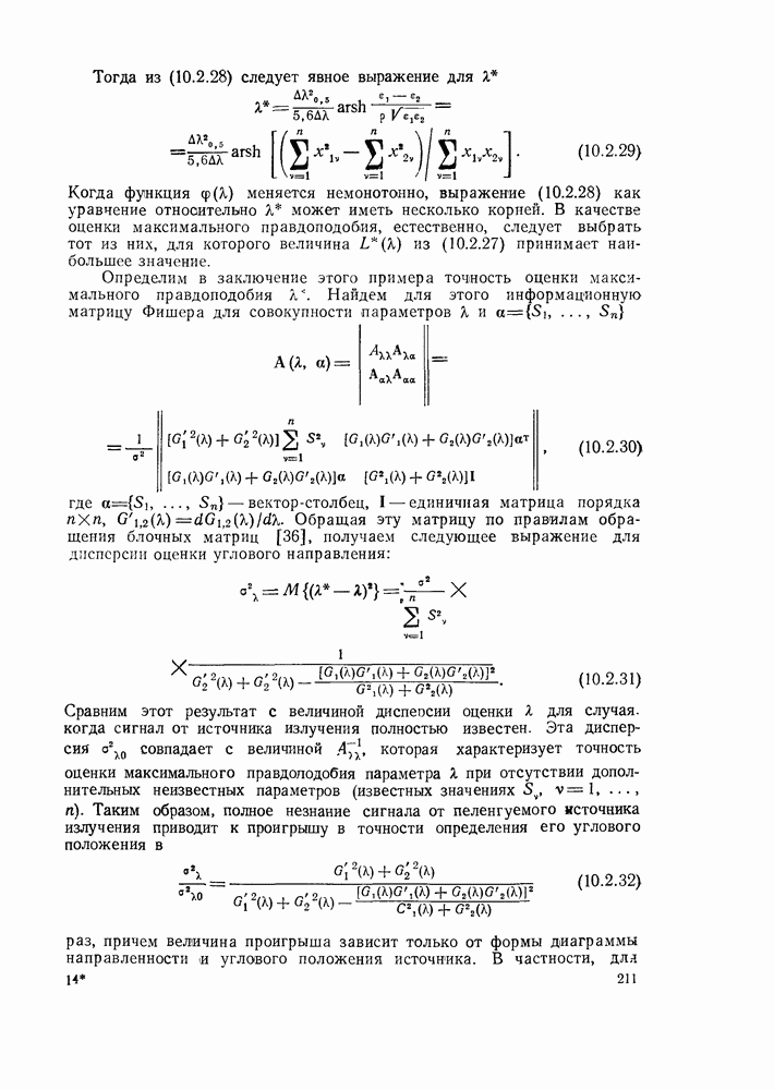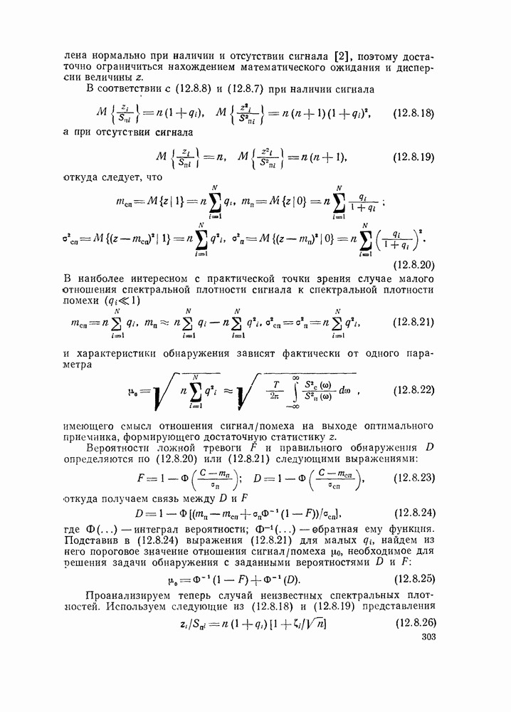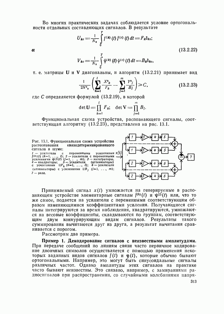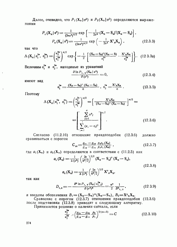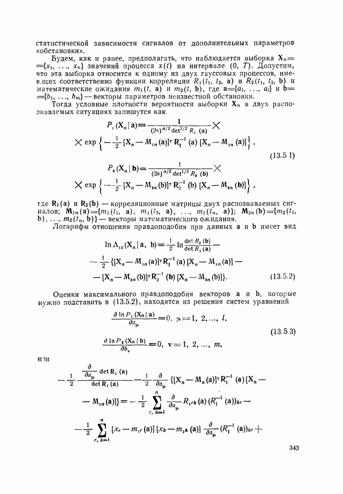 и к должны иметь гауссово распределение вероятности. Если эти условия не выполняются, то линейная оценка (9.3.1) может иметь намного худшую эффективность, чем оптимальная оценка вектора k.