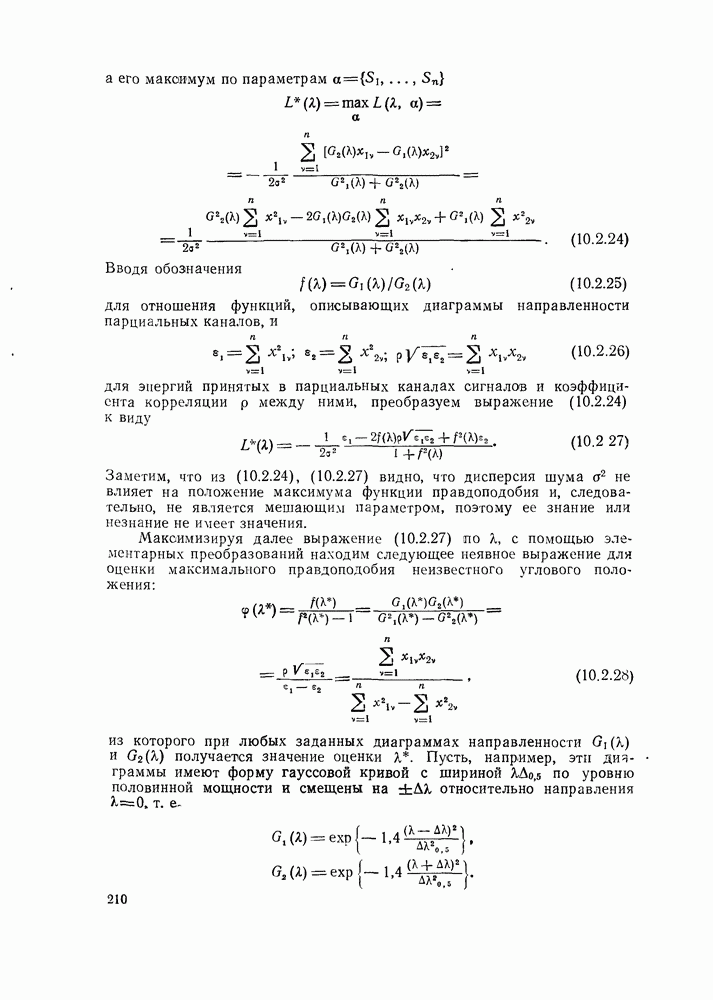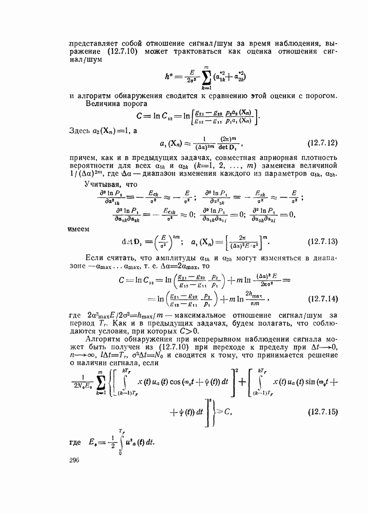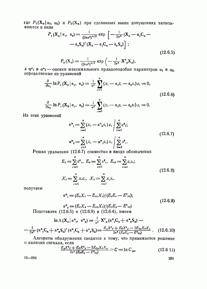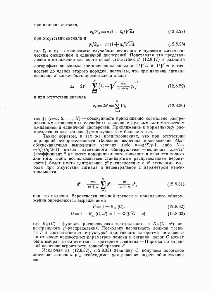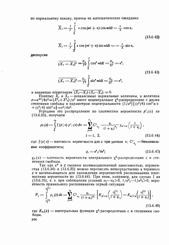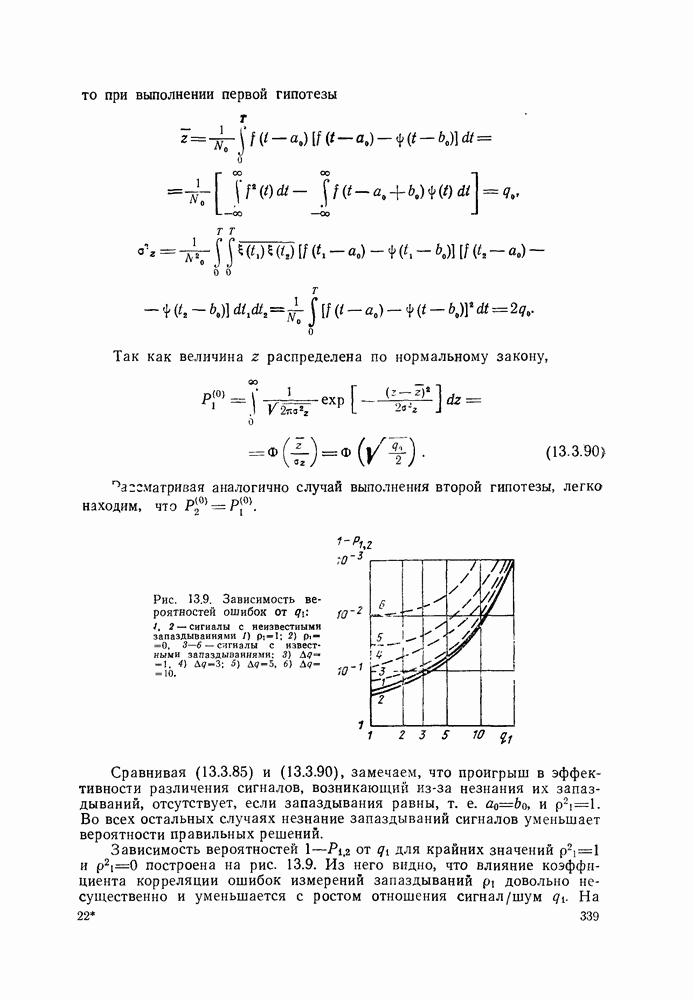 и к должны иметь гауссово распределение вероятности. Если эти условия не выполняются, то линейная оценка (9.3.1) может иметь намного худшую эффективность, чем оптимальная оценка вектора k.
