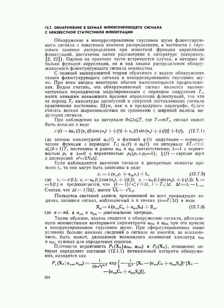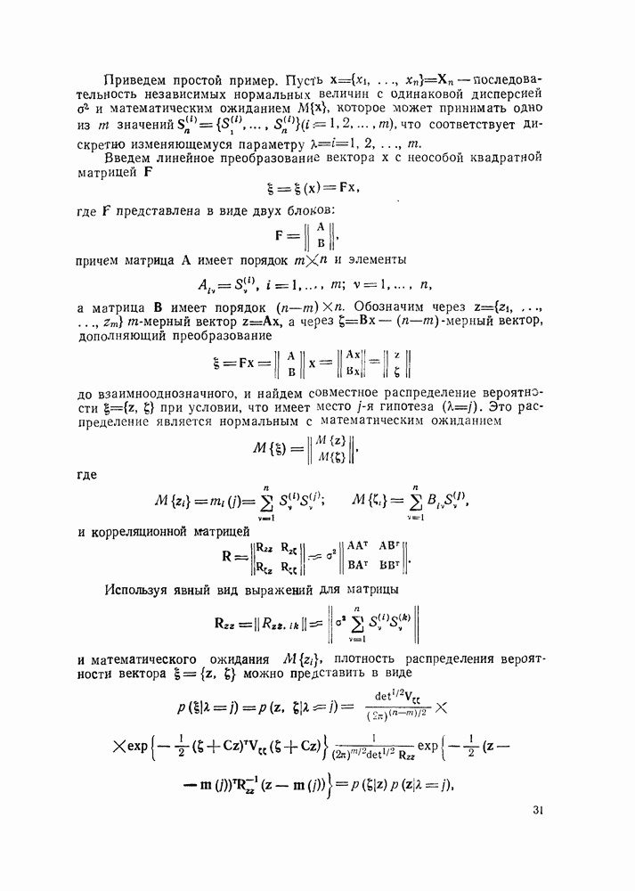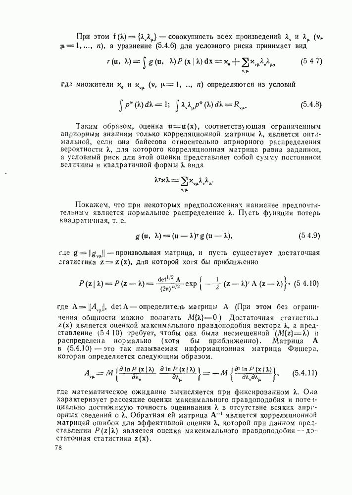 определяющая безусловное распределение вероятности X, отсутствуют; и пусть имеющиеся априорные сведения сводятся к заданию корреляционных матриц