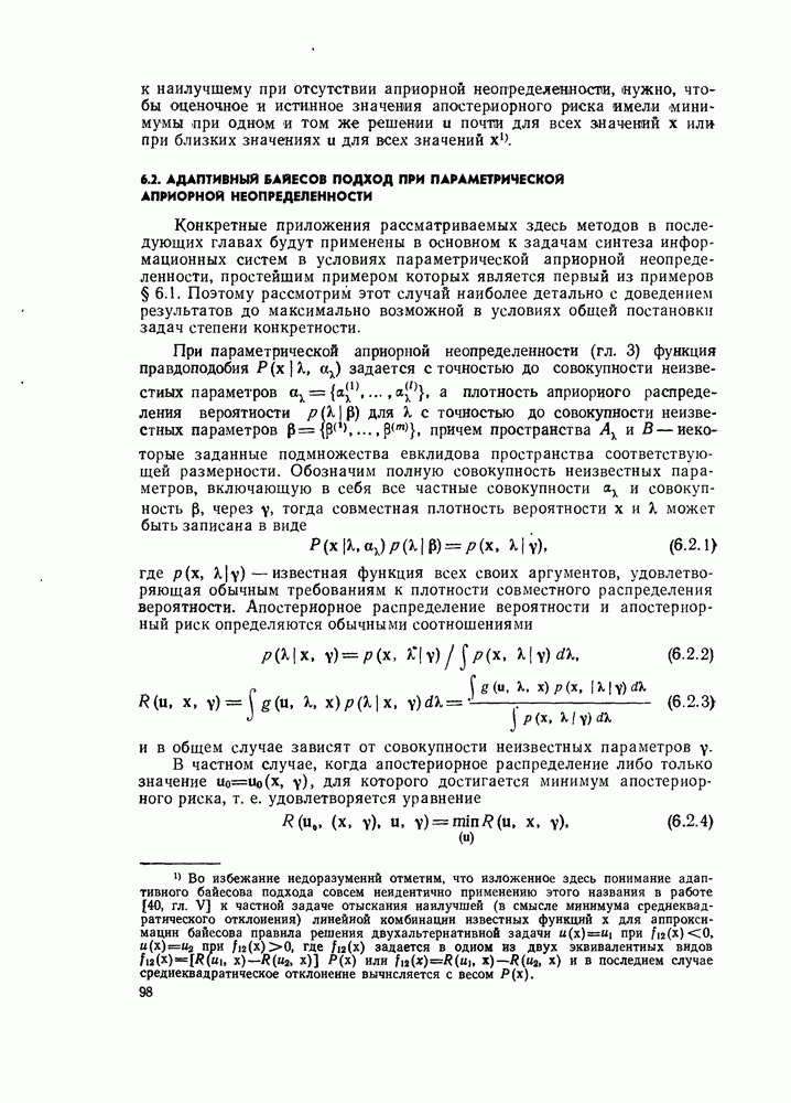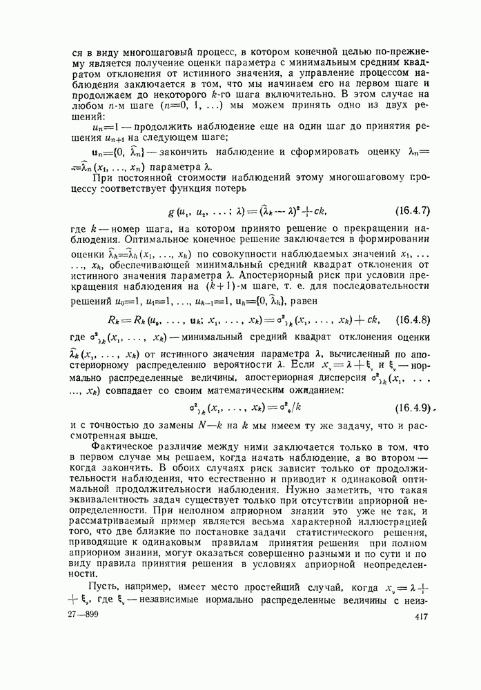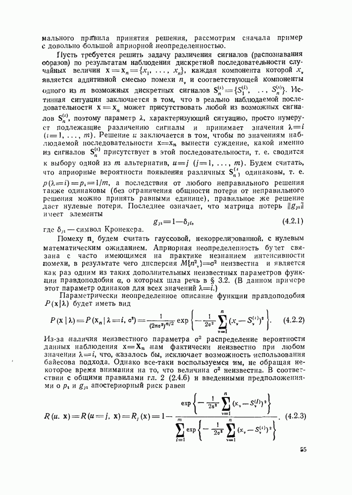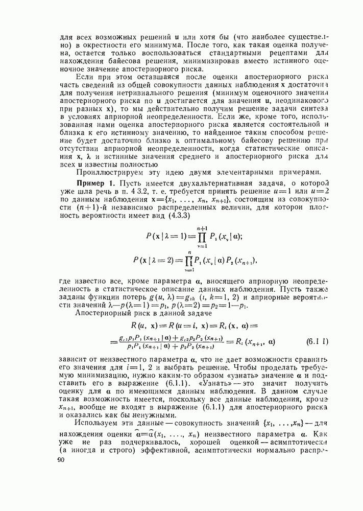 которая, с одной стороны, действительно обеспечила бы возможность вычисления среднего риска, а с другой — имела приемлемую эффективность или хотя бы давала уверенность в том, что сделано все возможное при заданном состоянии наших априорных значений и имеющемся объеме данных наблюдения. Рассмотрим два примера подобных задач.