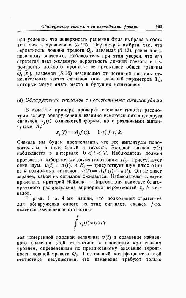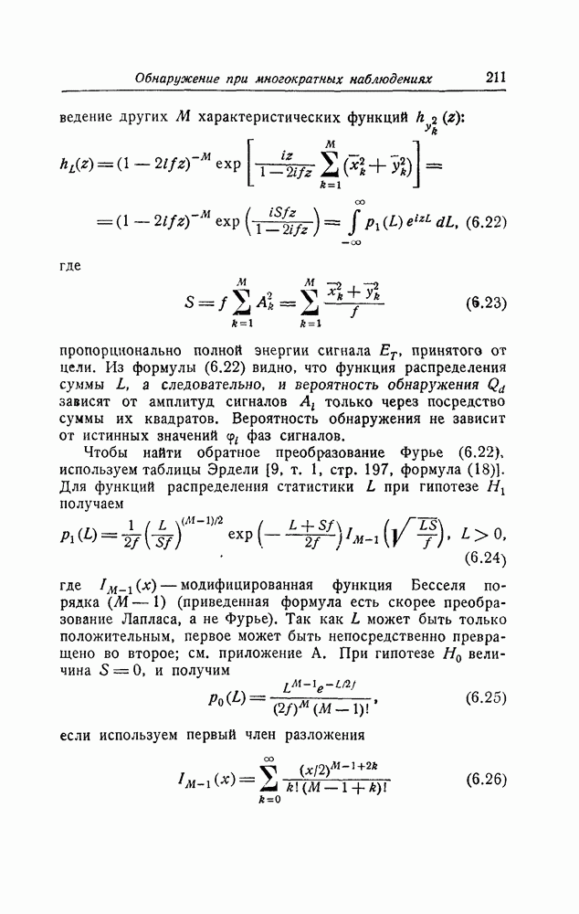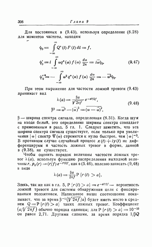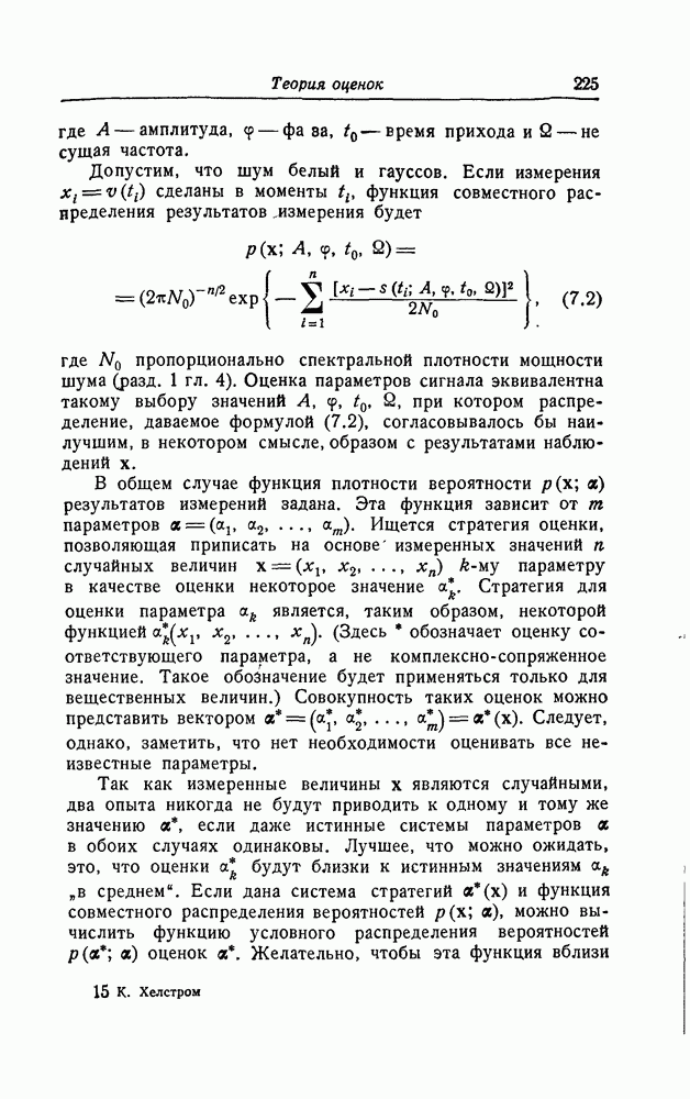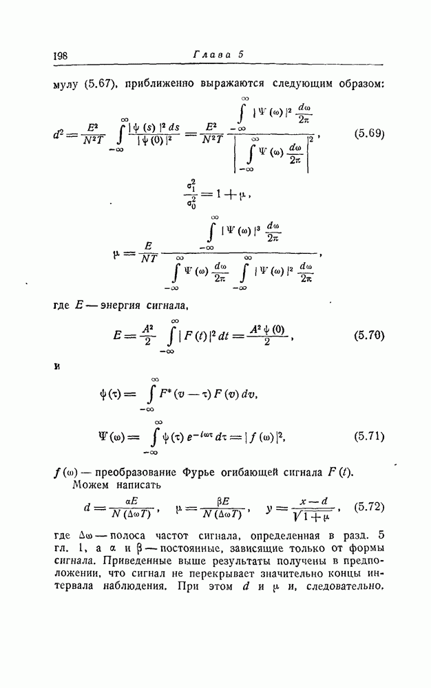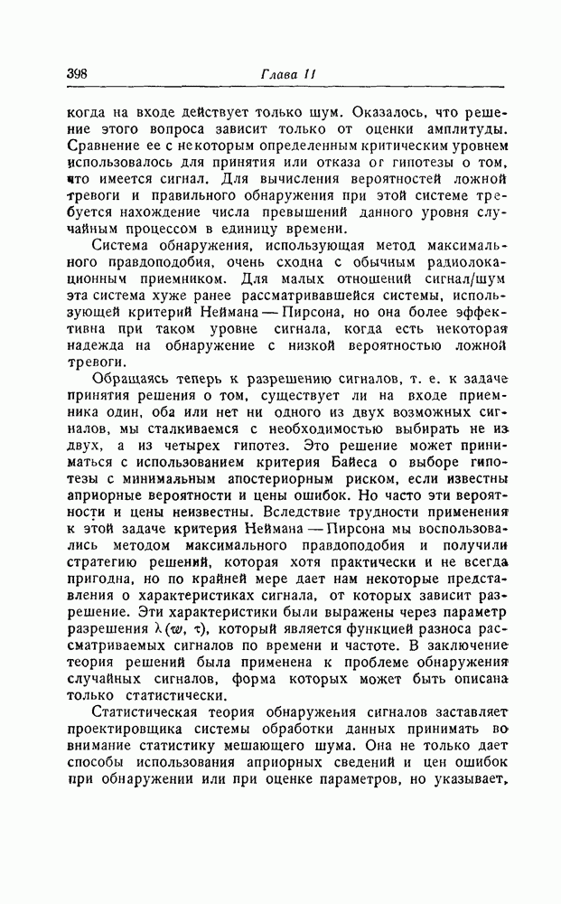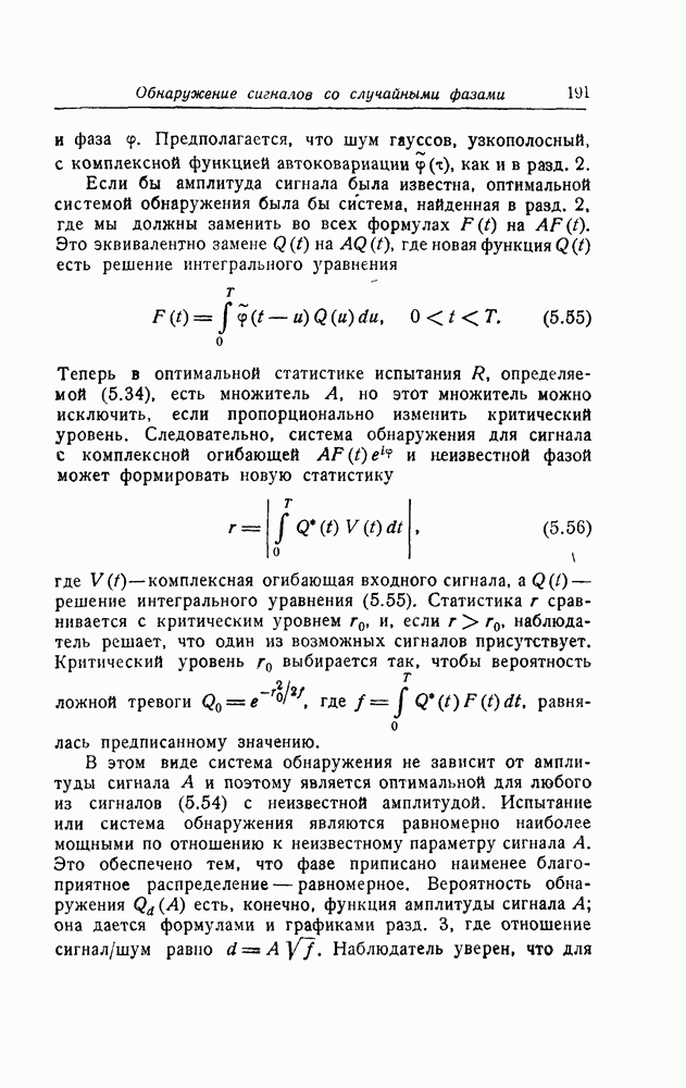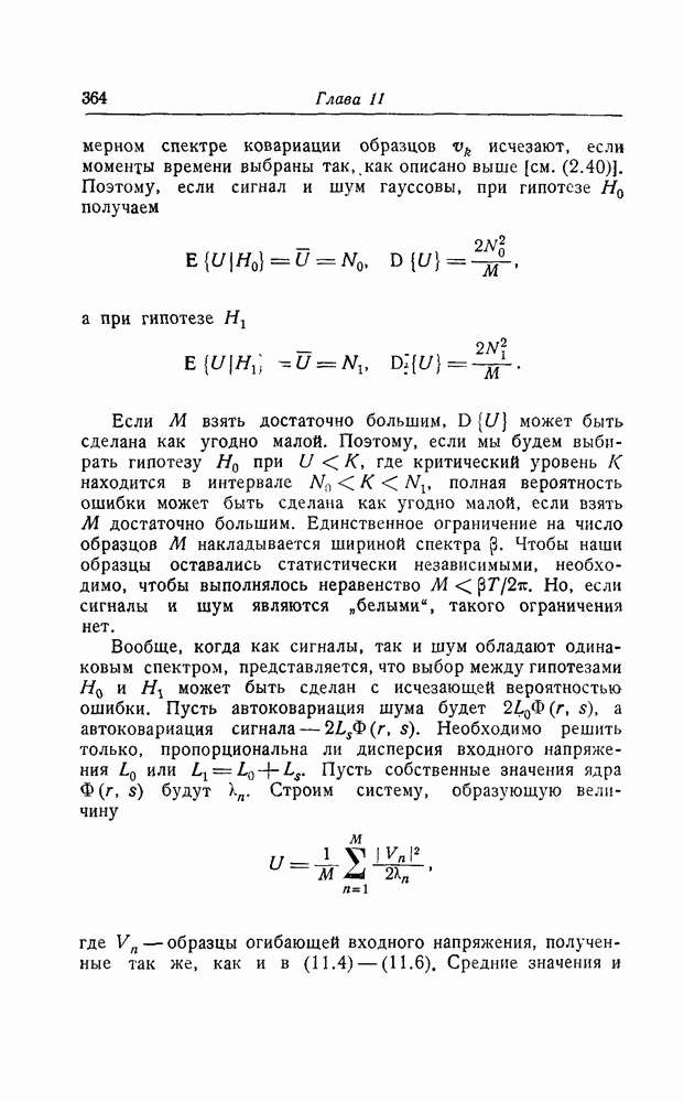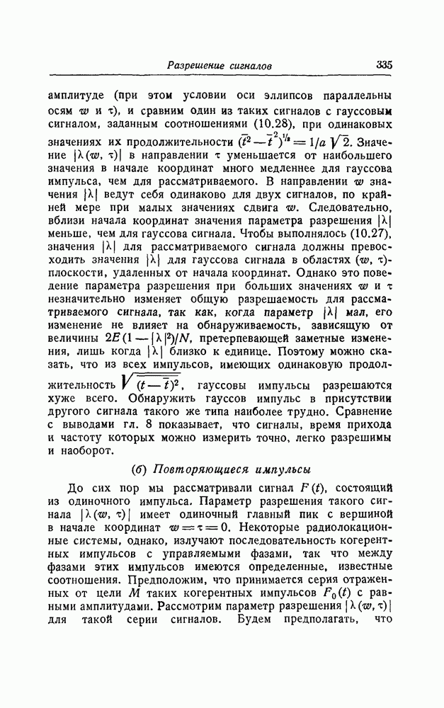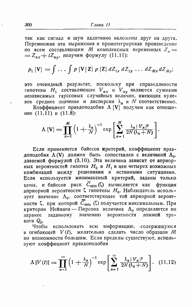результат представляет наилучшее, что наблюдатель может сделать, по крайней мере при больших отношениях сигнал/шум. Для меньших отношений сигнал/шум можно ожидать, что дисперсии ошибок будут больше, чем даваемые соотношениями (8.56) из-за возможности неправильного решения вопроса, который именно пик функции