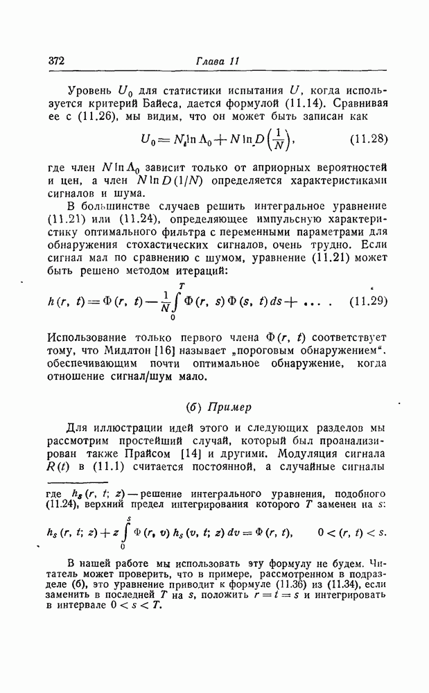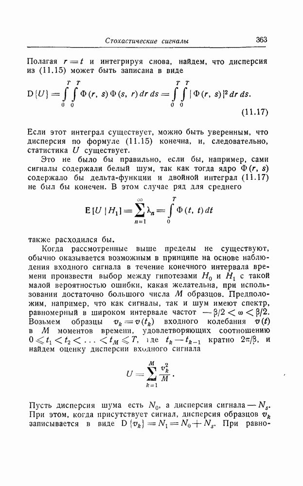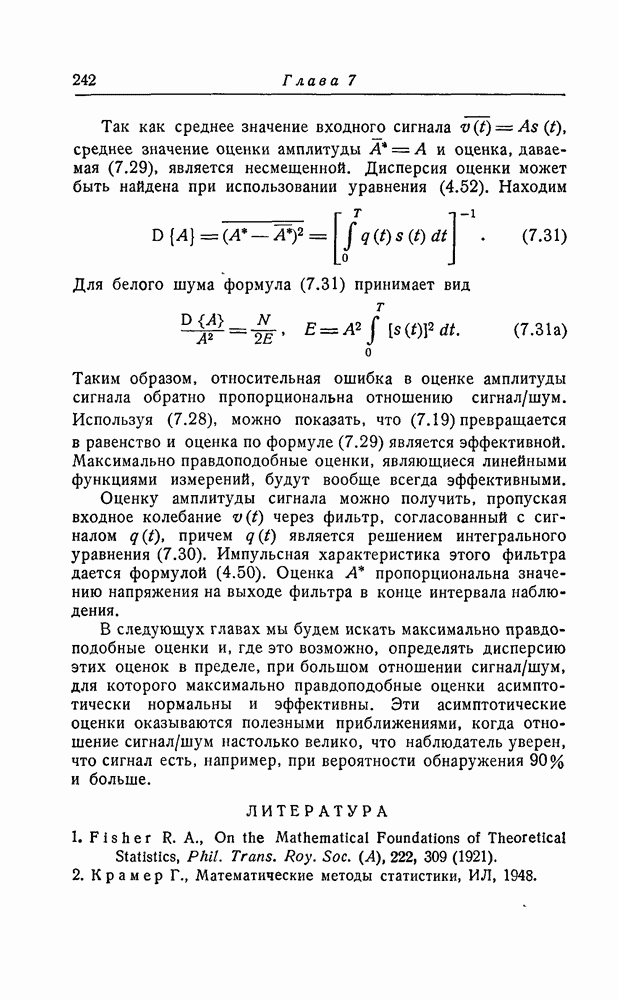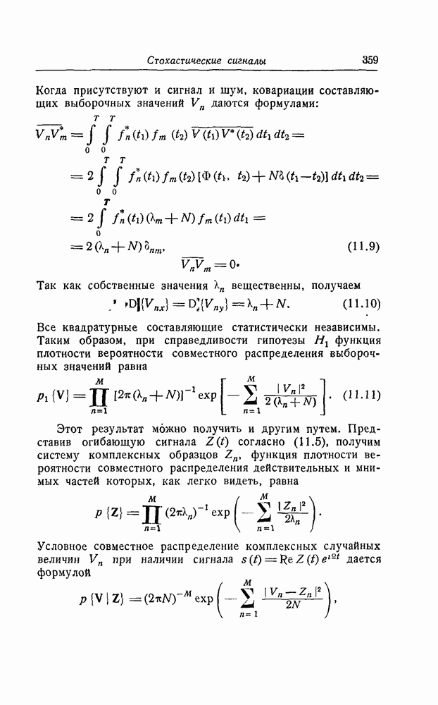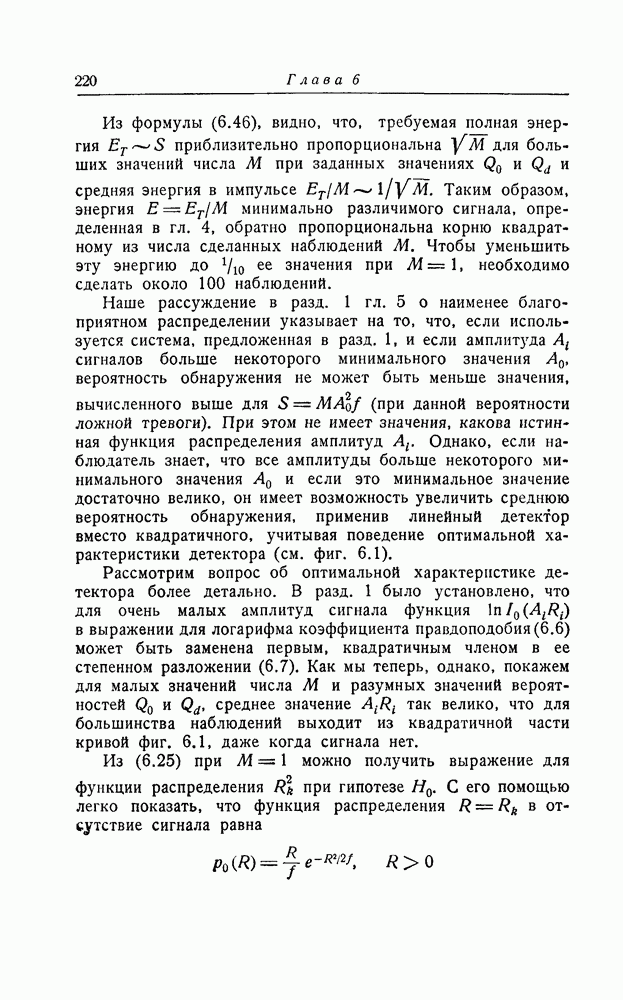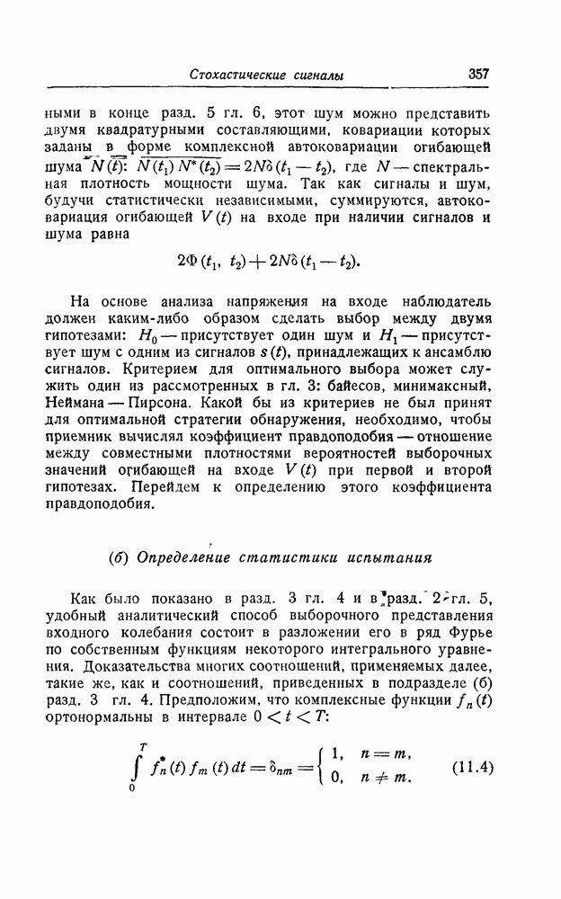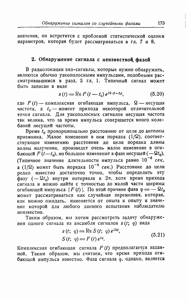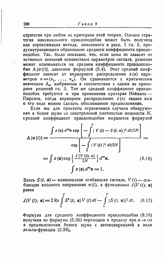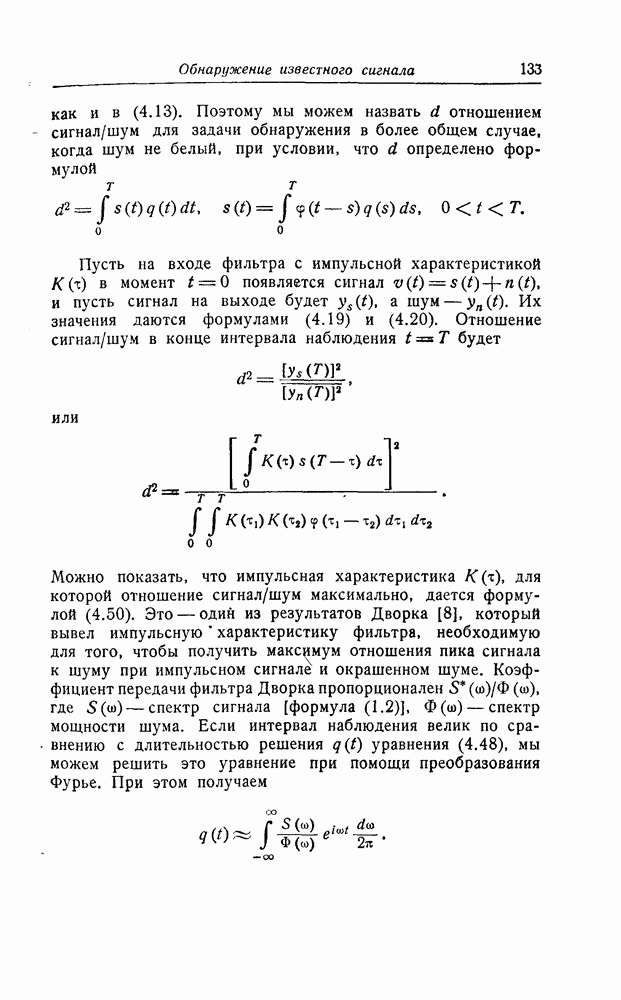 результат представляет наилучшее, что наблюдатель может сделать, по крайней мере при больших отношениях сигнал/шум. Для меньших отношений сигнал/шум можно ожидать, что дисперсии ошибок будут больше, чем даваемые соотношениями (8.56) из-за возможности неправильного решения вопроса, который именно пик функции