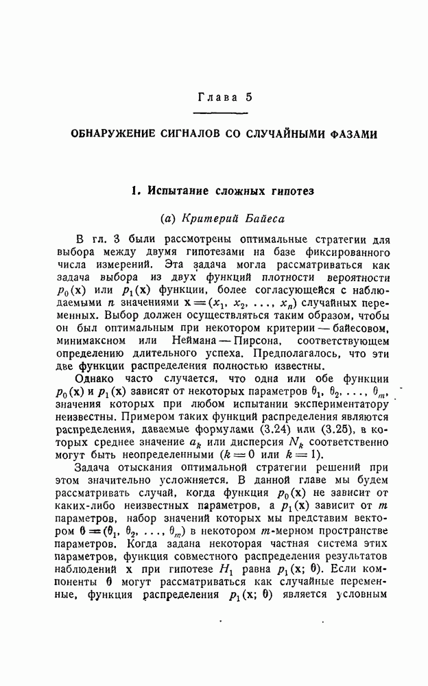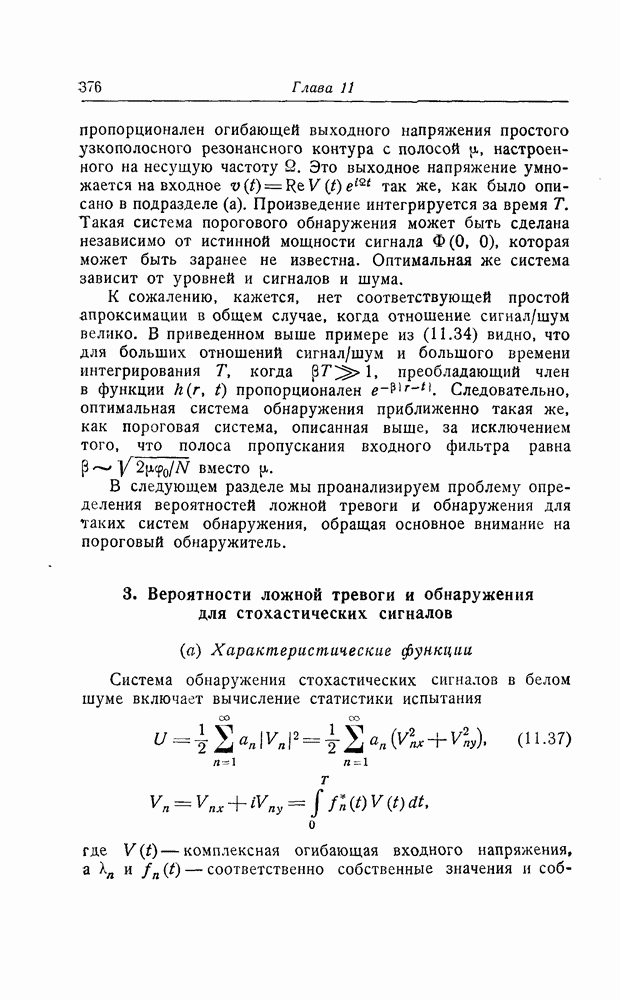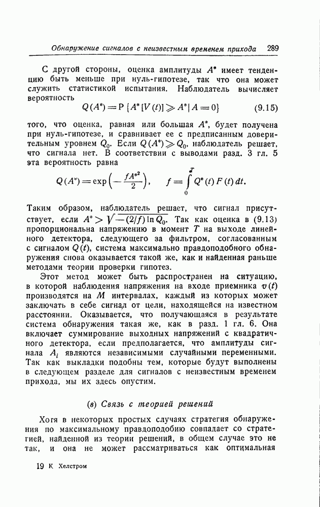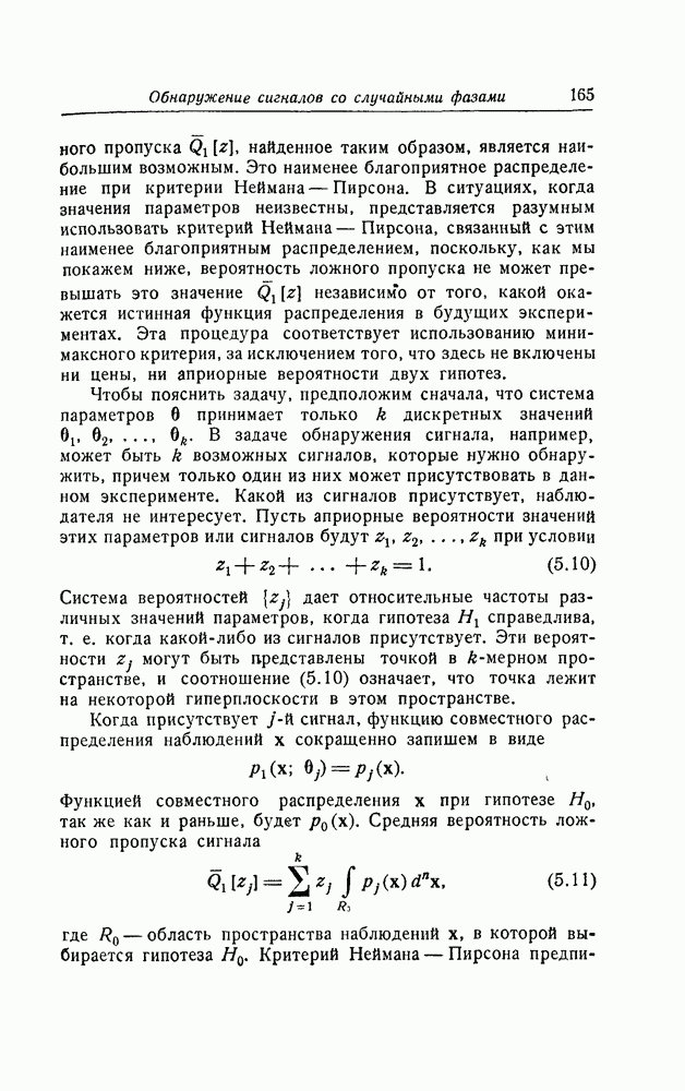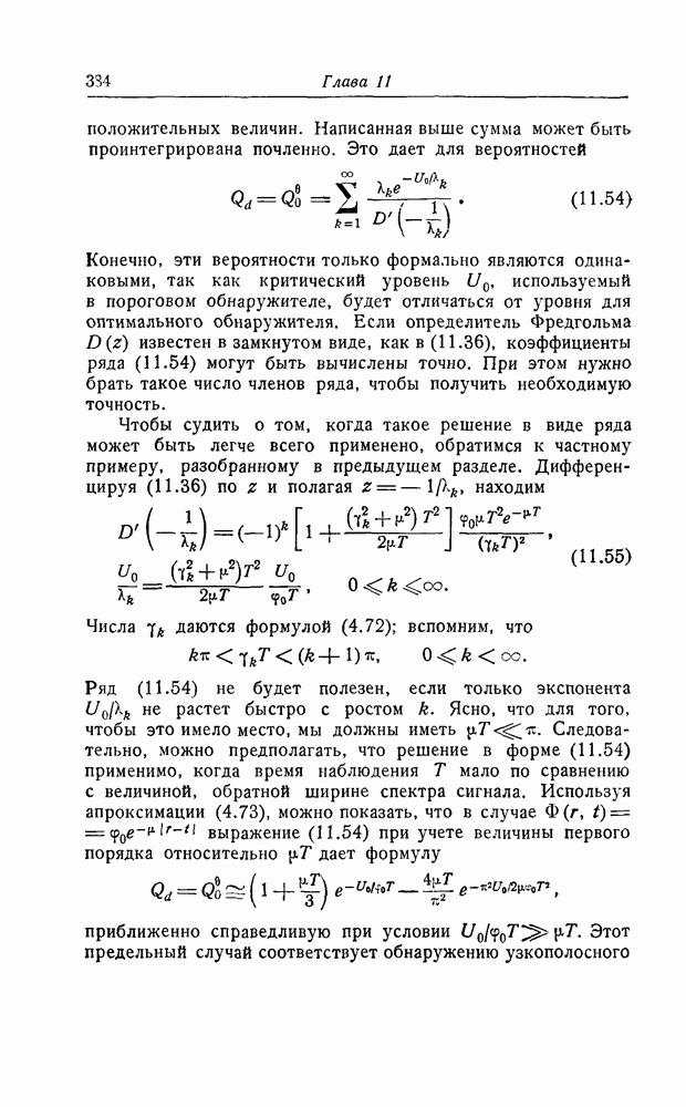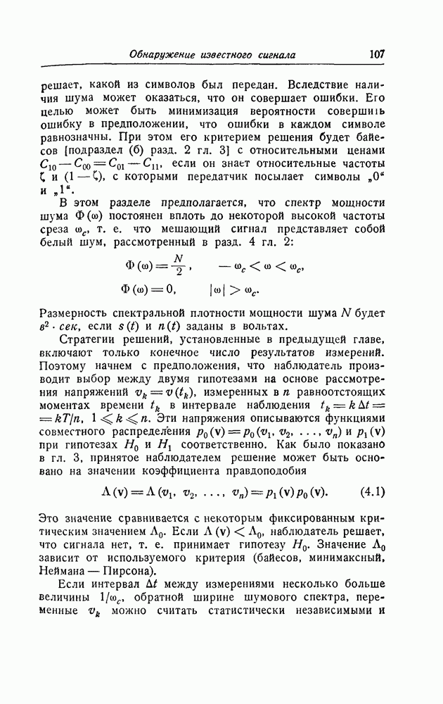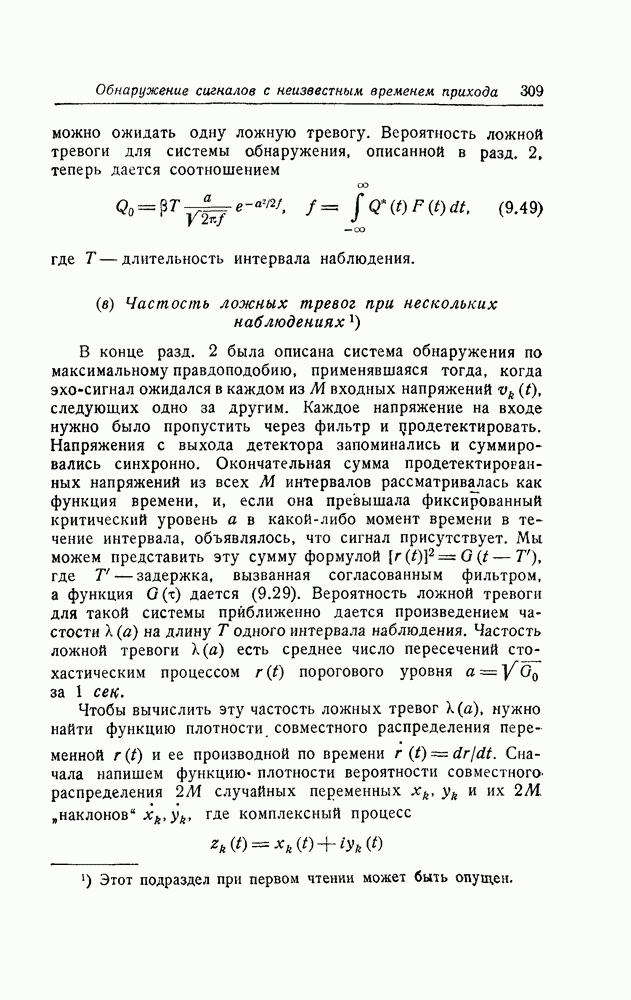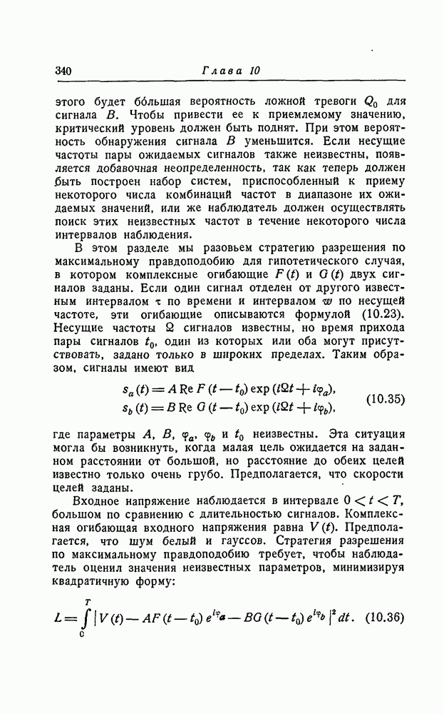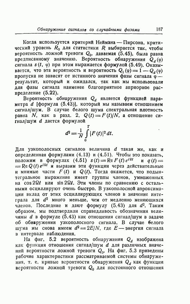 результат представляет наилучшее, что наблюдатель может сделать, по крайней мере при больших отношениях сигнал/шум. Для меньших отношений сигнал/шум можно ожидать, что дисперсии ошибок будут больше, чем даваемые соотношениями (8.56) из-за возможности неправильного решения вопроса, который именно пик функции