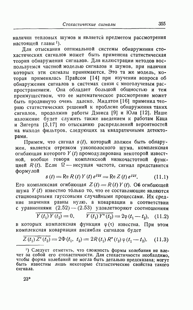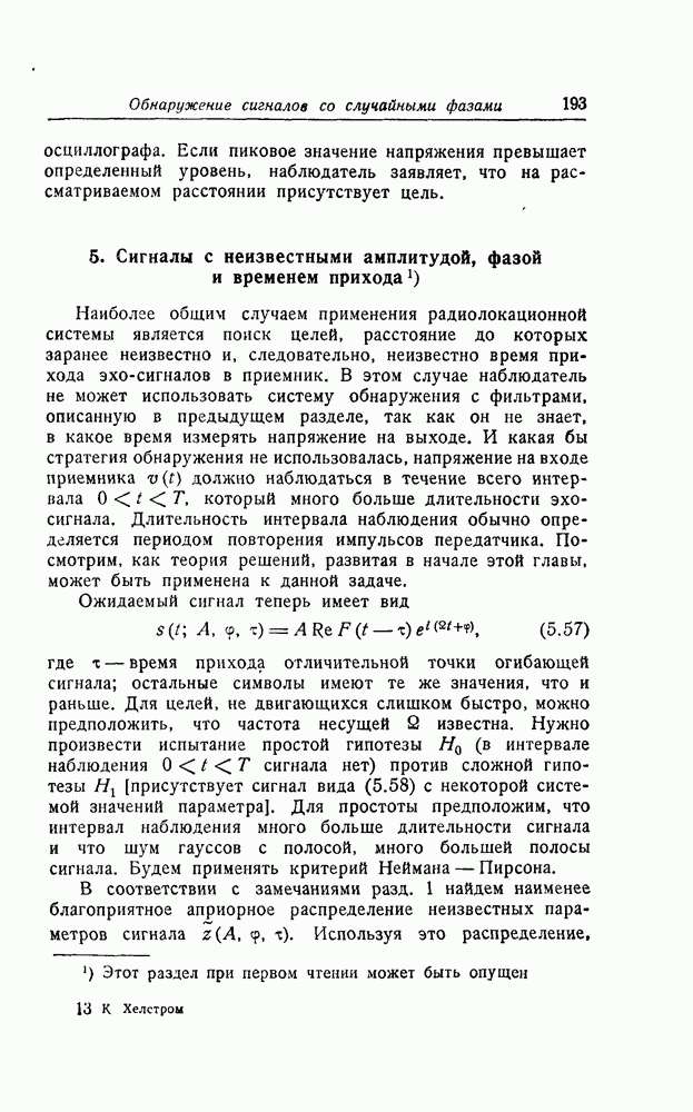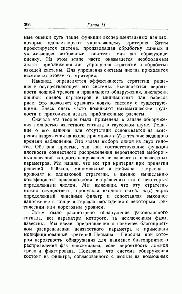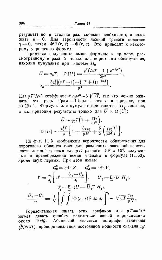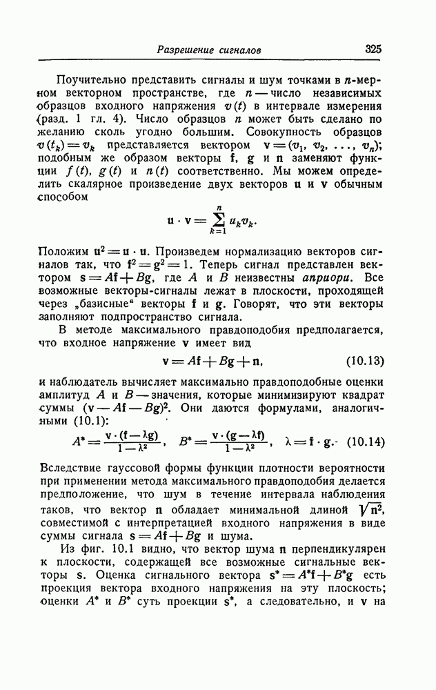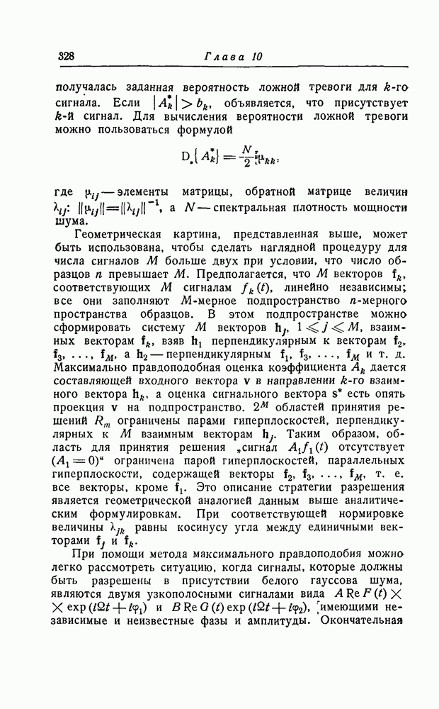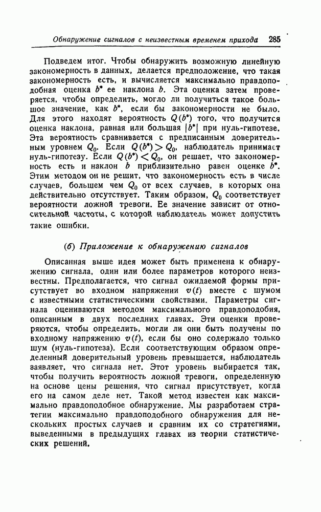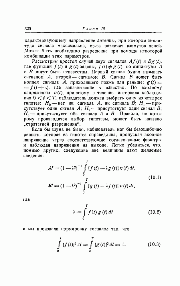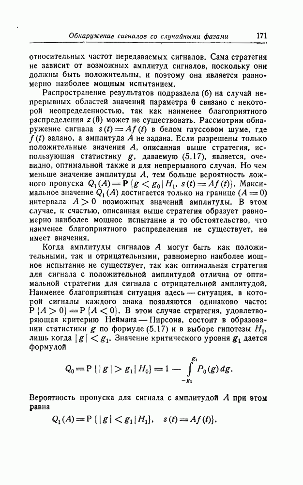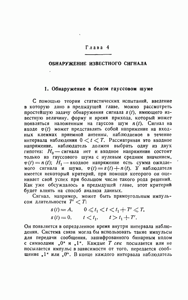 результат представляет наилучшее, что наблюдатель может сделать, по крайней мере при больших отношениях сигнал/шум. Для меньших отношений сигнал/шум можно ожидать, что дисперсии ошибок будут больше, чем даваемые соотношениями (8.56) из-за возможности неправильного решения вопроса, который именно пик функции