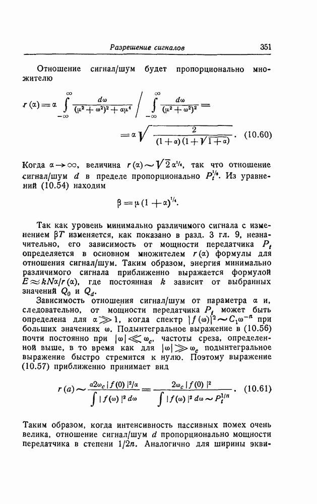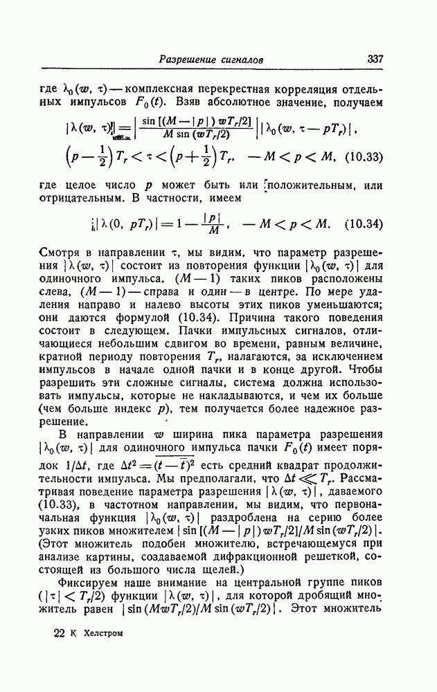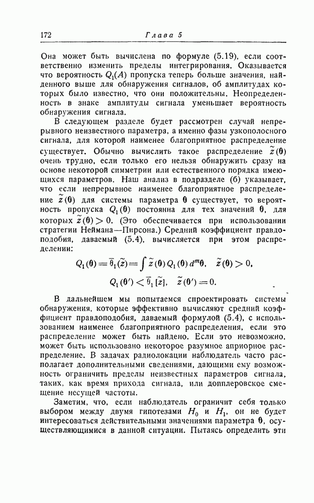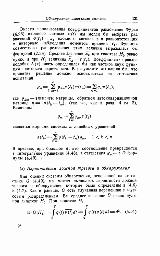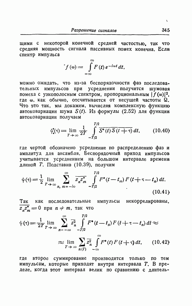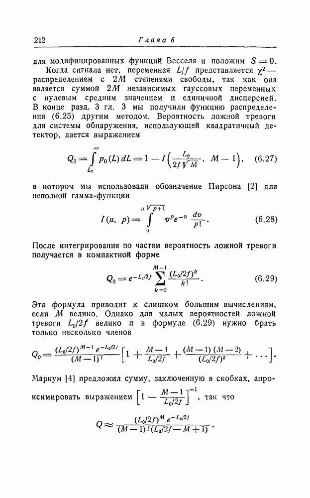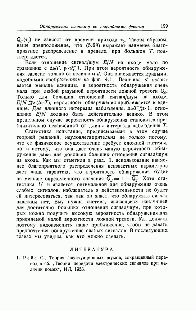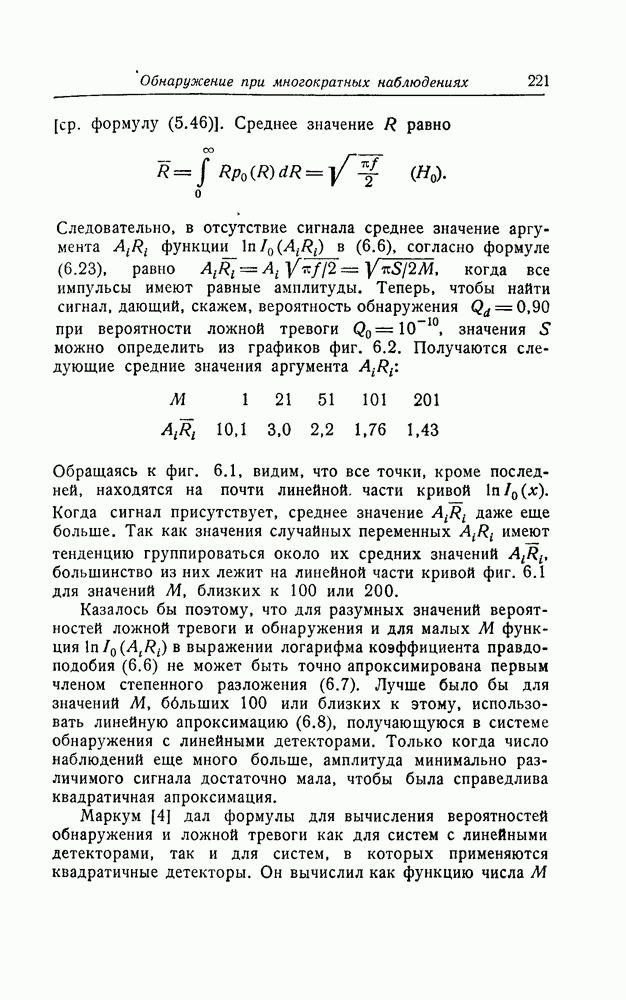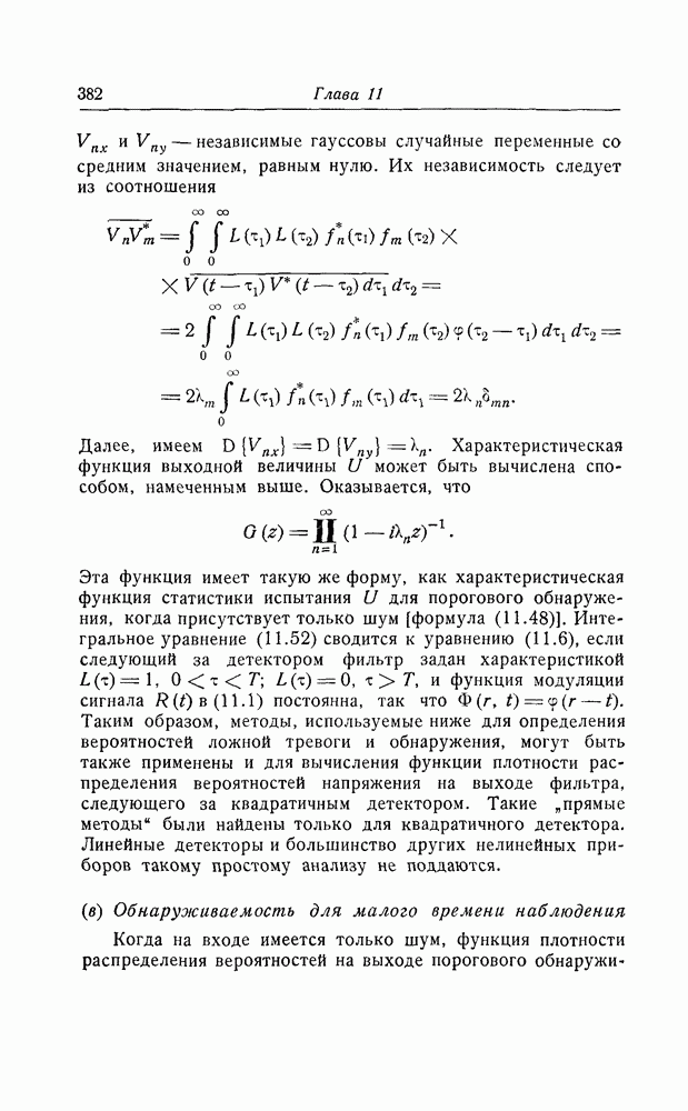 результат представляет наилучшее, что наблюдатель может сделать, по крайней мере при больших отношениях сигнал/шум. Для меньших отношений сигнал/шум можно ожидать, что дисперсии ошибок будут больше, чем даваемые соотношениями (8.56) из-за возможности неправильного решения вопроса, который именно пик функции