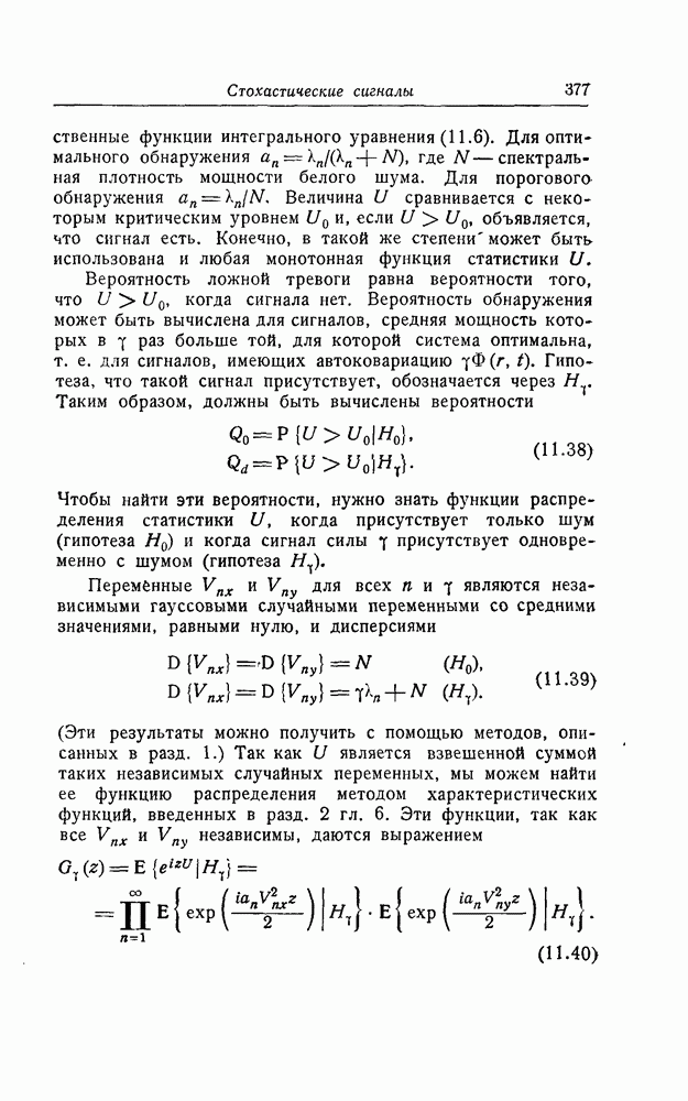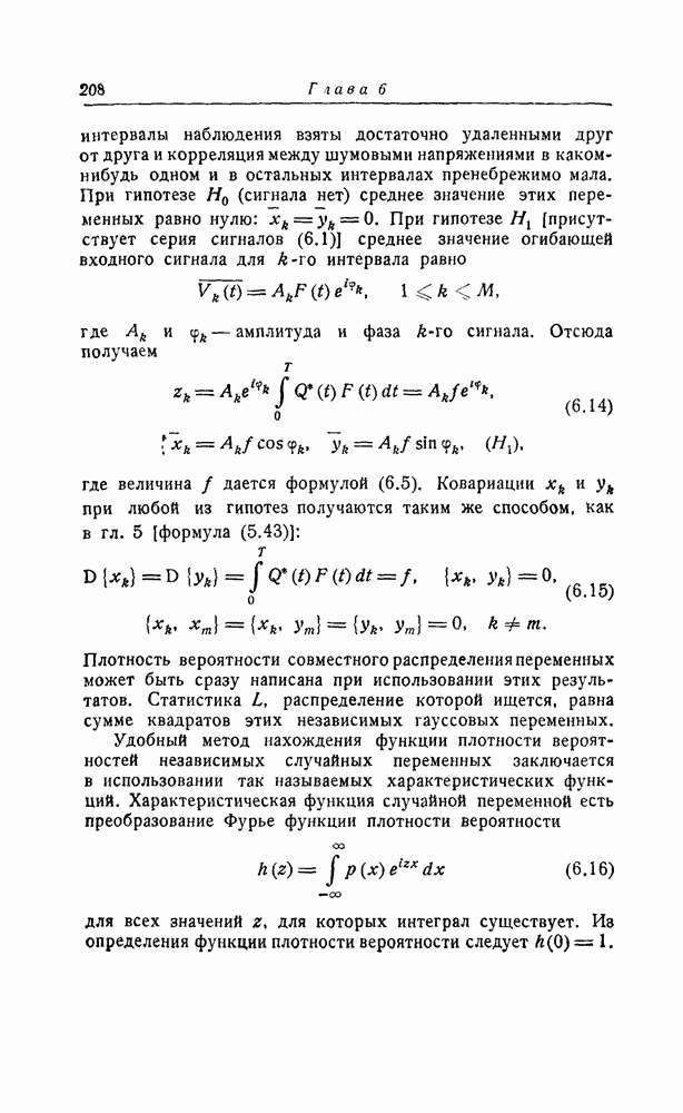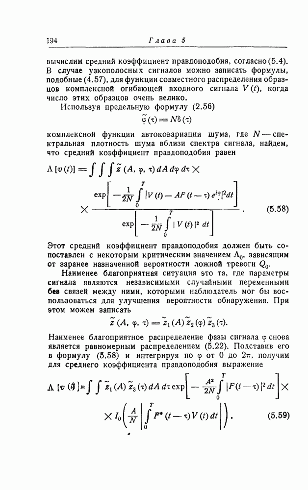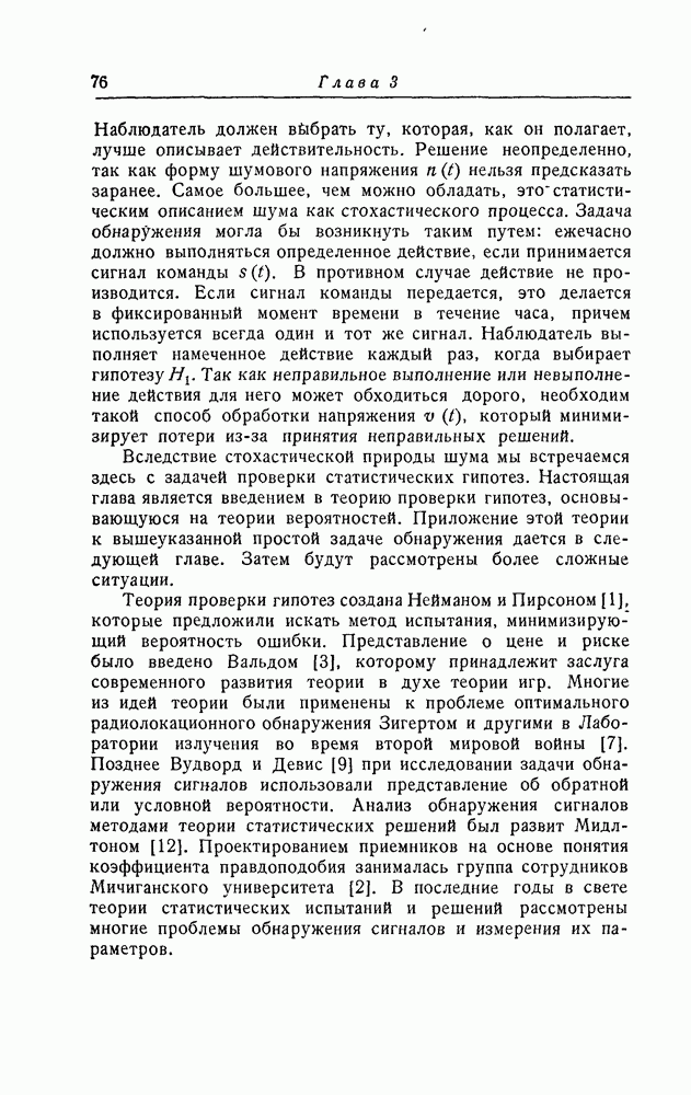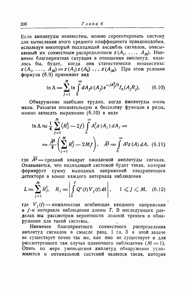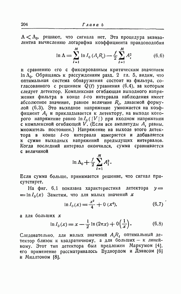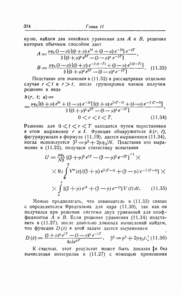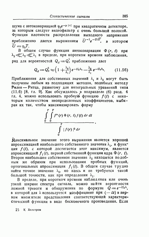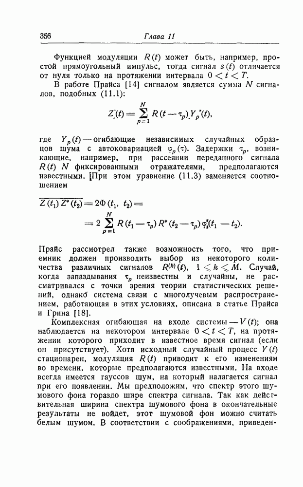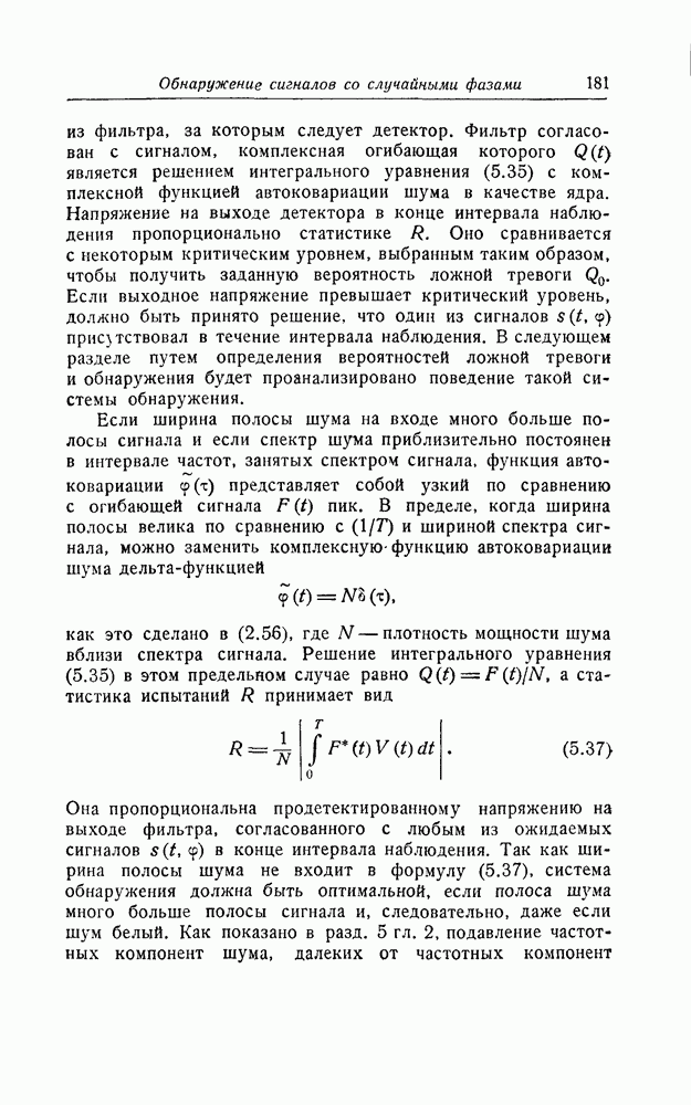 результат представляет наилучшее, что наблюдатель может сделать, по крайней мере при больших отношениях сигнал/шум. Для меньших отношений сигнал/шум можно ожидать, что дисперсии ошибок будут больше, чем даваемые соотношениями (8.56) из-за возможности неправильного решения вопроса, который именно пик функции