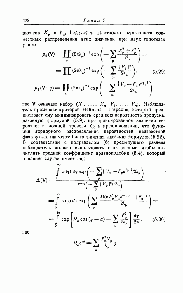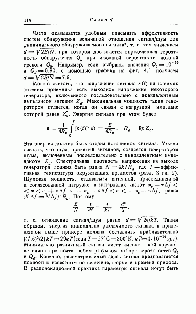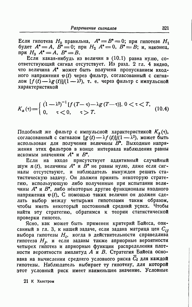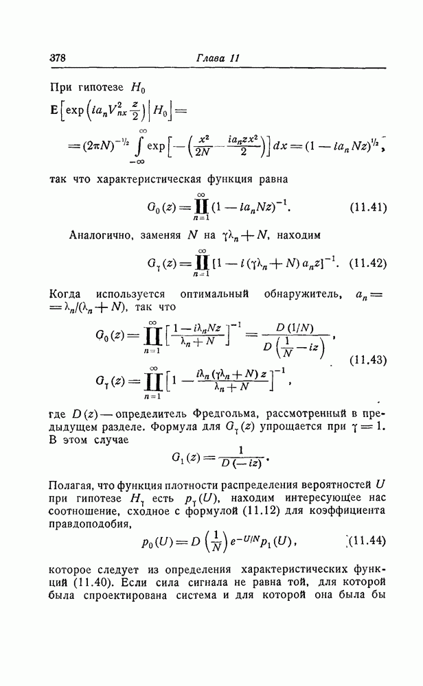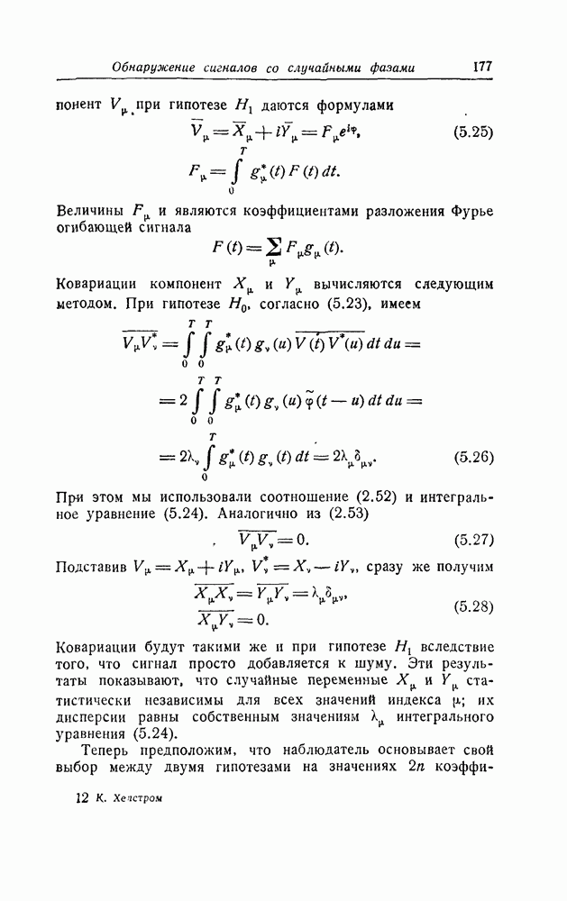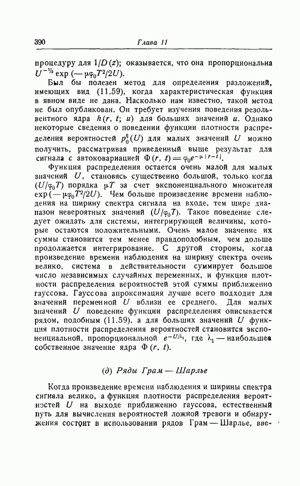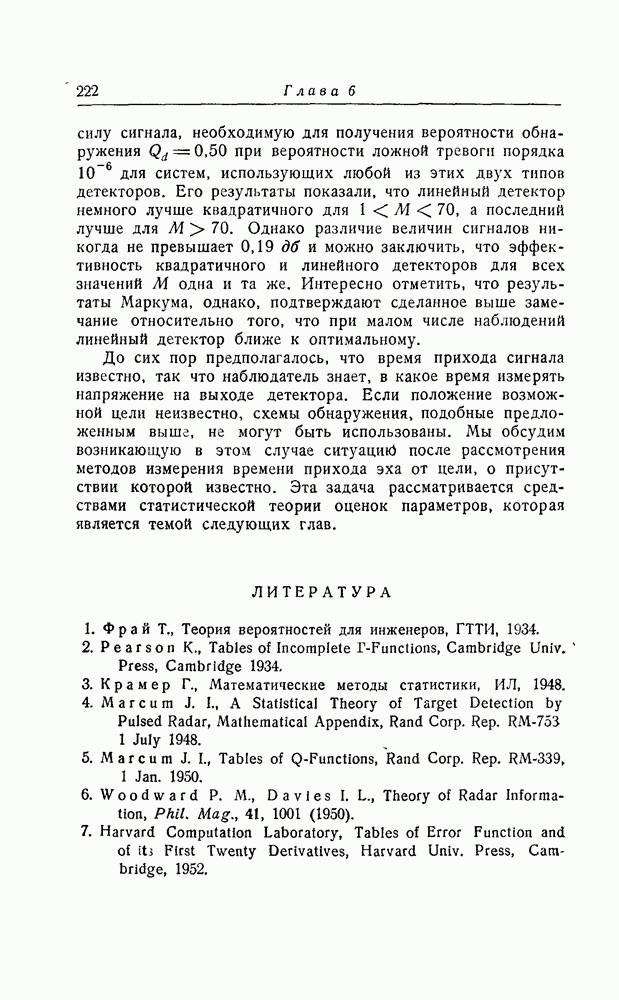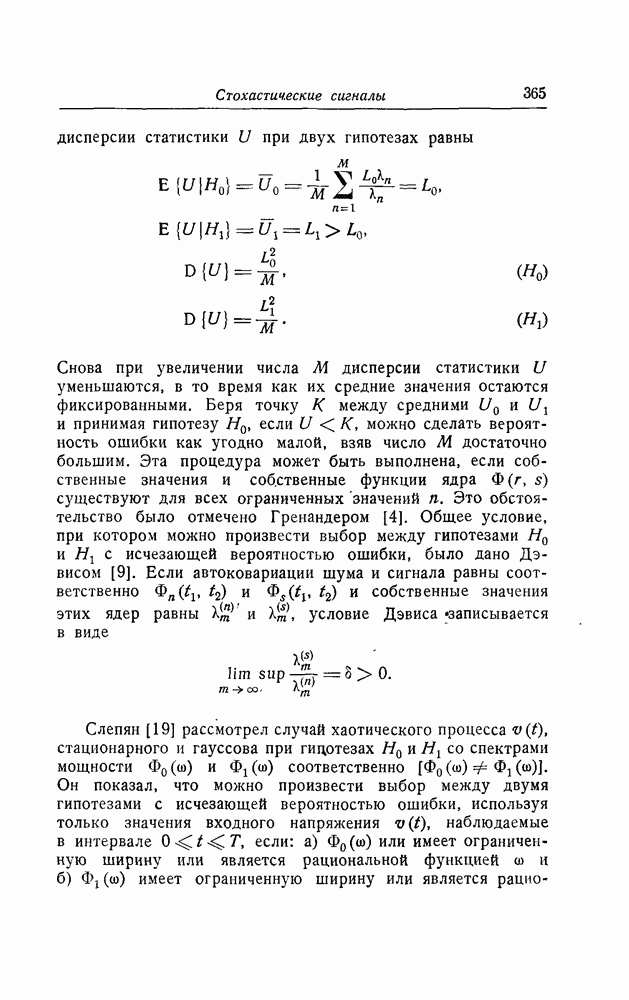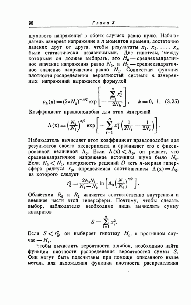 результат представляет наилучшее, что наблюдатель может сделать, по крайней мере при больших отношениях сигнал/шум. Для меньших отношений сигнал/шум можно ожидать, что дисперсии ошибок будут больше, чем даваемые соотношениями (8.56) из-за возможности неправильного решения вопроса, который именно пик функции