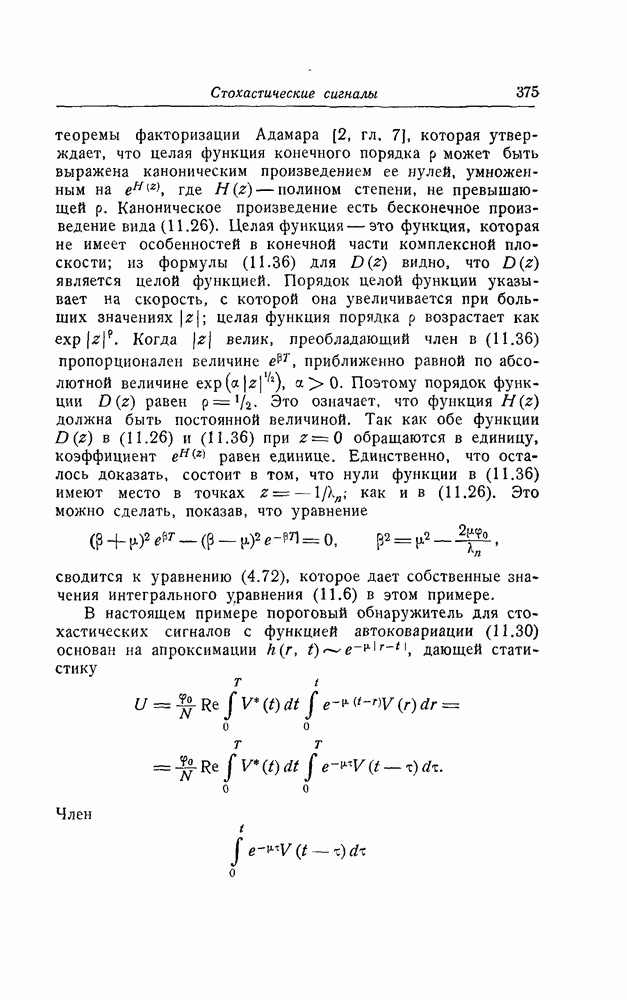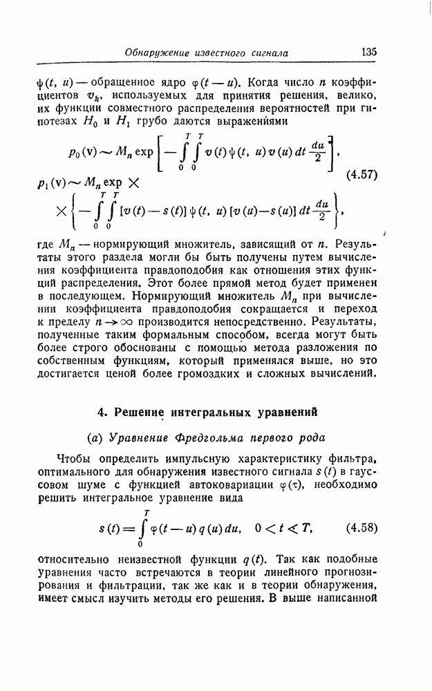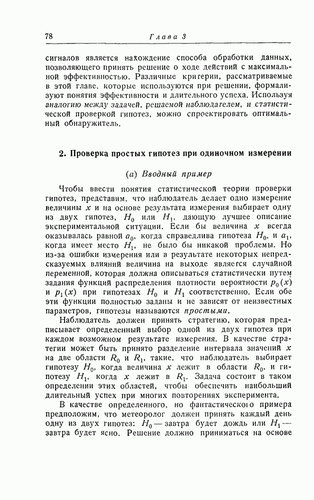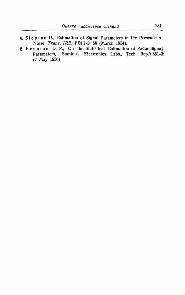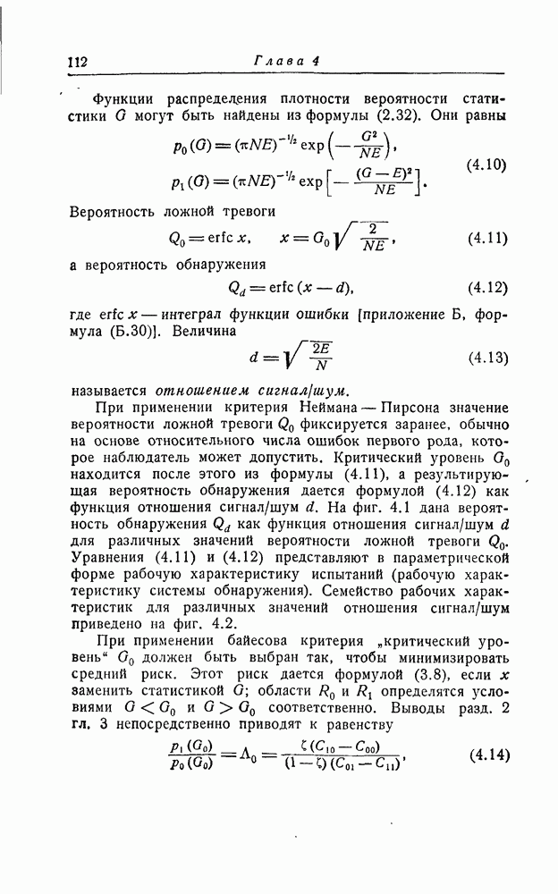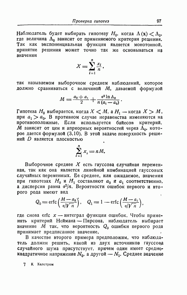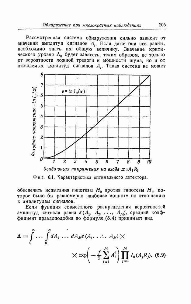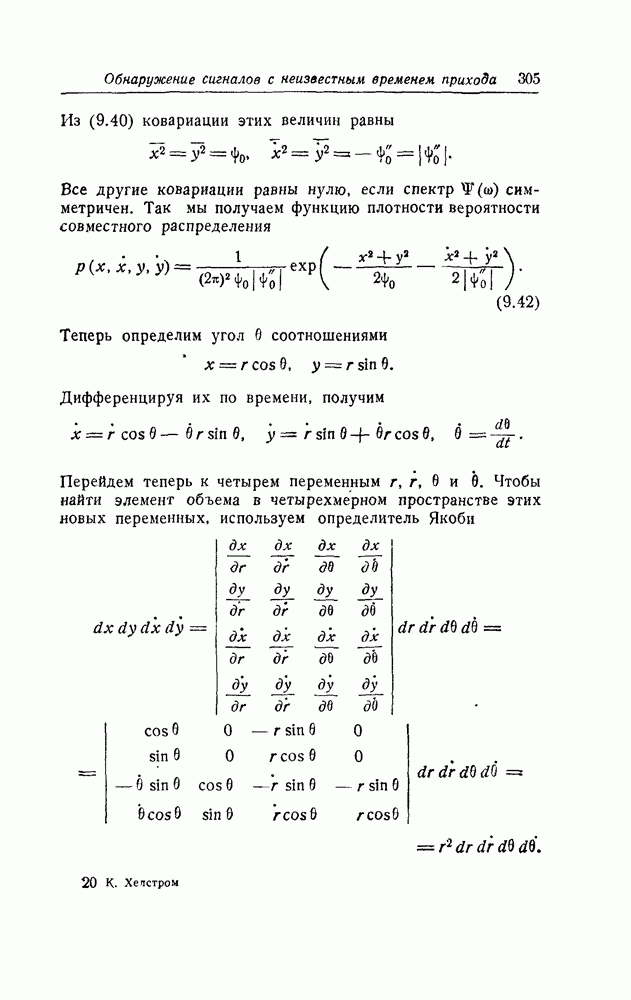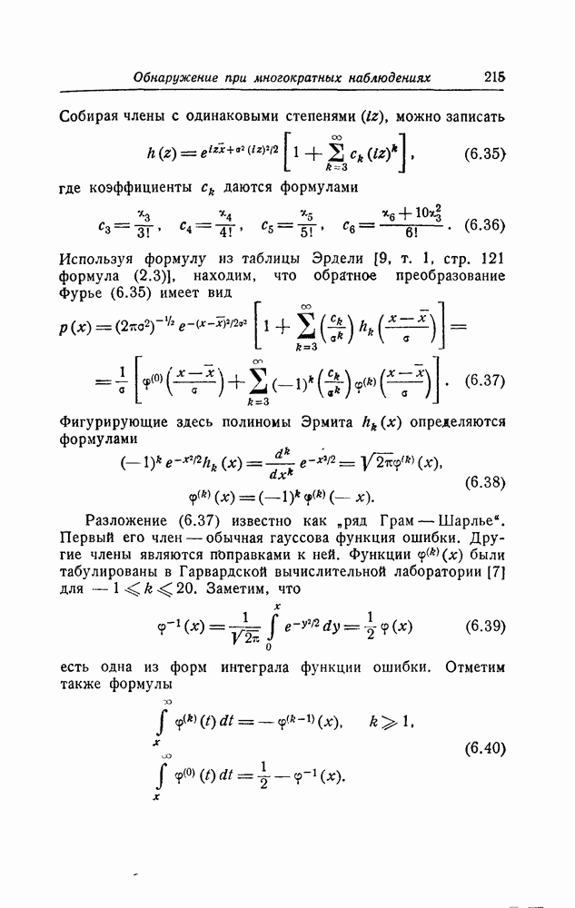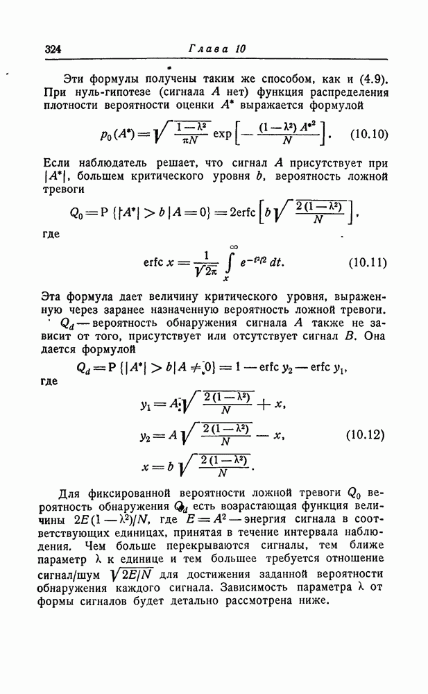 результат представляет наилучшее, что наблюдатель может сделать, по крайней мере при больших отношениях сигнал/шум. Для меньших отношений сигнал/шум можно ожидать, что дисперсии ошибок будут больше, чем даваемые соотношениями (8.56) из-за возможности неправильного решения вопроса, который именно пик функции