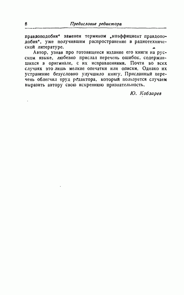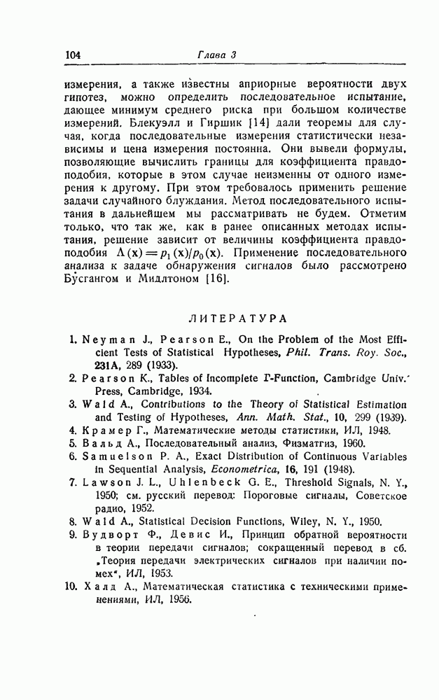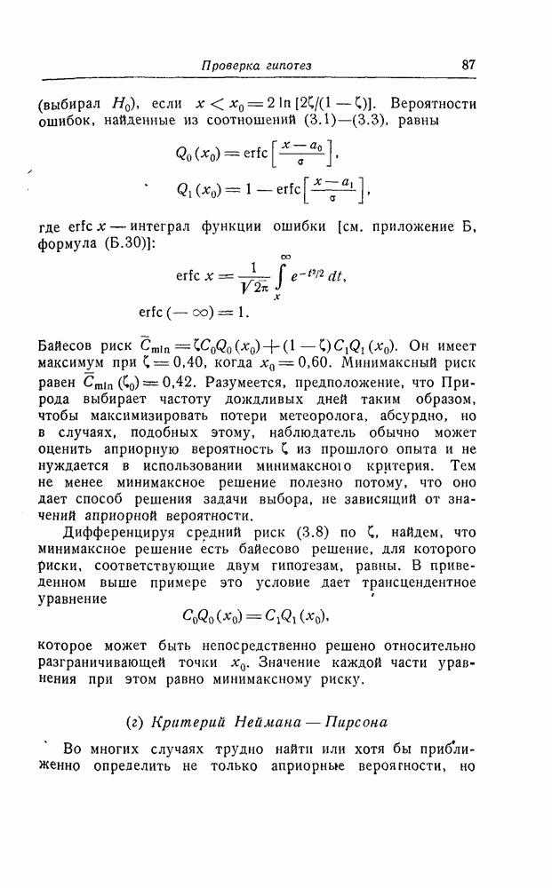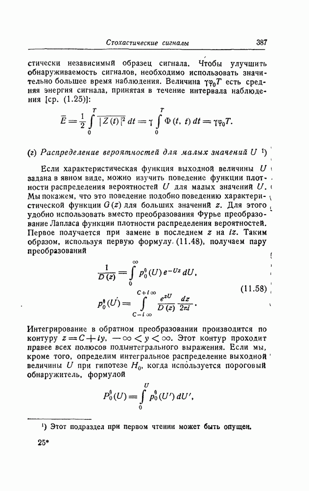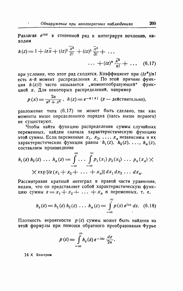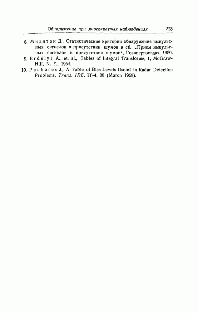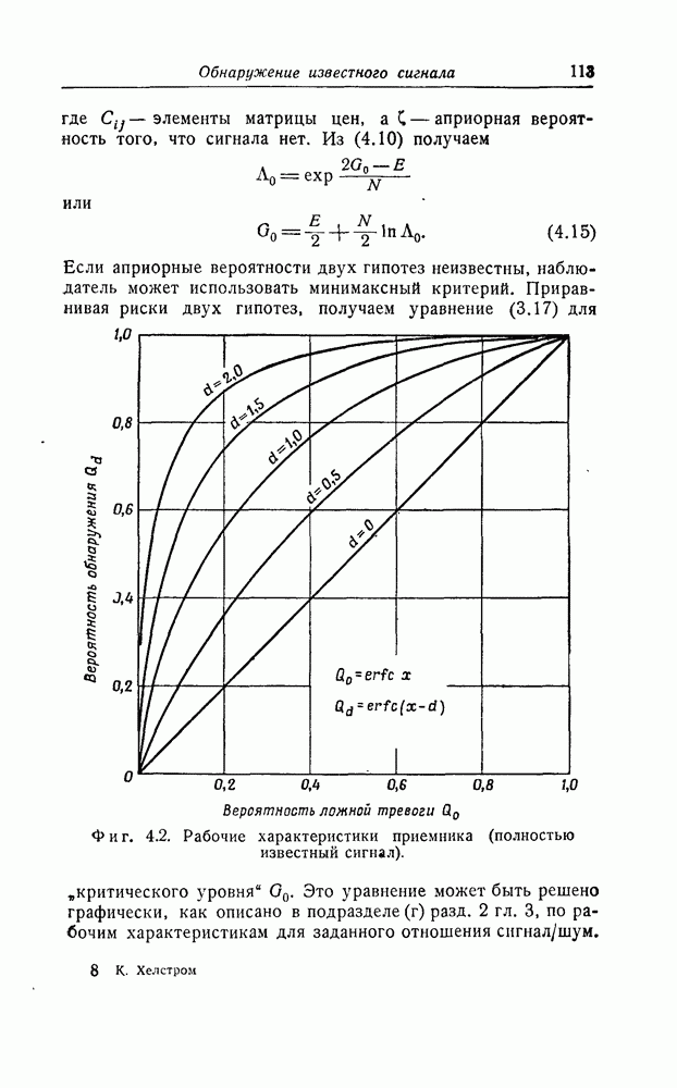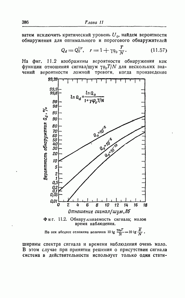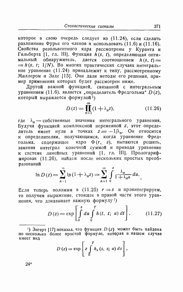 результат представляет наилучшее, что наблюдатель может сделать, по крайней мере при больших отношениях сигнал/шум. Для меньших отношений сигнал/шум можно ожидать, что дисперсии ошибок будут больше, чем даваемые соотношениями (8.56) из-за возможности неправильного решения вопроса, который именно пик функции