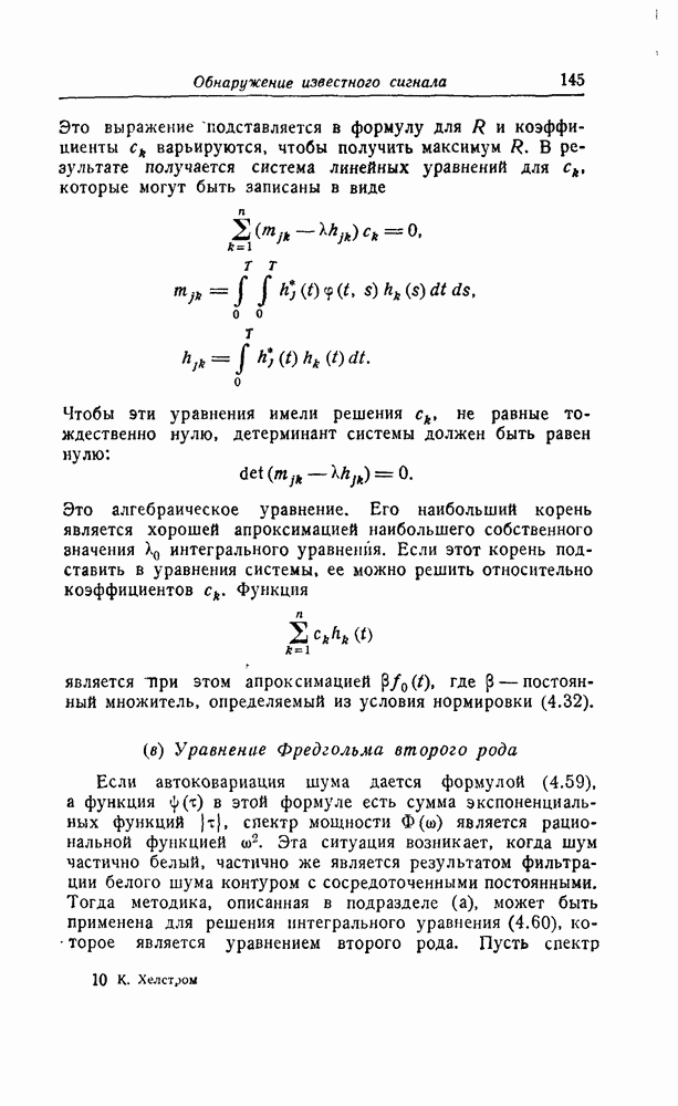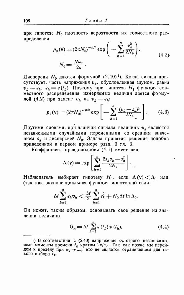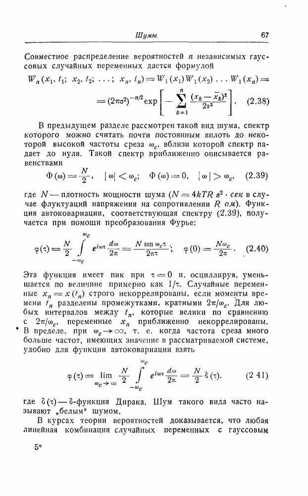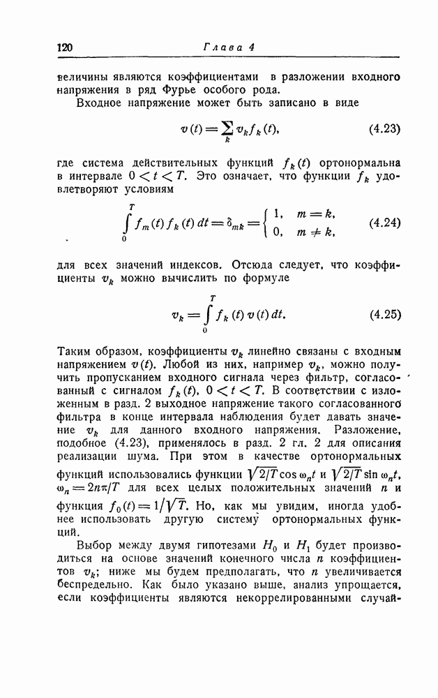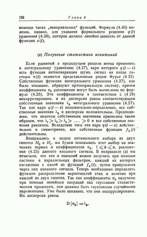 В дальнейшем мы для простоты будем предполагать, что шум белый. Другие предположения не дали бы почти ничего, кроме усложнения. При этом функция