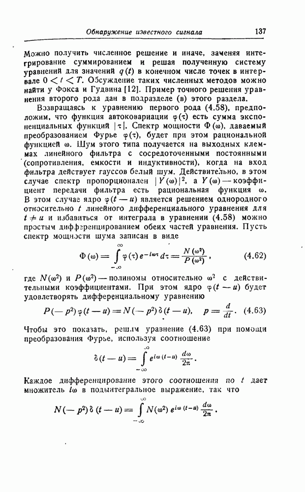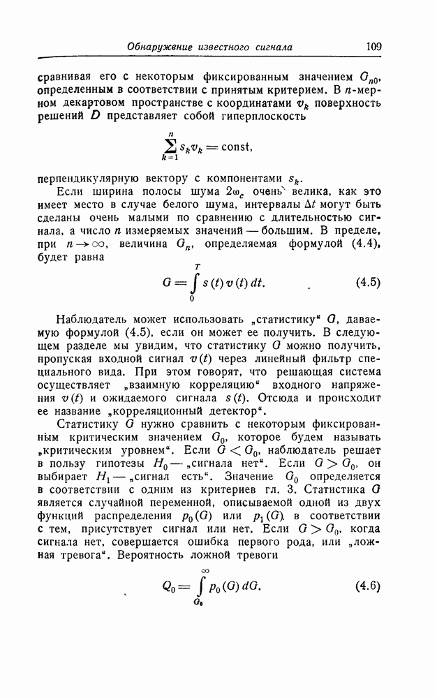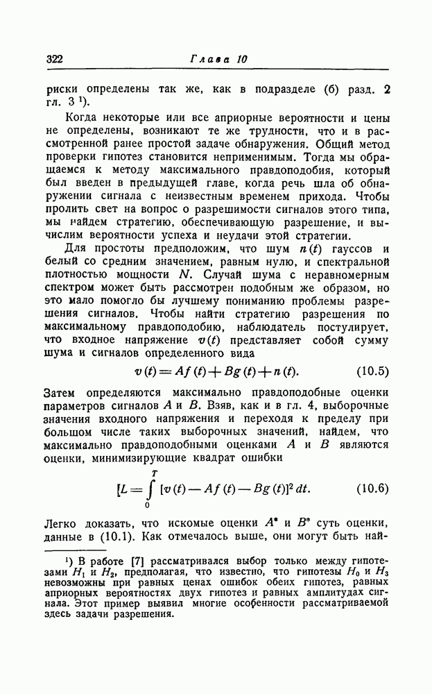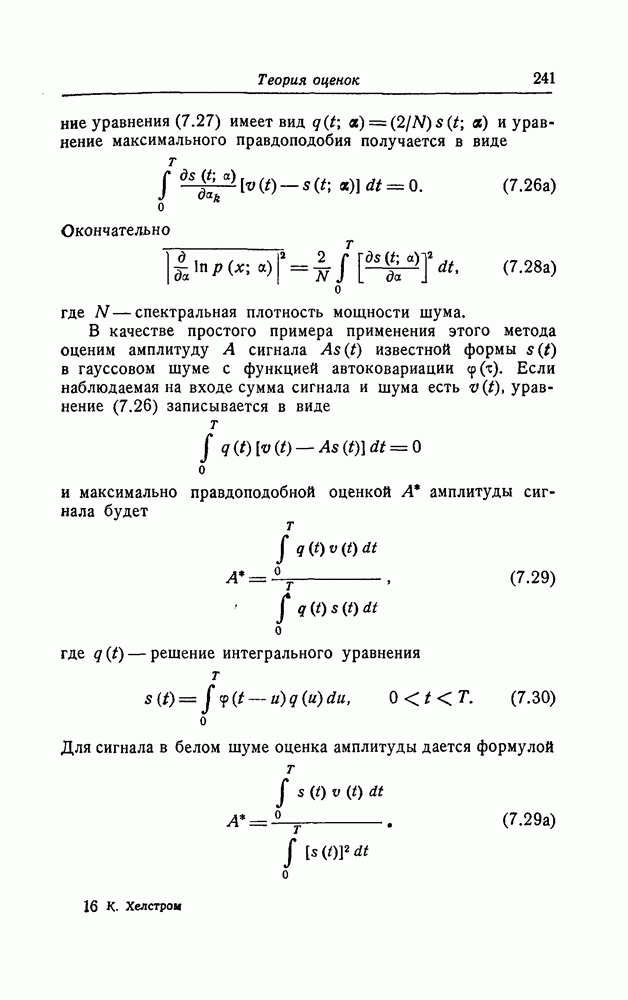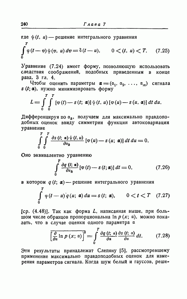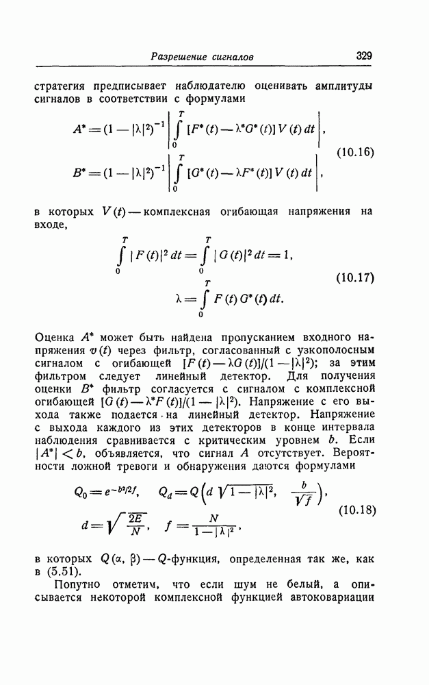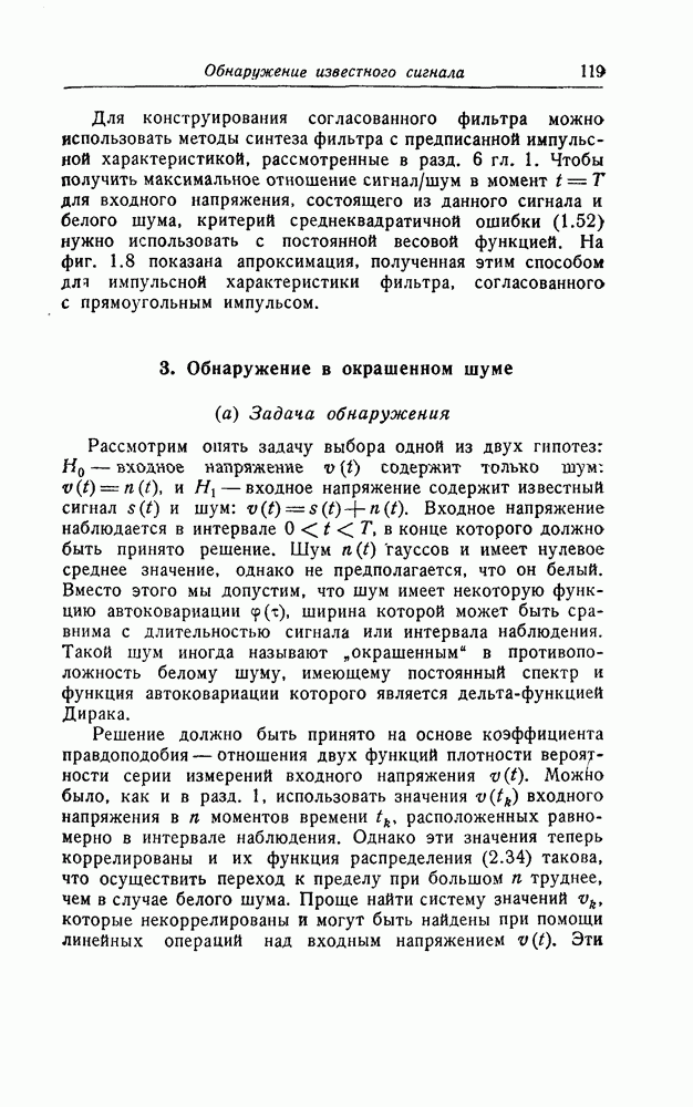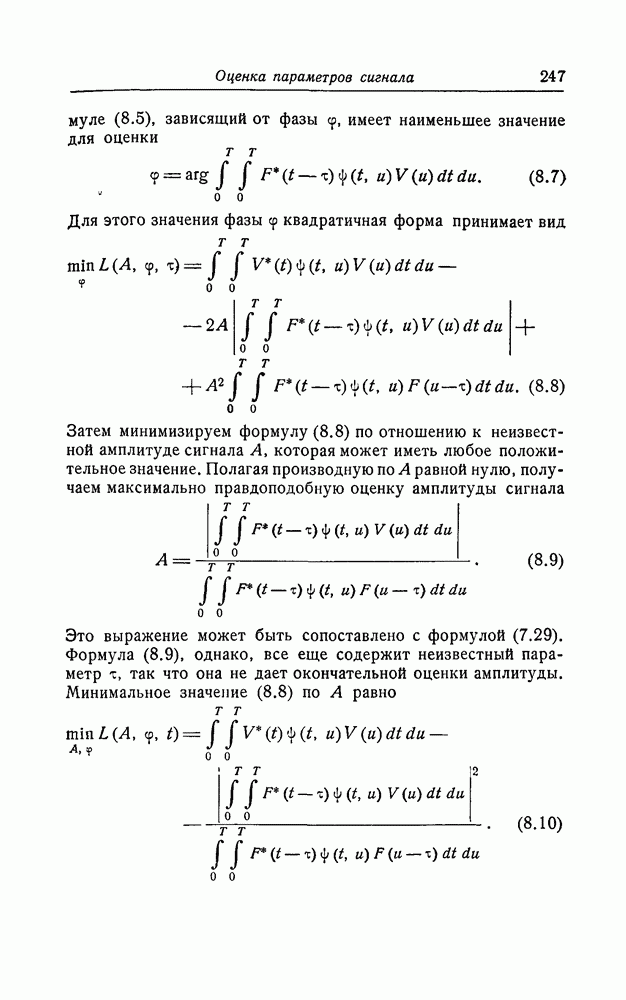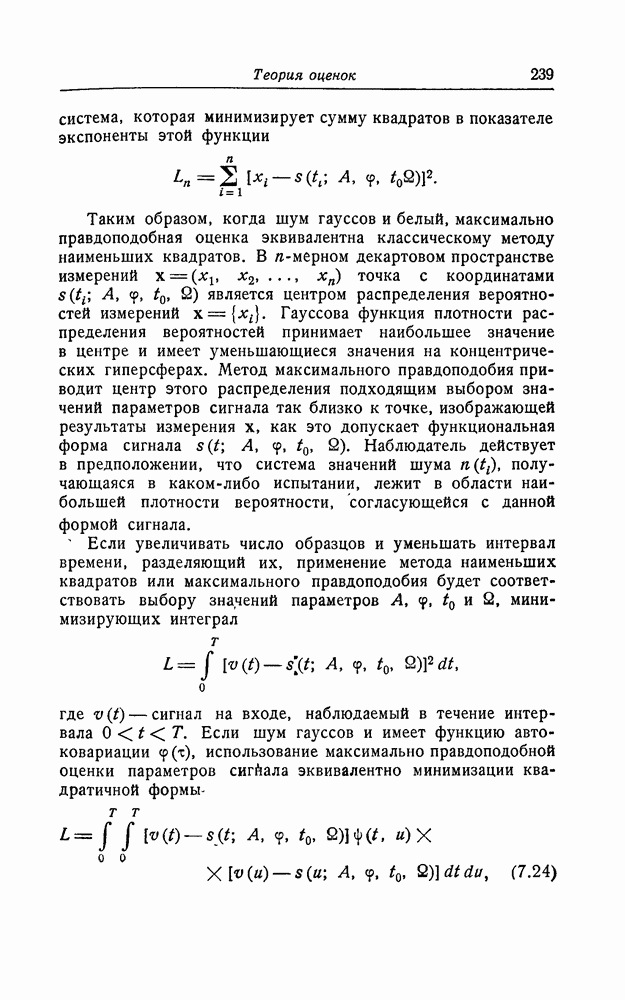 много больше длительности сигнала, так что фактически это белый шум. Рассуждения такого же типа, что и в разд. 1, показывают, что для того, чтобы найти максимально правдоподобную оценку, нужно минимизировать квадратичную форму