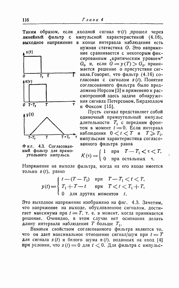 и времени х, строится большое число параллельных фильтров. Каждый фильтр согласован с сигналом