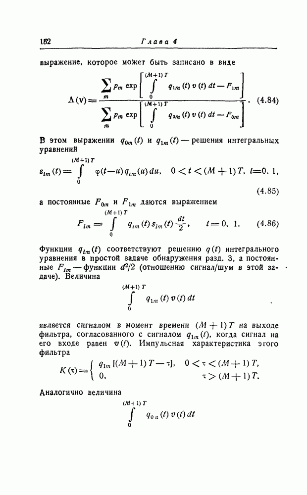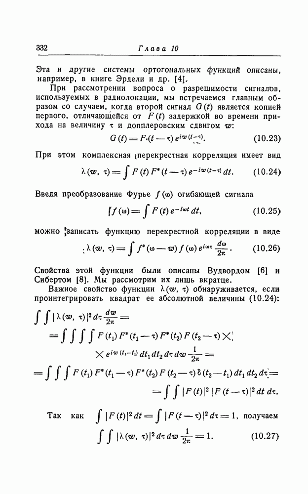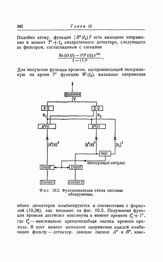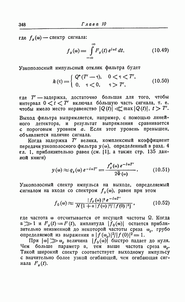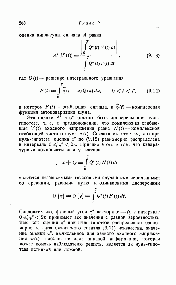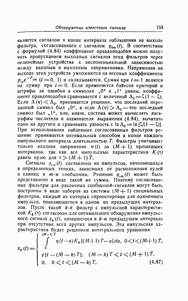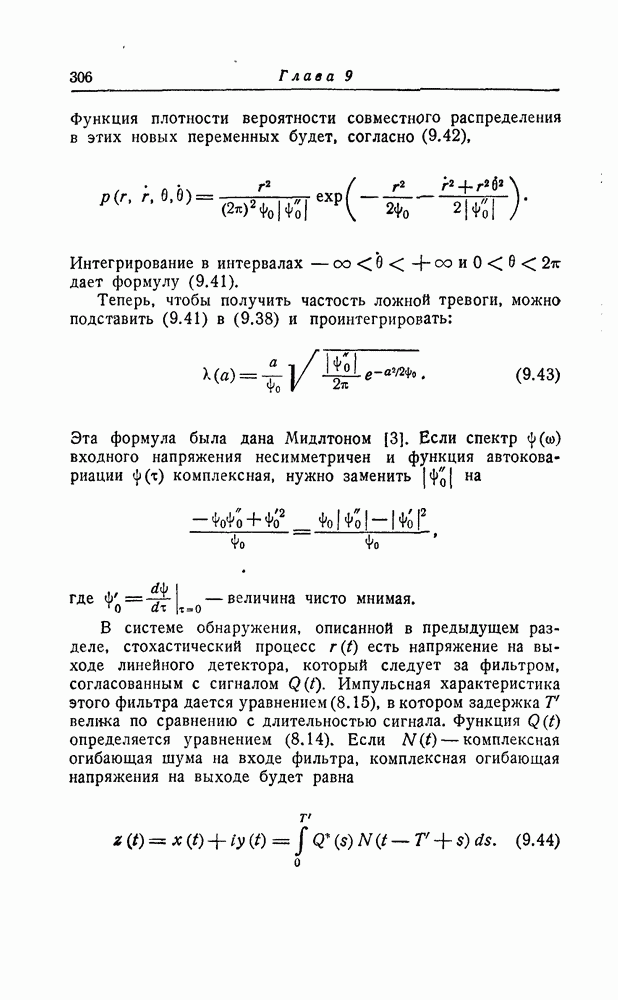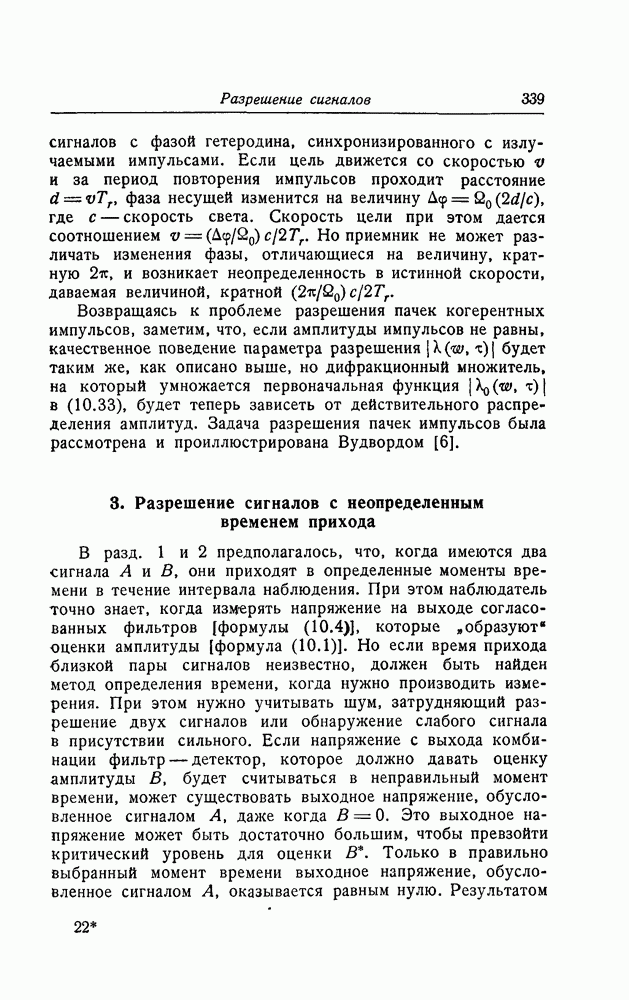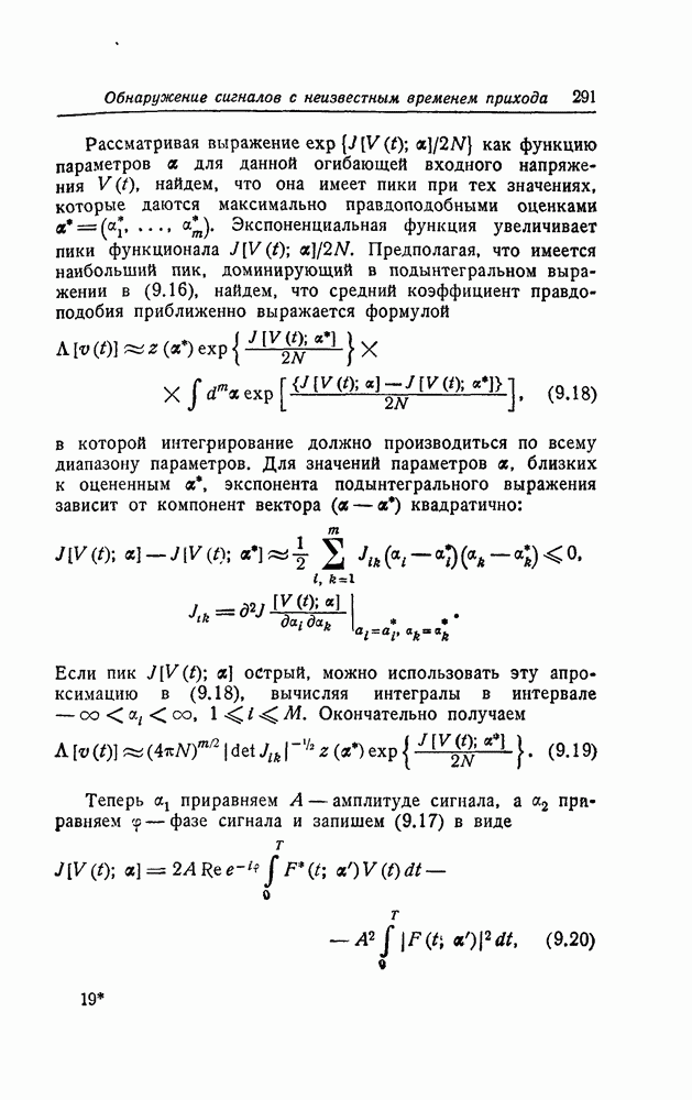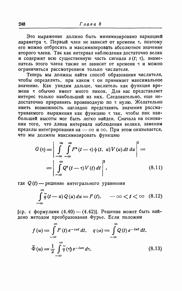 соответствующему фильтру, взвешенное напряжение с выхода детектора которого имеет наибольшее пиковое значение. Момент времени, когда этот пик возникает, дает оценку времени прихода х, согласно (8.18). Оценка частотного сдвига