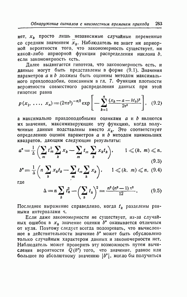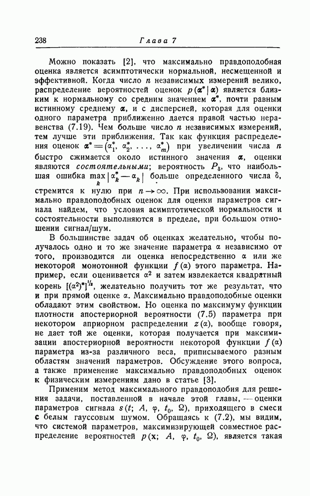 (8.55) представляет сигнал, так как теперь шум приводит к появлению большого числа пиков одного порядка величины. Конечно, так как максимально правдоподобная оценка только асимптотически эффективна, может существовать лучший способ оценки параметров