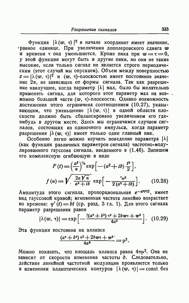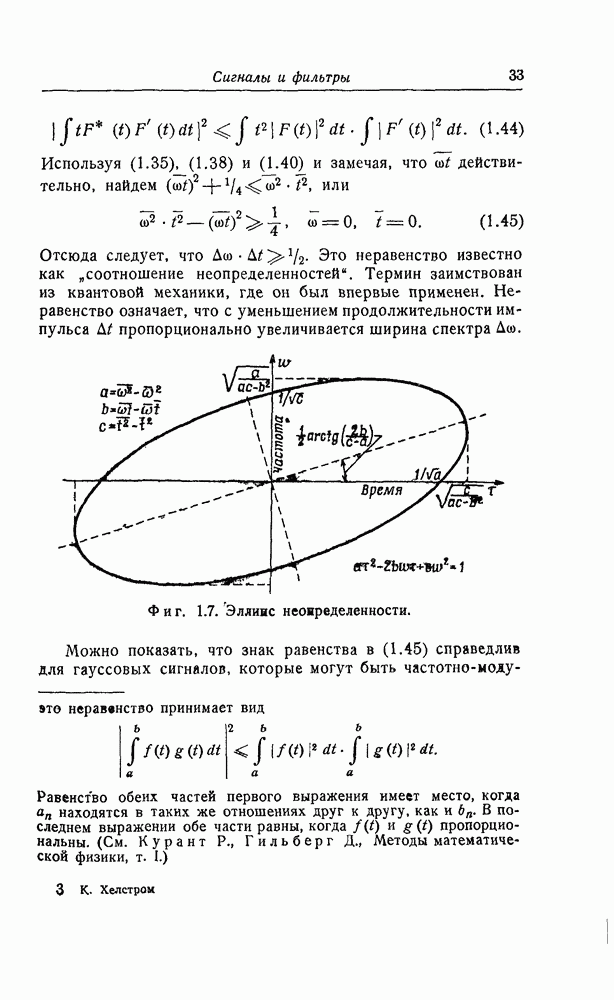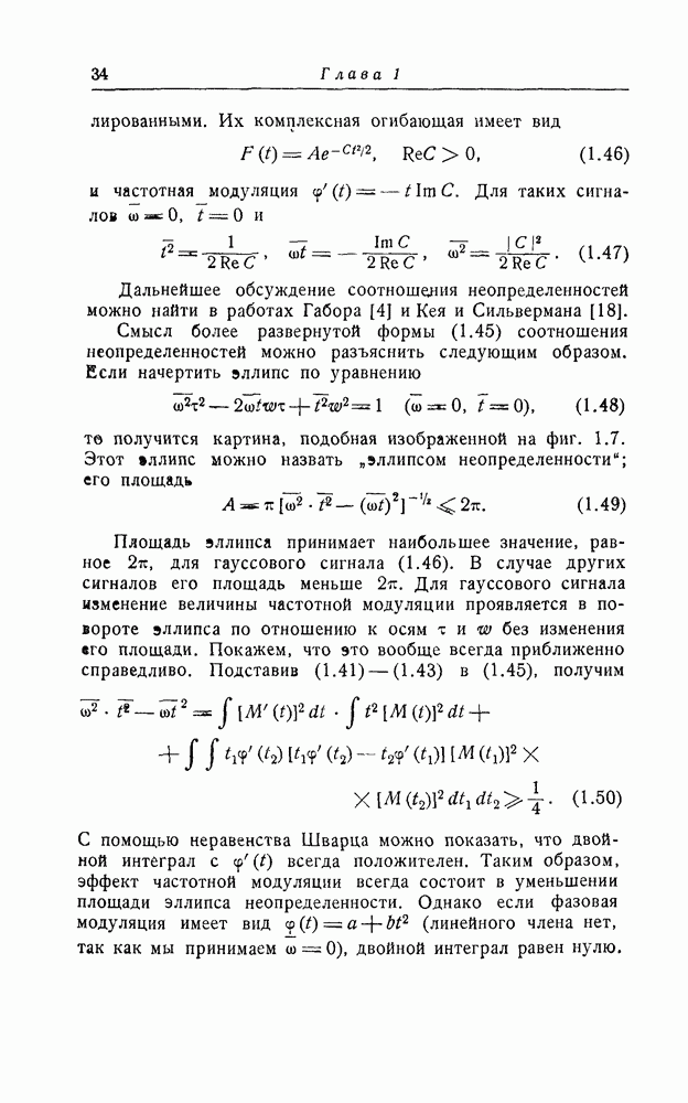 являются эллипсами, подобными определенному там "эллипсу неопределенности". Из фиг. 1.7 видно, что когда импульс модулирован по частоте