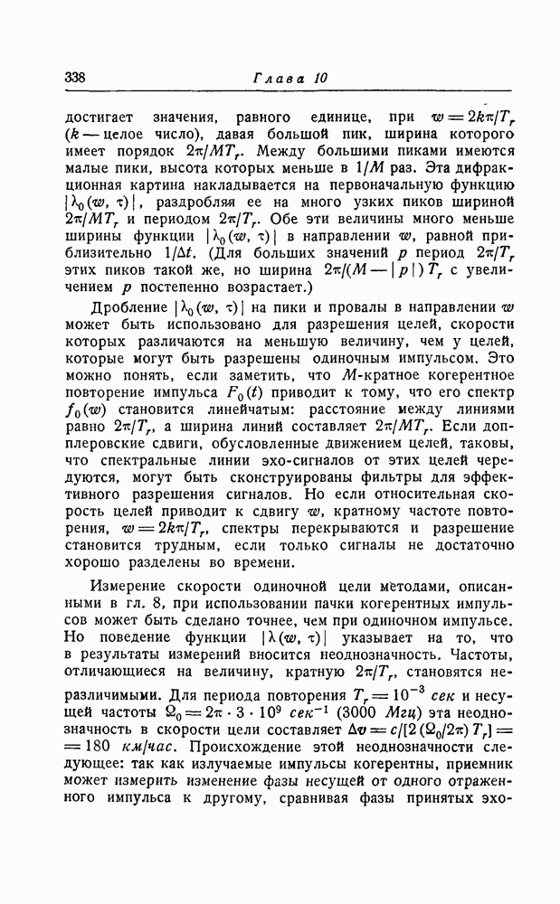 типичной для радиолокационного импульса. Для много больших скоростей, имеющихся у баллистических снарядов, допплеровский сдвиг даже больше ширины спектра импульса.