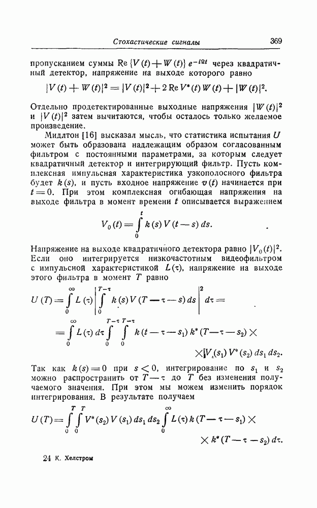 проходит через параллельную комбинацию фильтров и детекторов, выходные напряжения которых наблюдаются в виде функций времени, которые, как видно из соотношений (8.15) — (8.18), соответствуют переменной