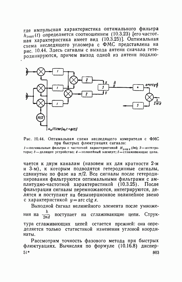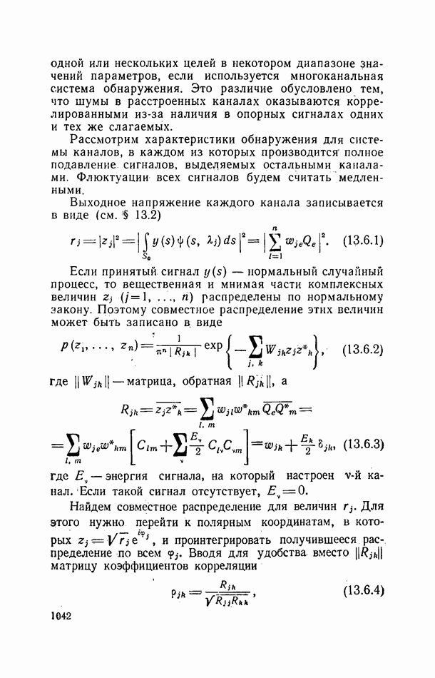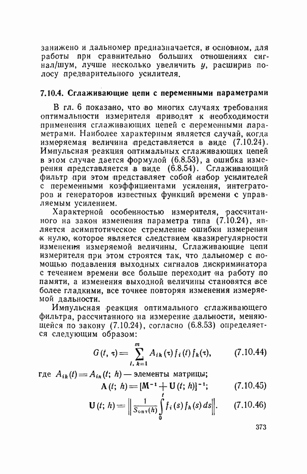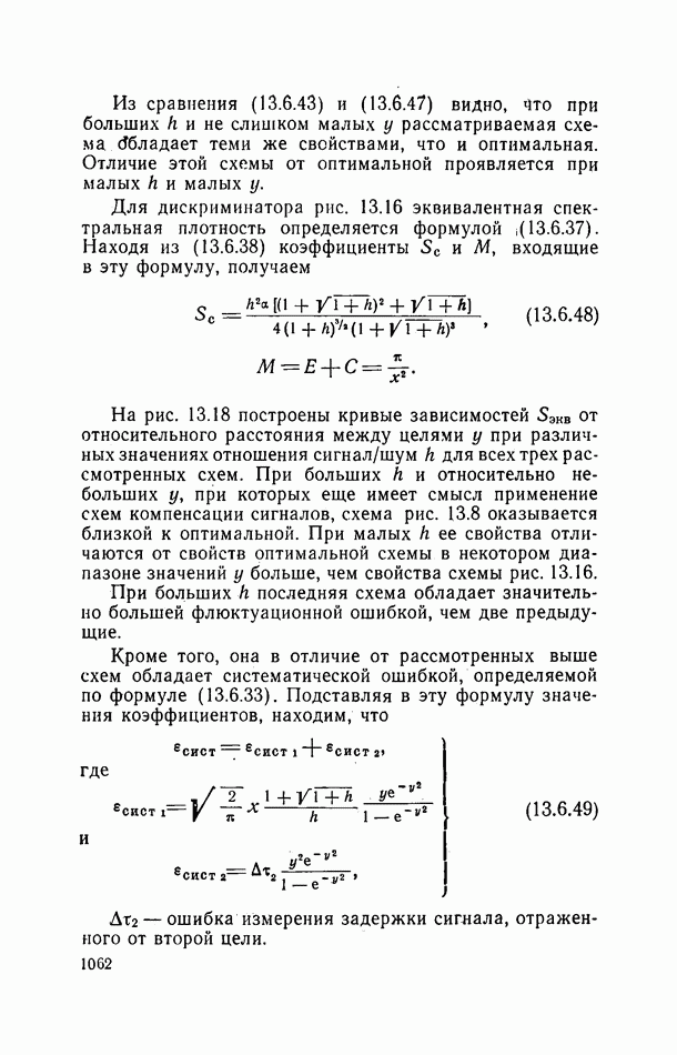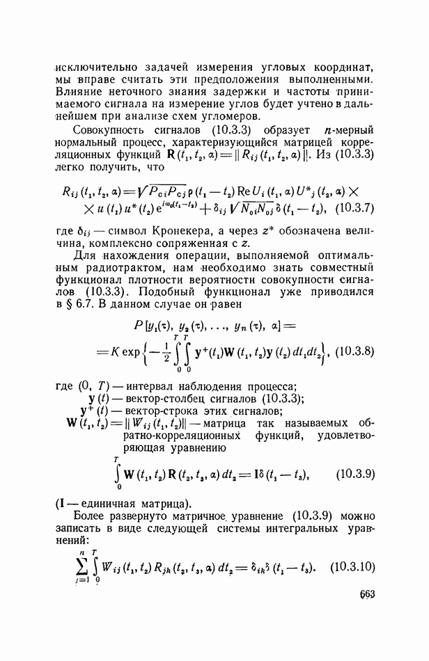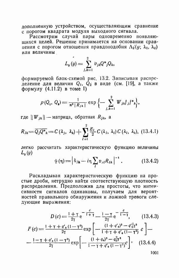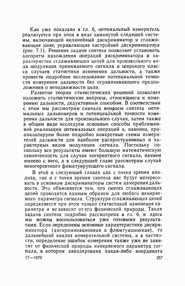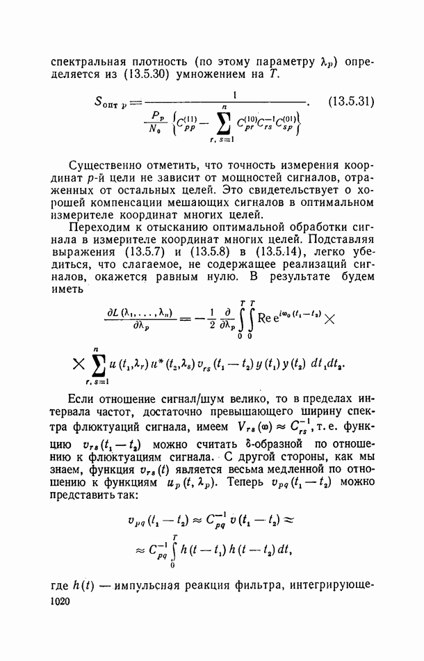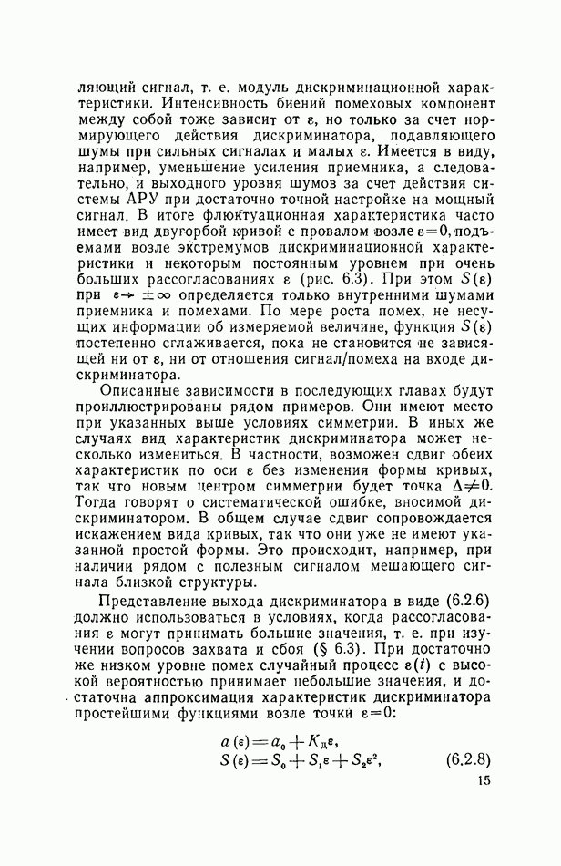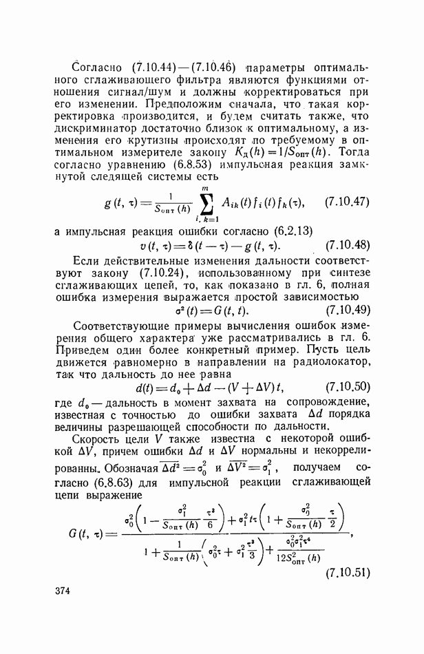 В случае быстрых флюктуаций сигналов сглаживающие цепи имеют меньшее отношение к вопросам разрешения. Вместе с тем их синтез при наличии многих целей и многих случайно изменяющихся во времени параметров, подлежащих измерению, представляет собой весьма сложную задачу. Этой задачи в настоящей книге мы касаться не будем — ограничимся лишь синтезом устройства, в котором сосредоточена собственно радиотехническая часть системы. Не делая различий между следящим и неследящим вариантами системы, назовем это устройство дискриминатором. Общие свойства оптимальных дискриминаторов, соответствующих многоцелевым задачам, будут сформулированы ниже.