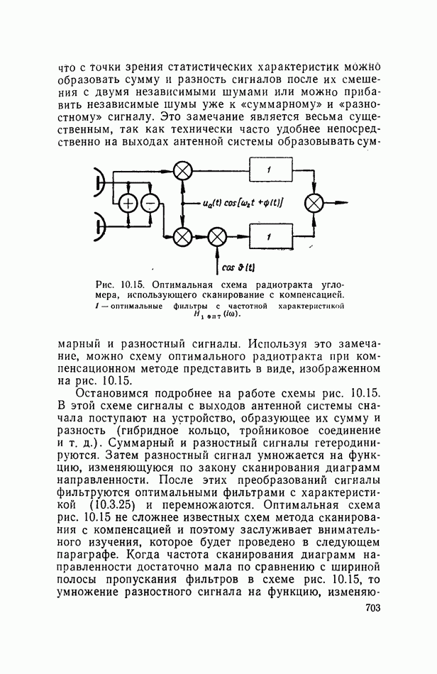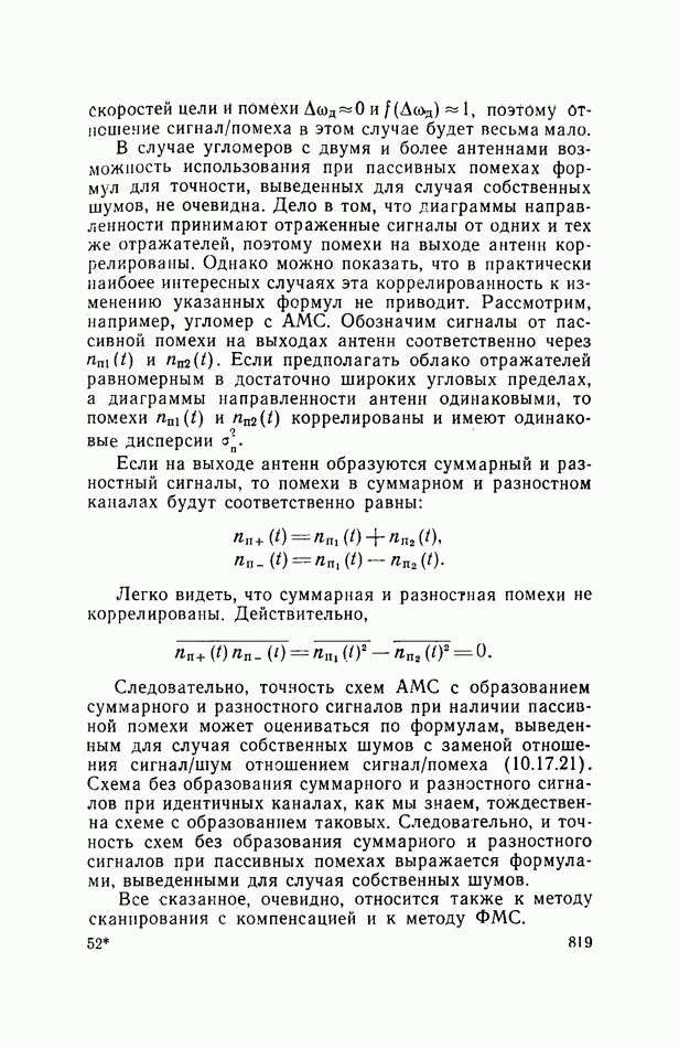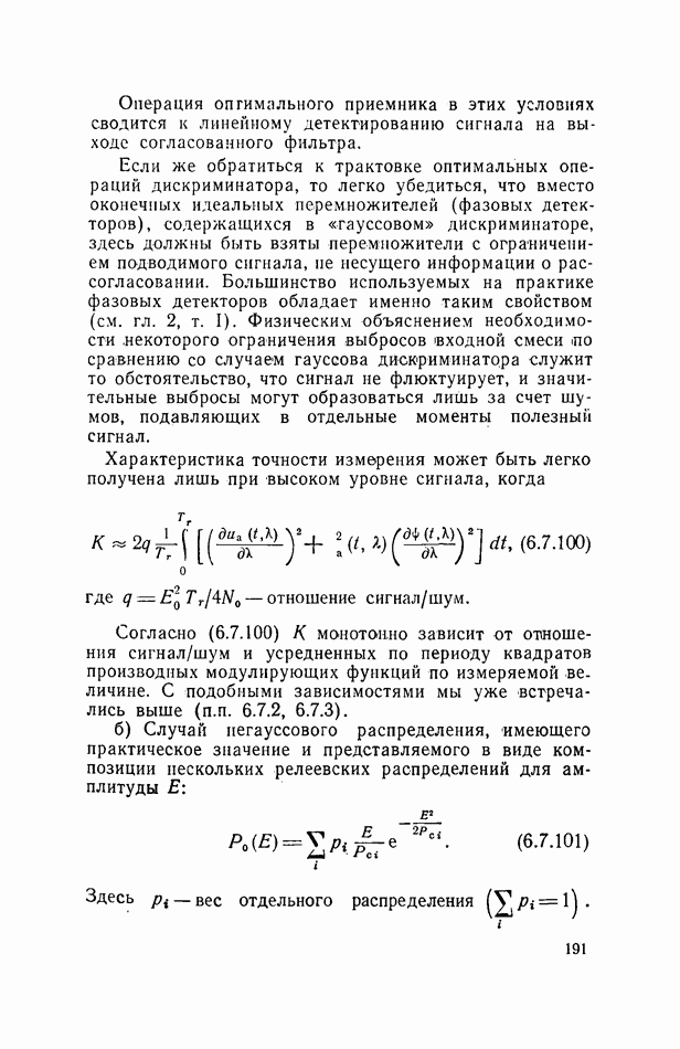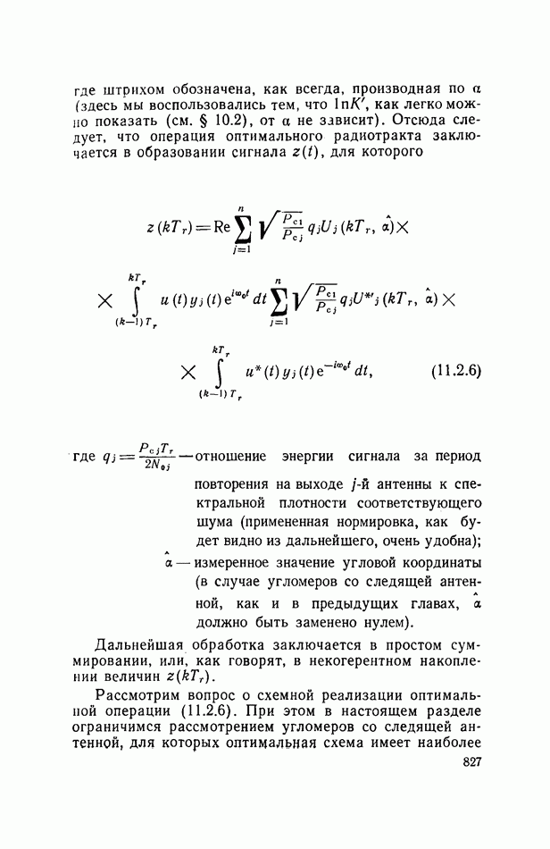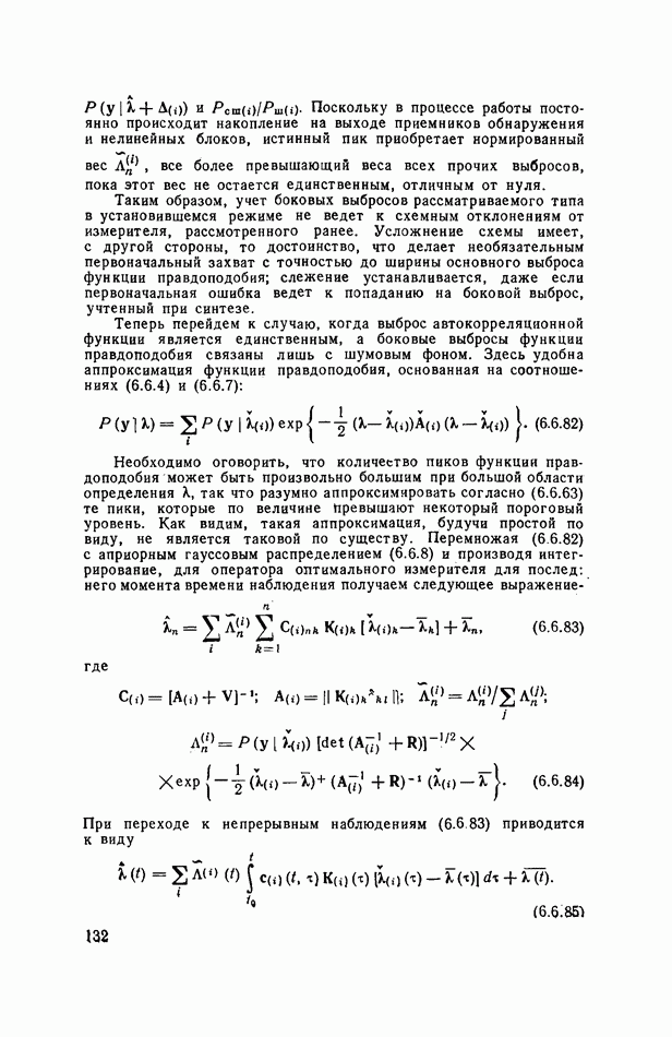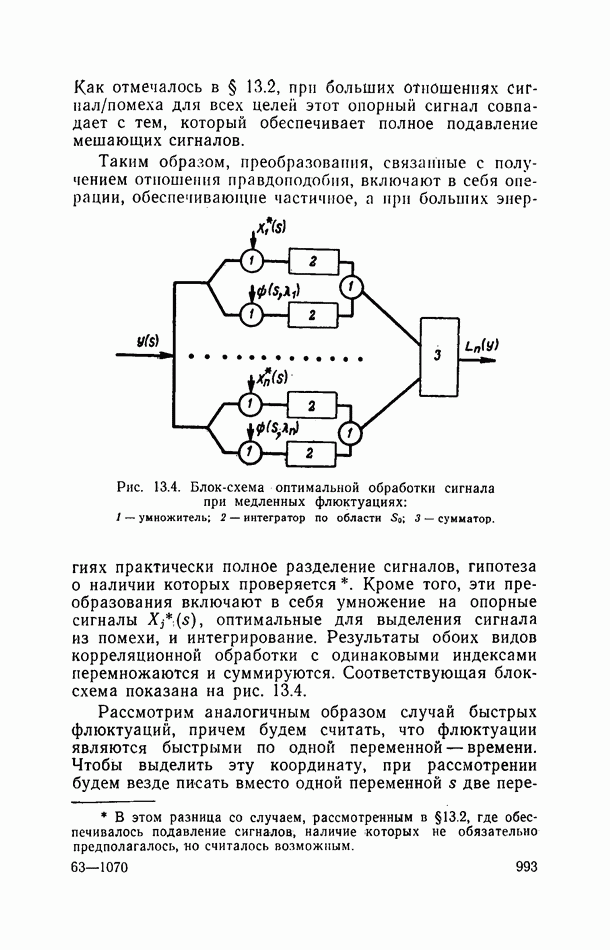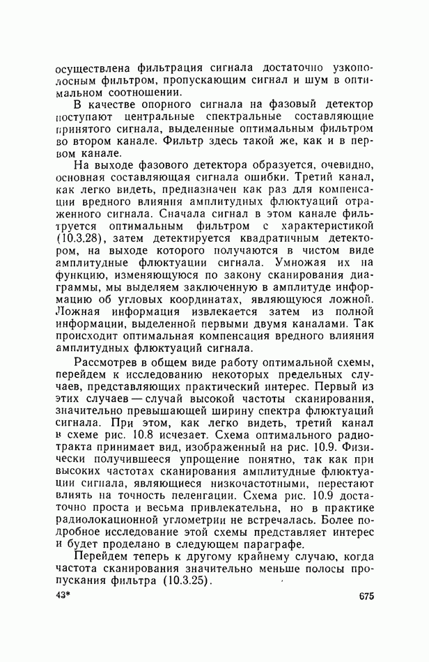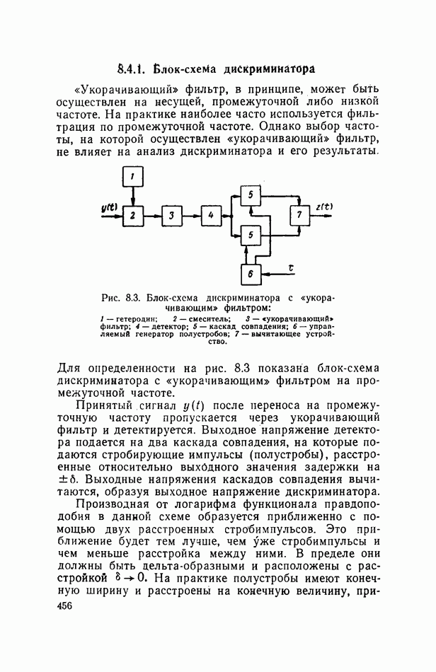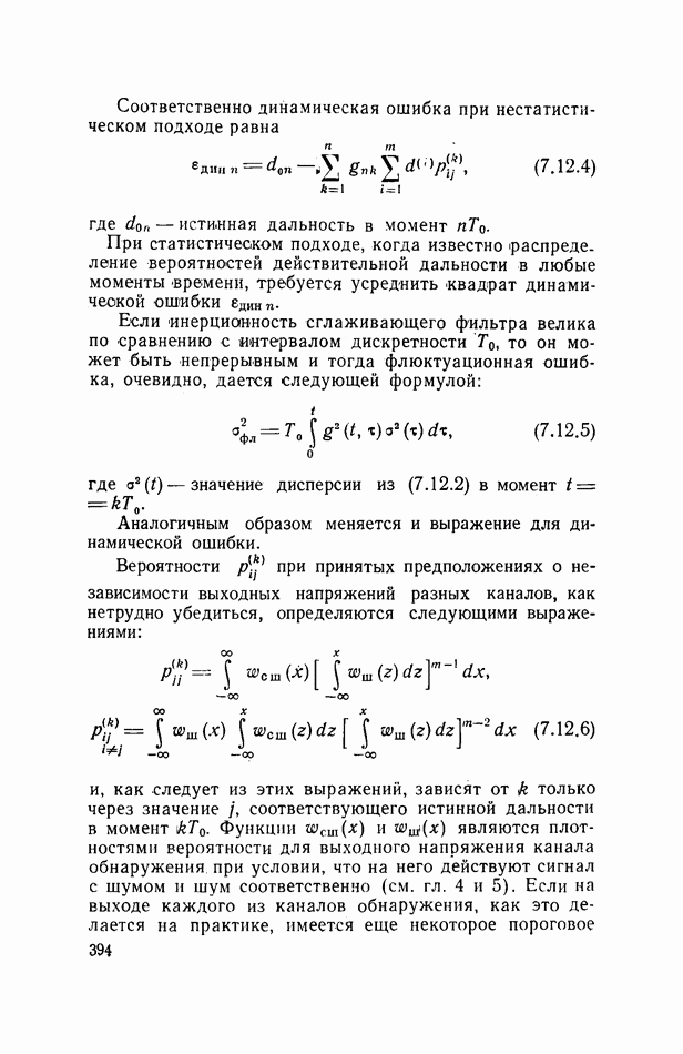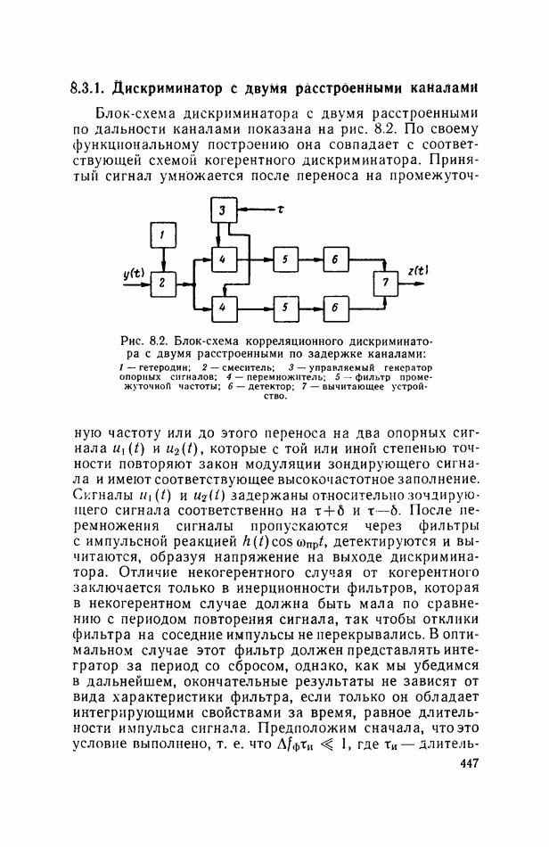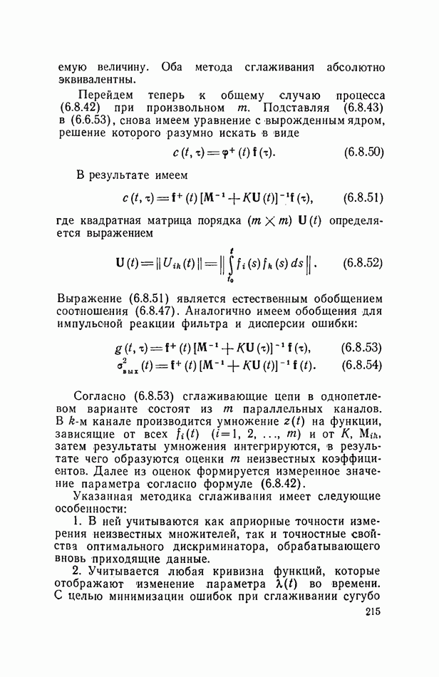 В случае быстрых флюктуаций сигналов сглаживающие цепи имеют меньшее отношение к вопросам разрешения. Вместе с тем их синтез при наличии многих целей и многих случайно изменяющихся во времени параметров, подлежащих измерению, представляет собой весьма сложную задачу. Этой задачи в настоящей книге мы касаться не будем — ограничимся лишь синтезом устройства, в котором сосредоточена собственно радиотехническая часть системы. Не делая различий между следящим и неследящим вариантами системы, назовем это устройство дискриминатором. Общие свойства оптимальных дискриминаторов, соответствующих многоцелевым задачам, будут сформулированы ниже.