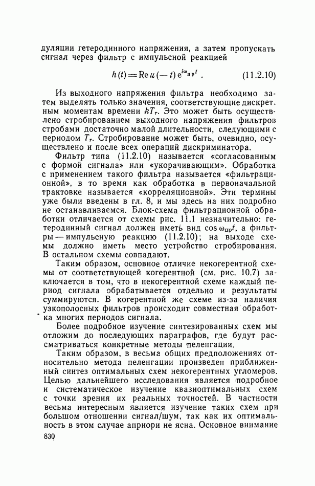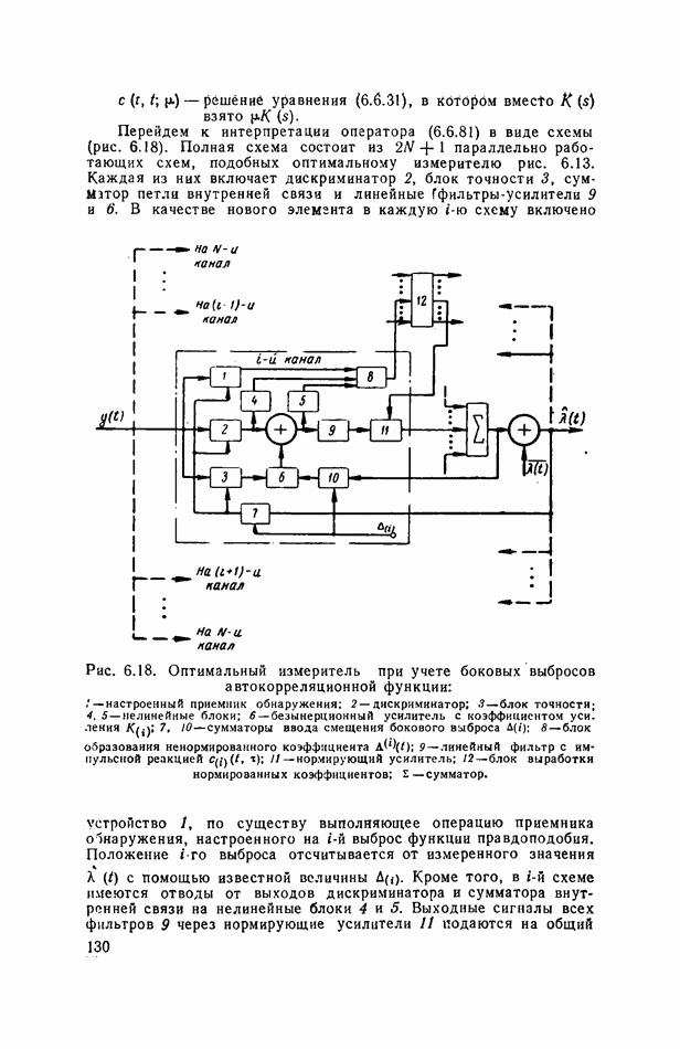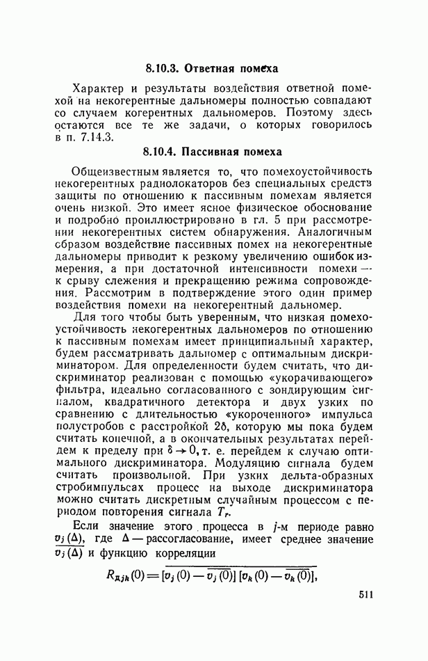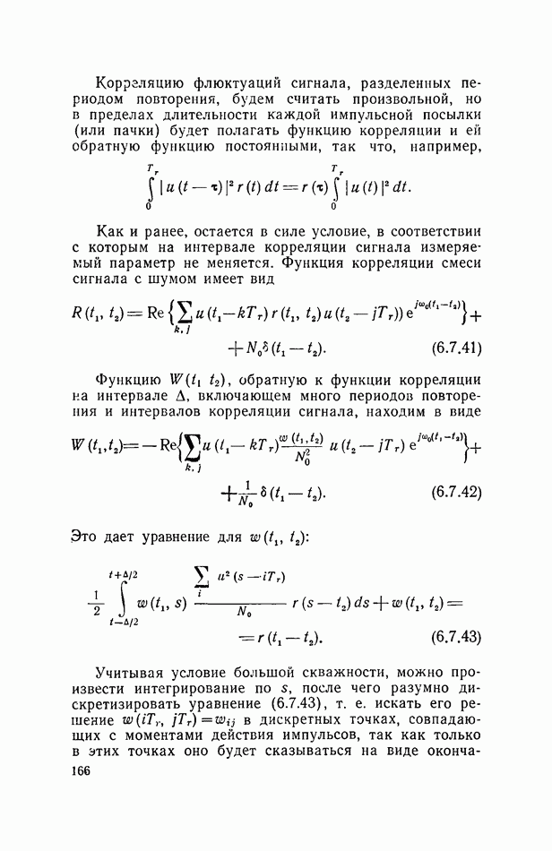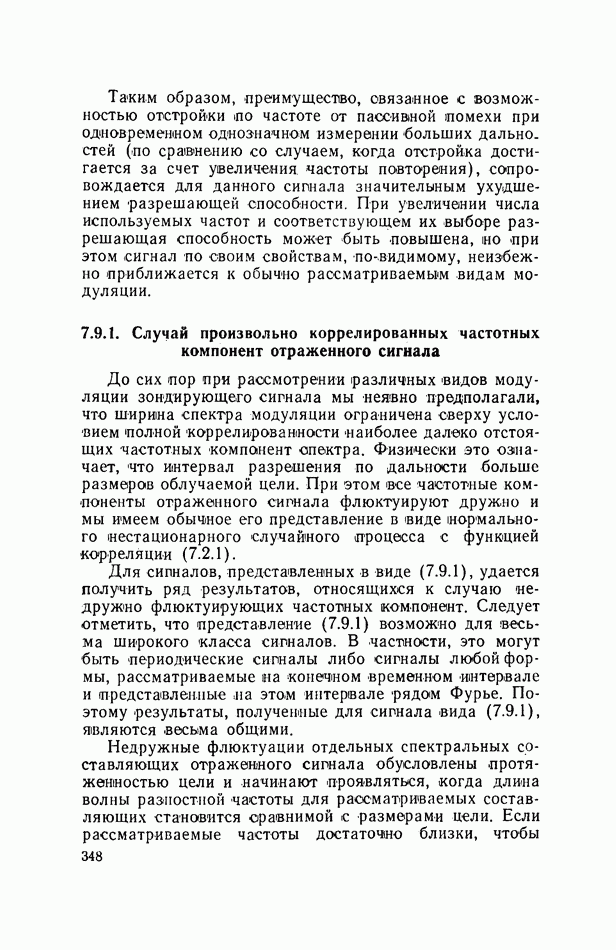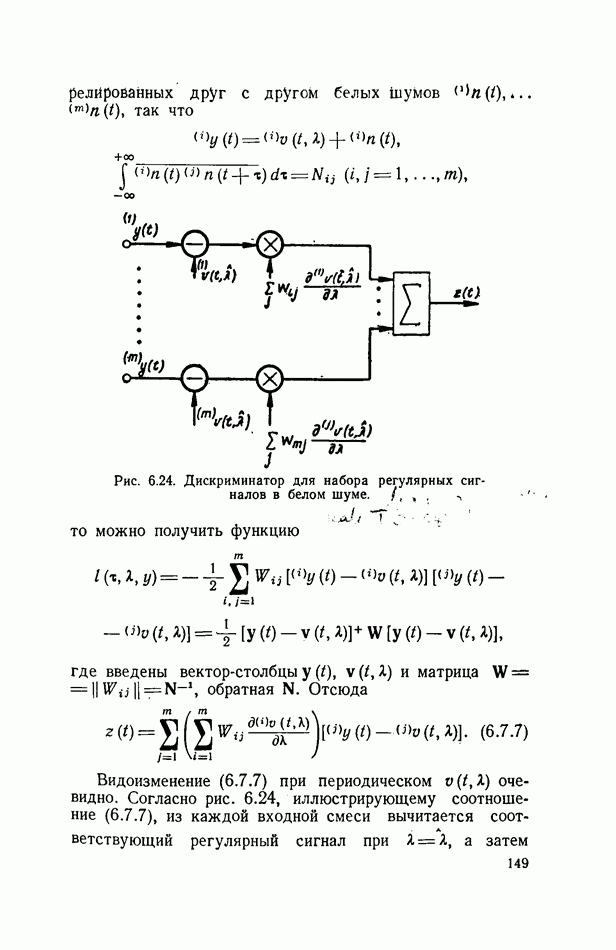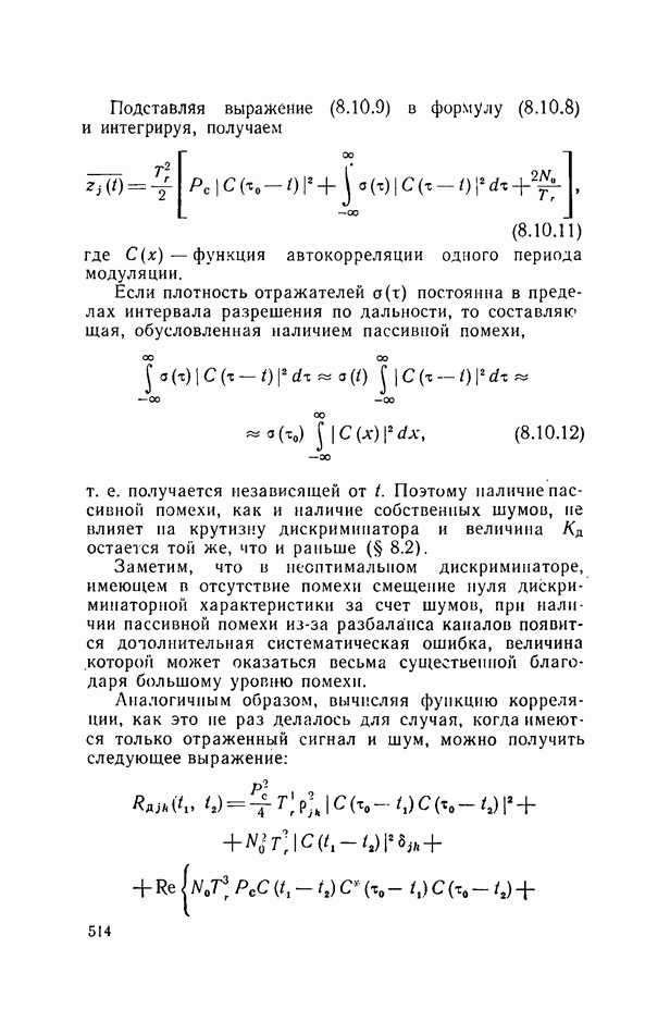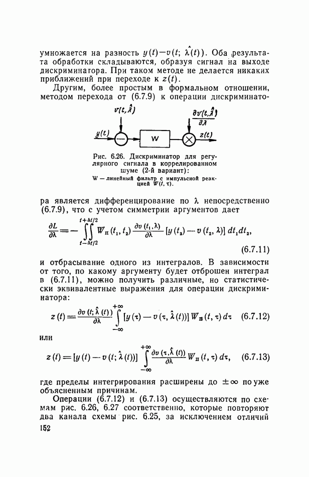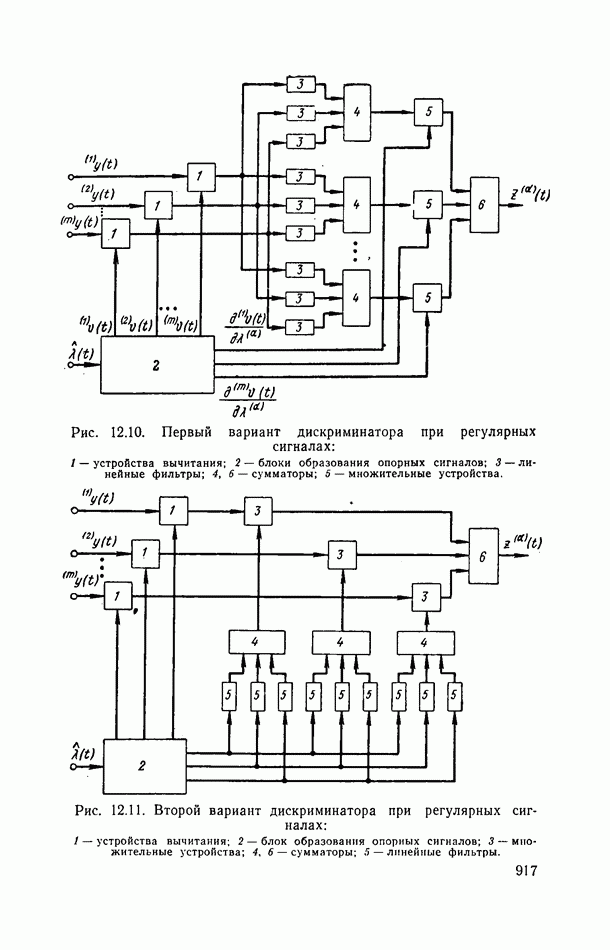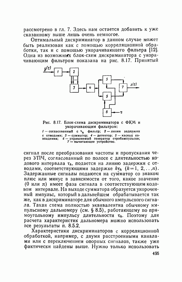 В случае быстрых флюктуаций сигналов сглаживающие цепи имеют меньшее отношение к вопросам разрешения. Вместе с тем их синтез при наличии многих целей и многих случайно изменяющихся во времени параметров, подлежащих измерению, представляет собой весьма сложную задачу. Этой задачи в настоящей книге мы касаться не будем — ограничимся лишь синтезом устройства, в котором сосредоточена собственно радиотехническая часть системы. Не делая различий между следящим и неследящим вариантами системы, назовем это устройство дискриминатором. Общие свойства оптимальных дискриминаторов, соответствующих многоцелевым задачам, будут сформулированы ниже.