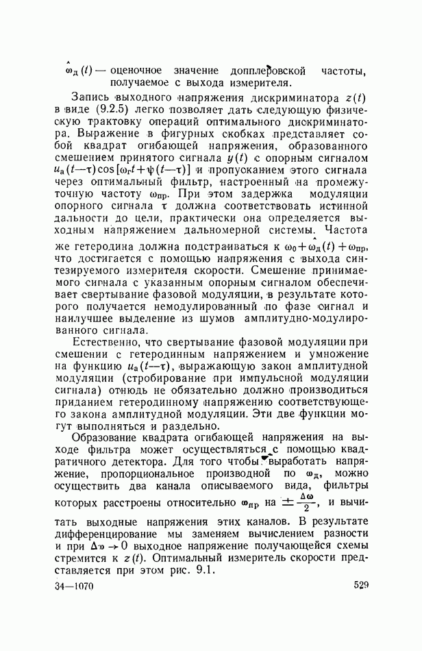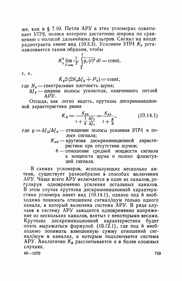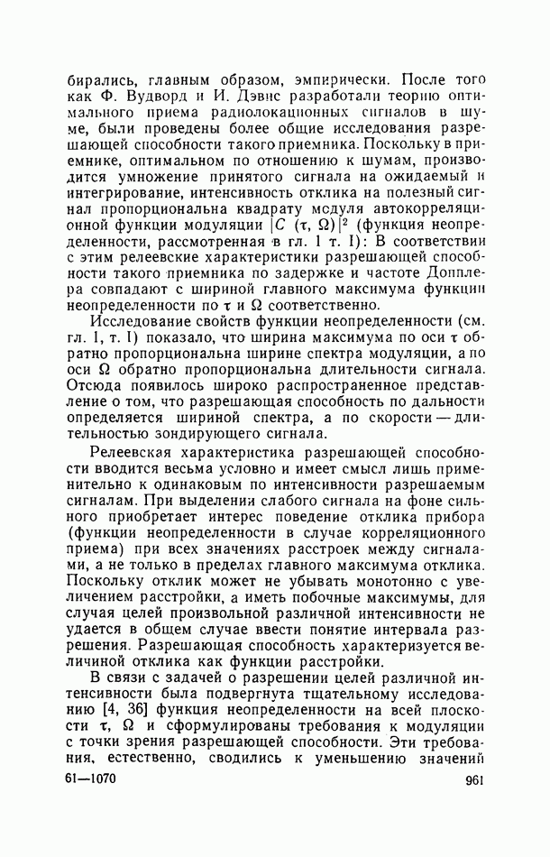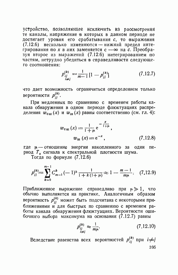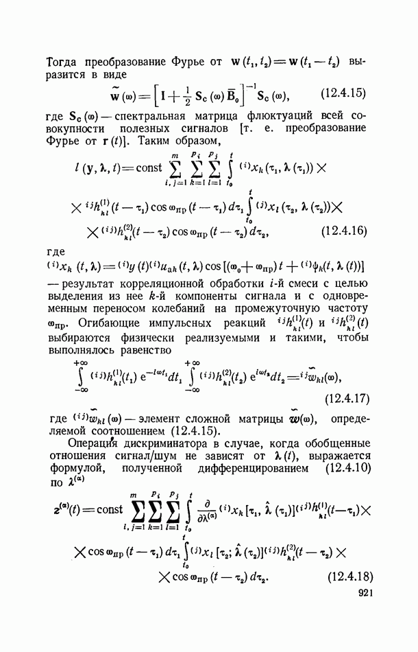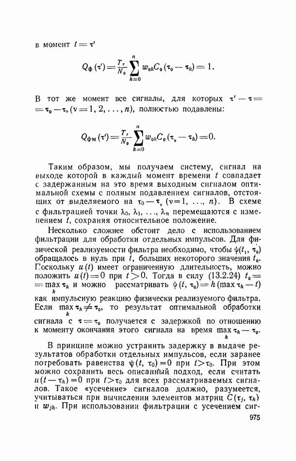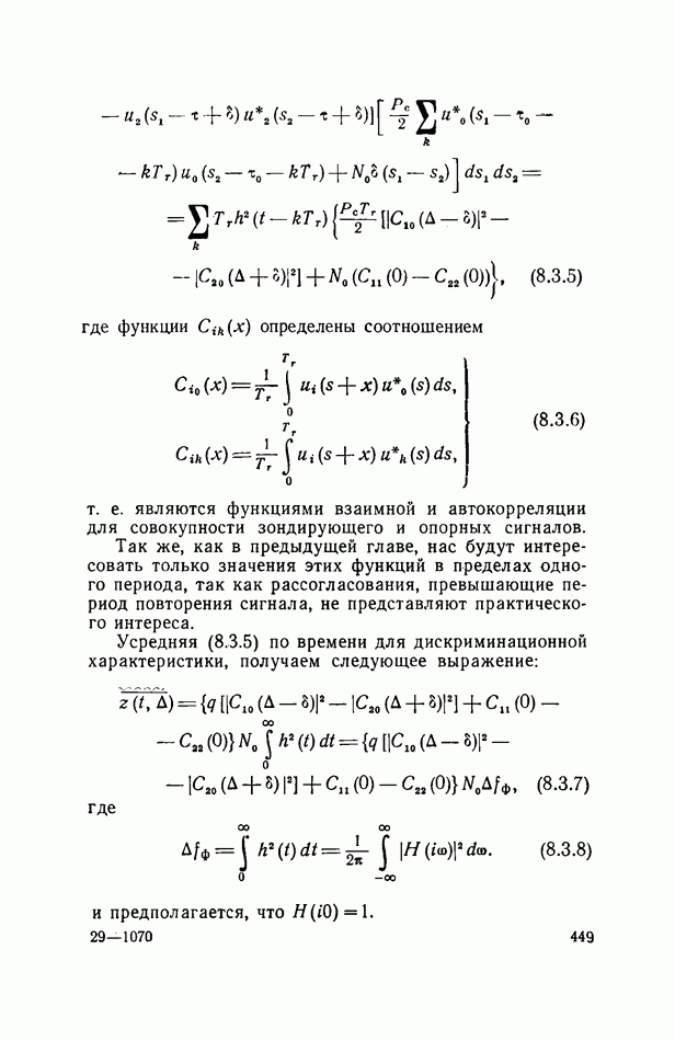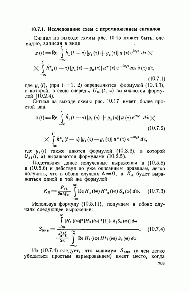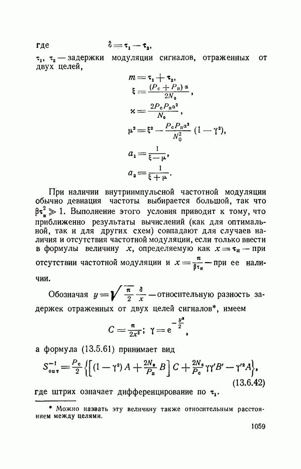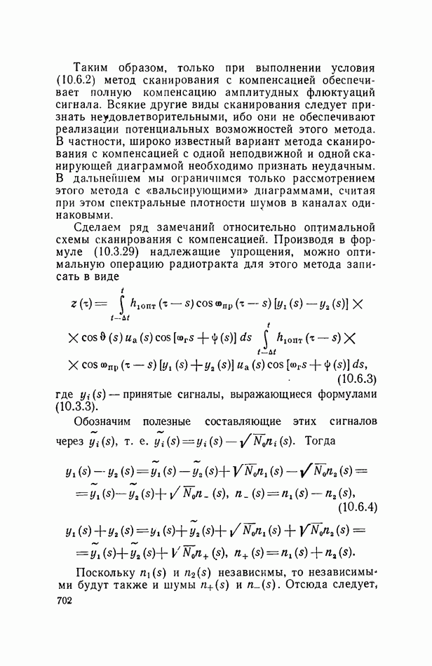 В случае быстрых флюктуаций сигналов сглаживающие цепи имеют меньшее отношение к вопросам разрешения. Вместе с тем их синтез при наличии многих целей и многих случайно изменяющихся во времени параметров, подлежащих измерению, представляет собой весьма сложную задачу. Этой задачи в настоящей книге мы касаться не будем — ограничимся лишь синтезом устройства, в котором сосредоточена собственно радиотехническая часть системы. Не делая различий между следящим и неследящим вариантами системы, назовем это устройство дискриминатором. Общие свойства оптимальных дискриминаторов, соответствующих многоцелевым задачам, будут сформулированы ниже.