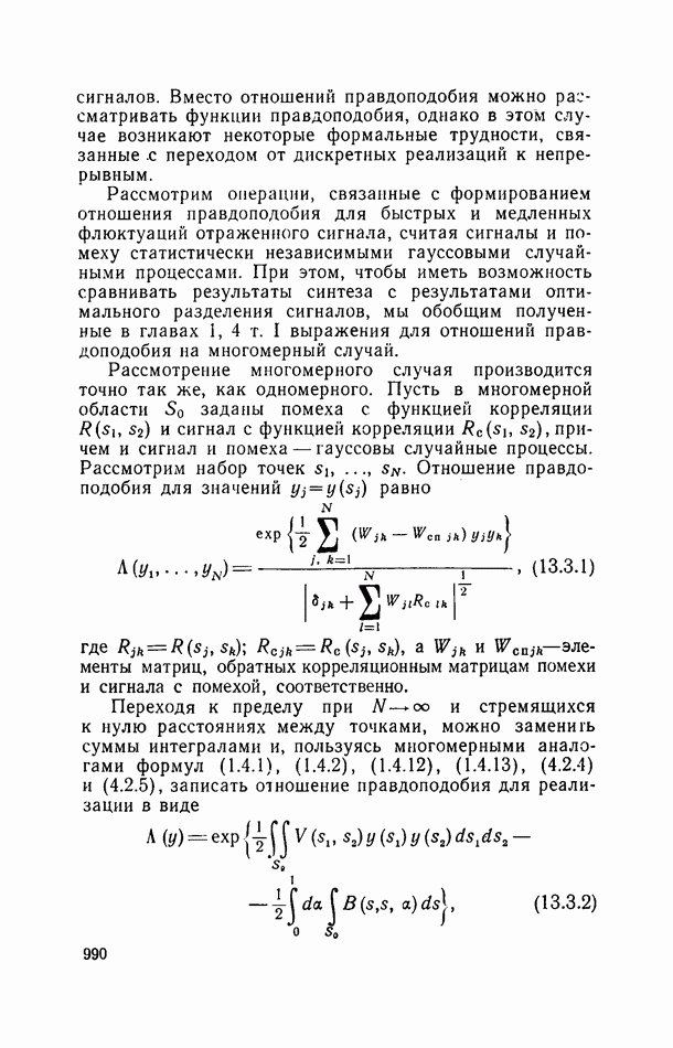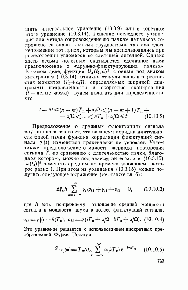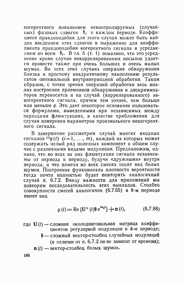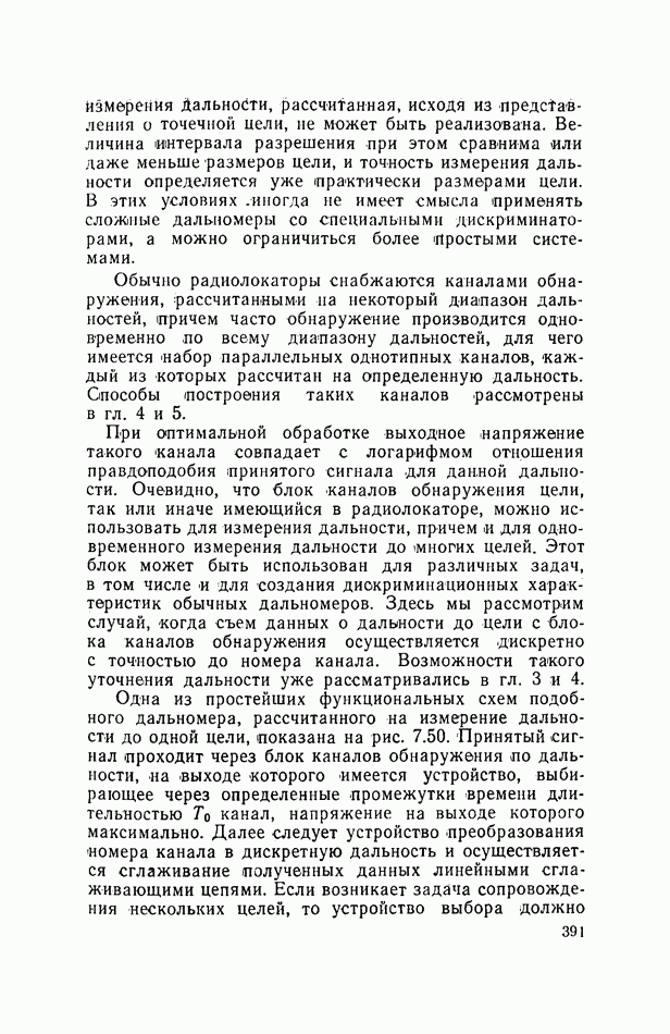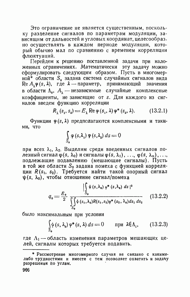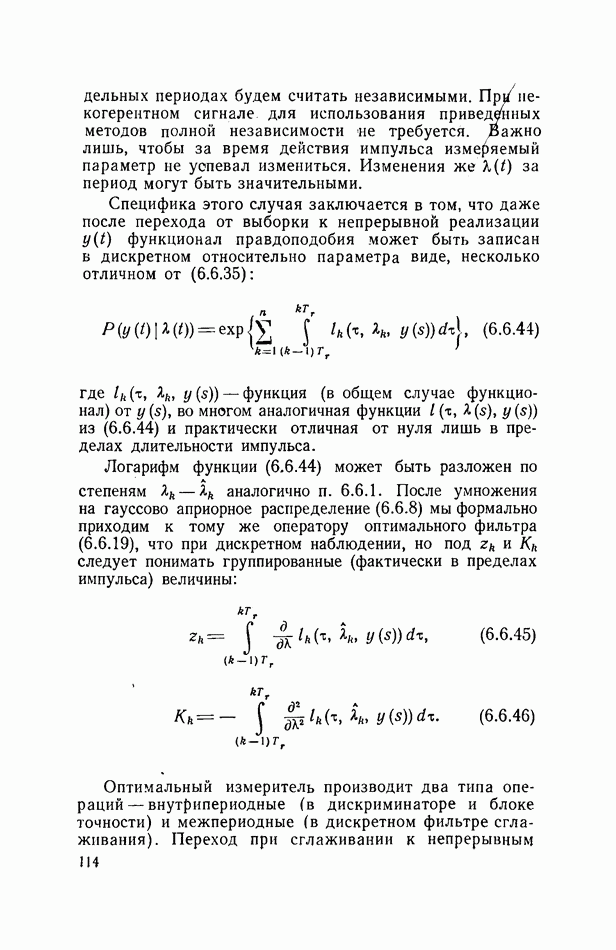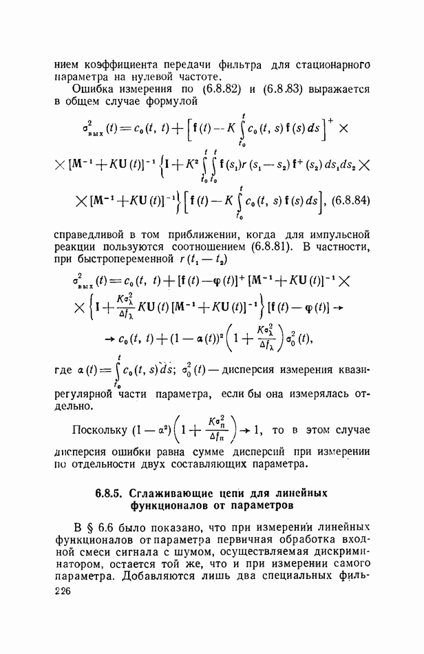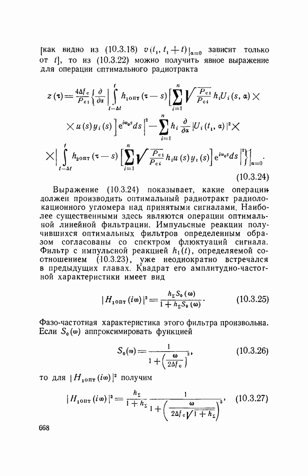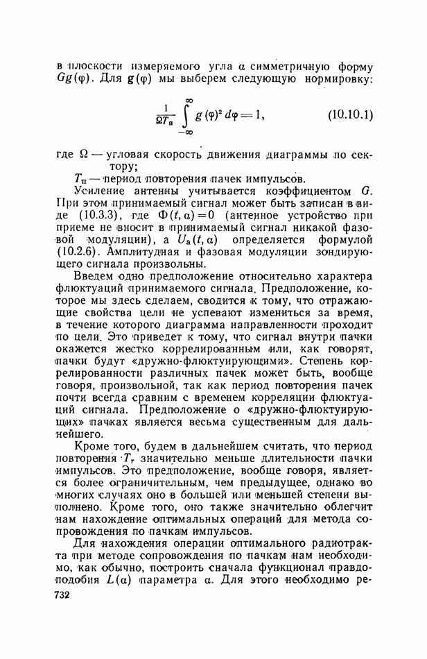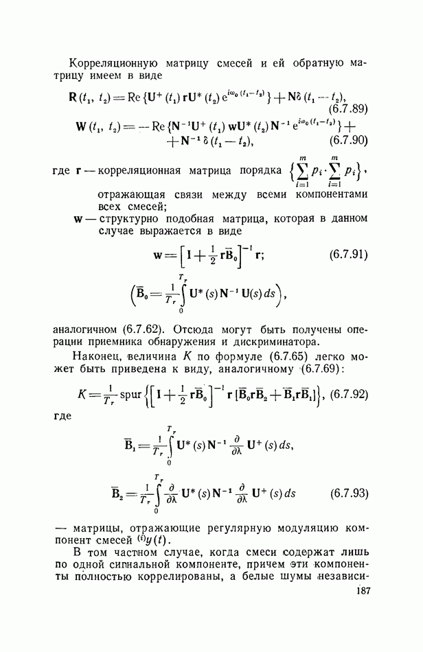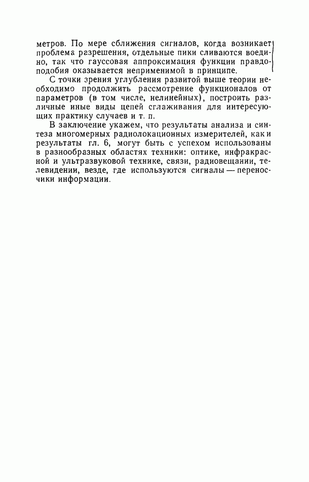 В случае быстрых флюктуаций сигналов сглаживающие цепи имеют меньшее отношение к вопросам разрешения. Вместе с тем их синтез при наличии многих целей и многих случайно изменяющихся во времени параметров, подлежащих измерению, представляет собой весьма сложную задачу. Этой задачи в настоящей книге мы касаться не будем — ограничимся лишь синтезом устройства, в котором сосредоточена собственно радиотехническая часть системы. Не делая различий между следящим и неследящим вариантами системы, назовем это устройство дискриминатором. Общие свойства оптимальных дискриминаторов, соответствующих многоцелевым задачам, будут сформулированы ниже.