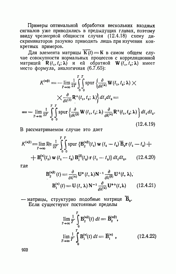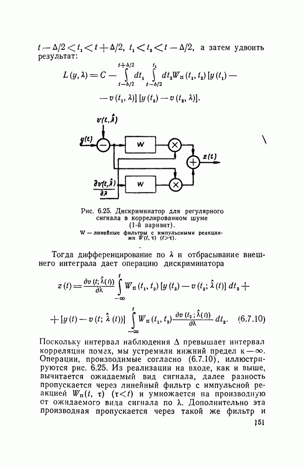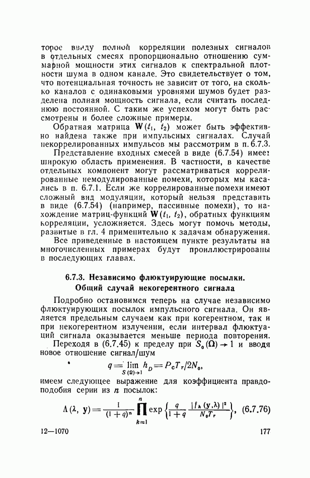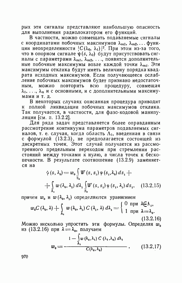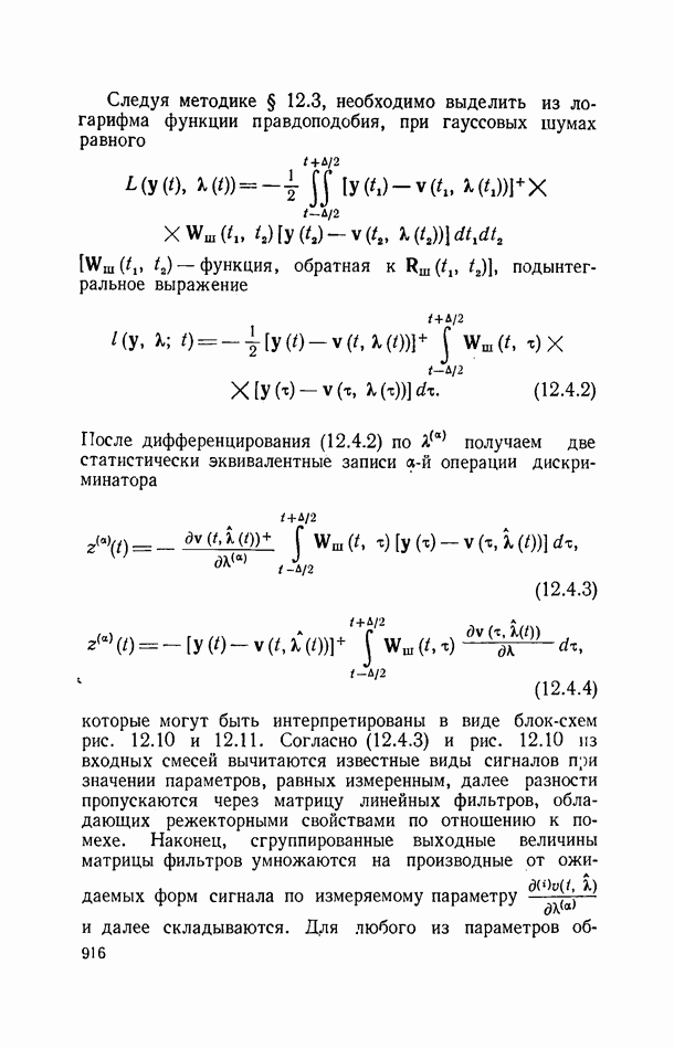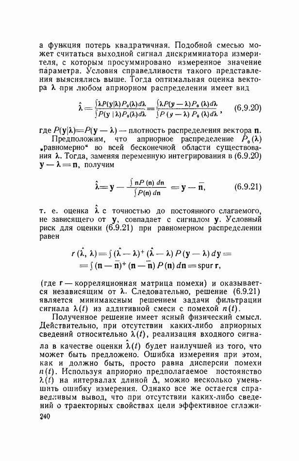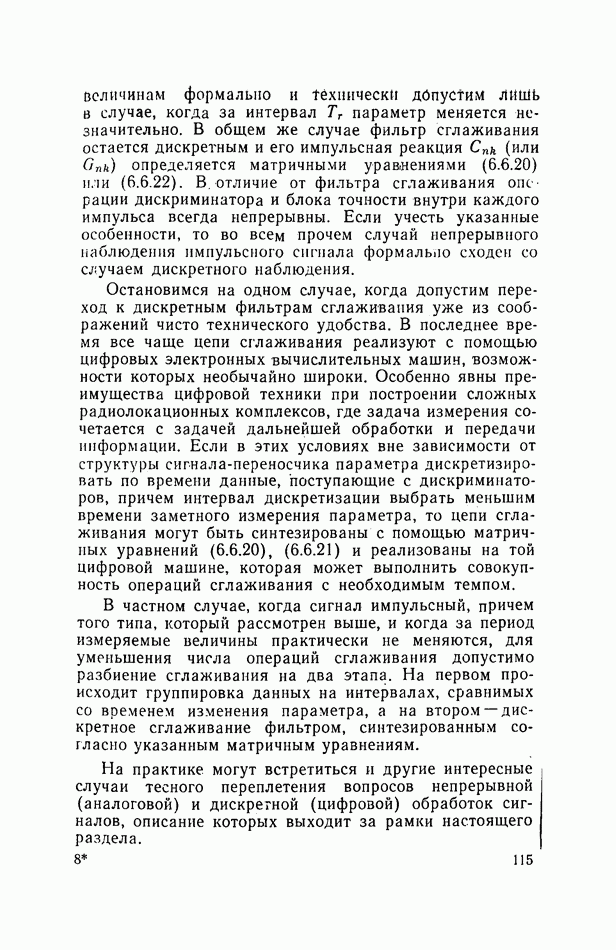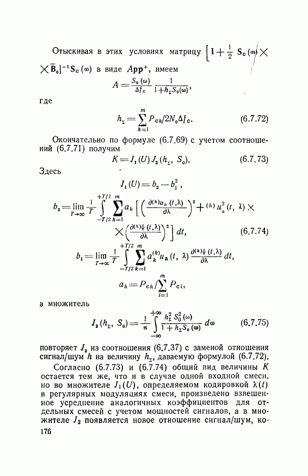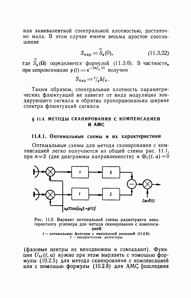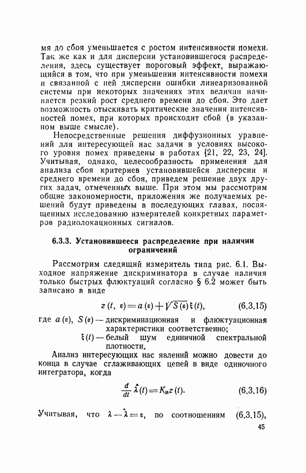В случае быстрых флюктуаций сигналов сглаживающие цепи имеют меньшее отношение к вопросам разрешения. Вместе с тем их синтез при наличии многих целей и многих случайно изменяющихся во времени параметров, подлежащих измерению, представляет собой весьма сложную задачу. Этой задачи в настоящей книге мы касаться не будем — ограничимся лишь синтезом устройства, в котором сосредоточена собственно радиотехническая часть системы. Не делая различий между следящим и неследящим вариантами системы, назовем это устройство дискриминатором. Общие свойства оптимальных дискриминаторов, соответствующих многоцелевым задачам, будут сформулированы ниже.