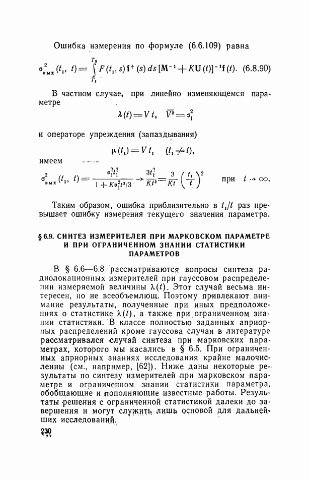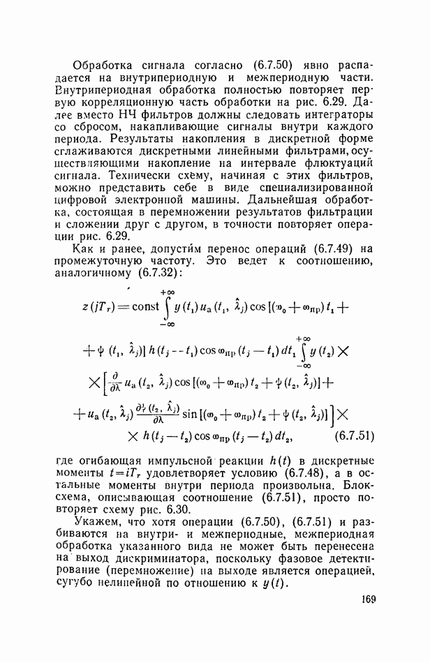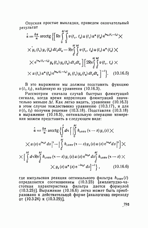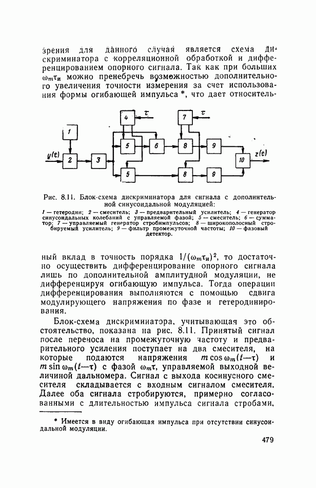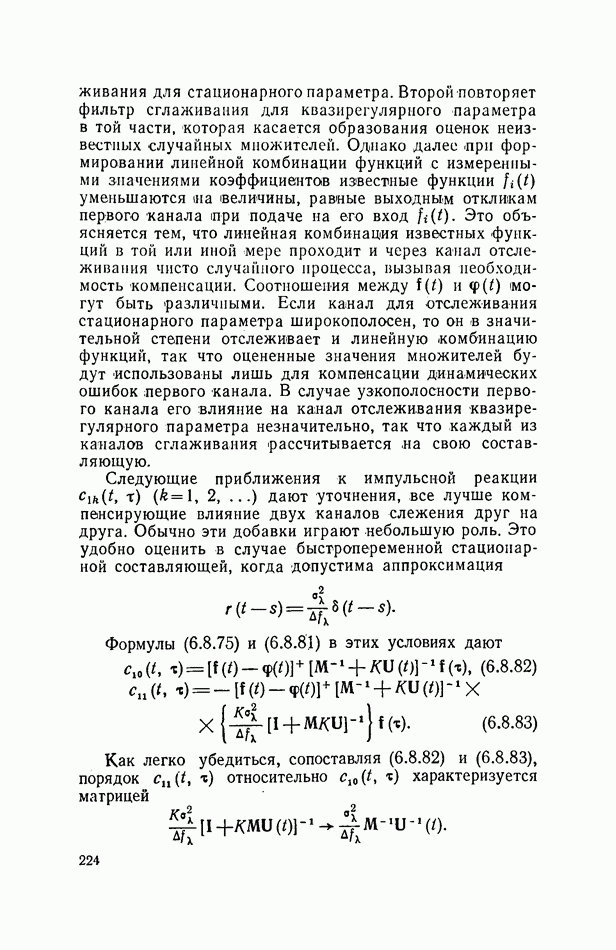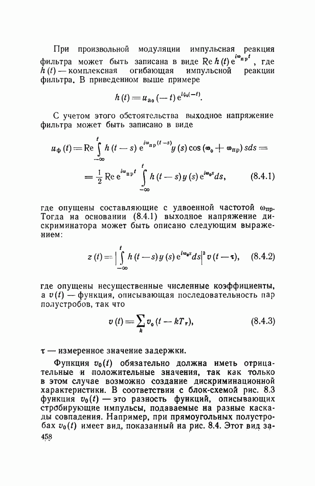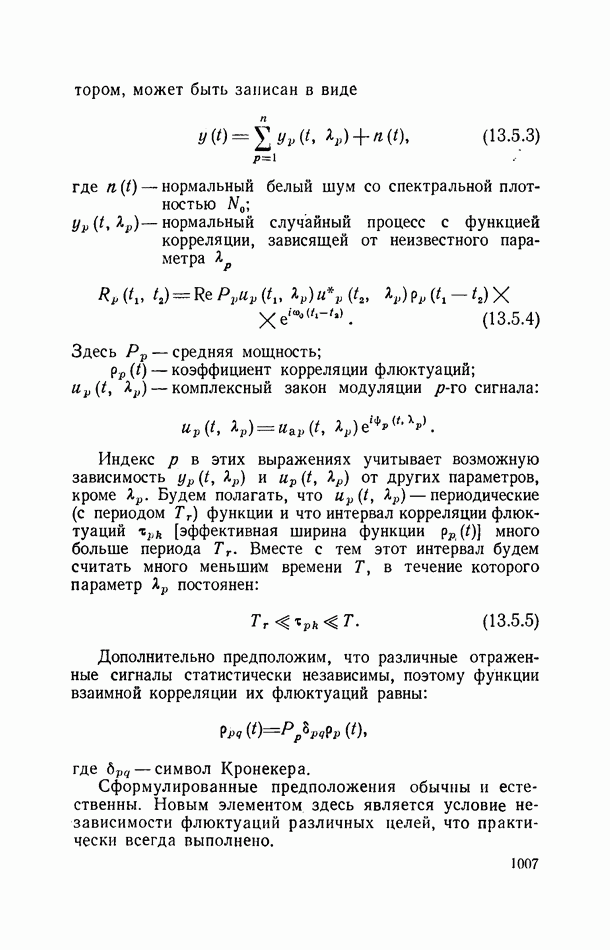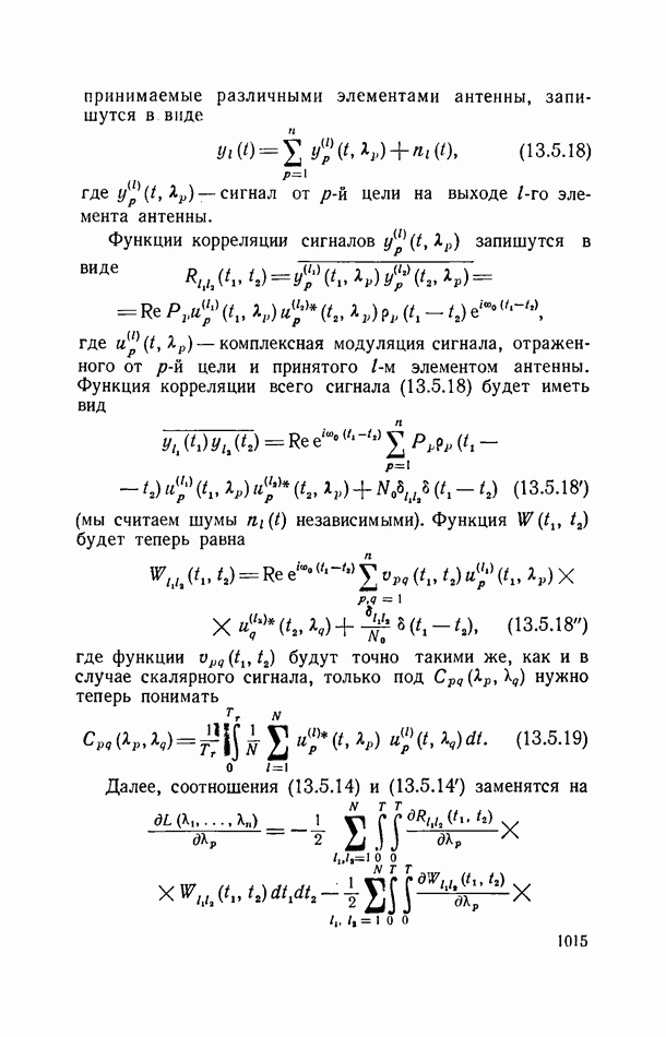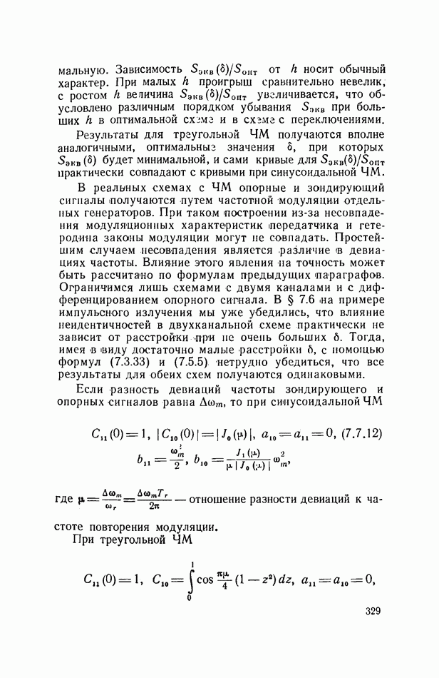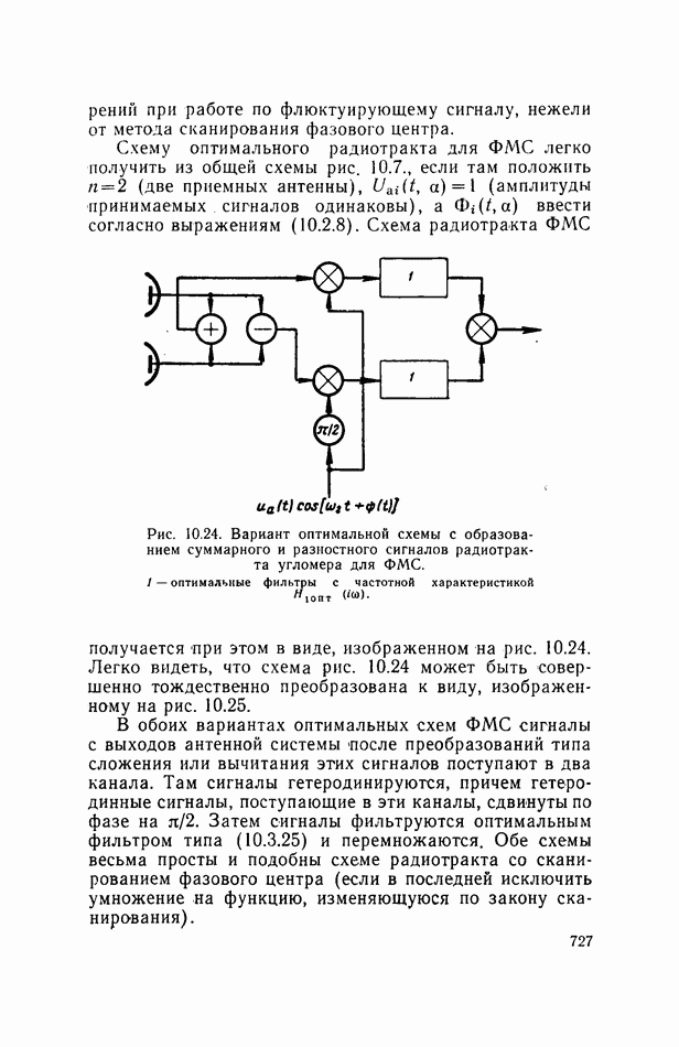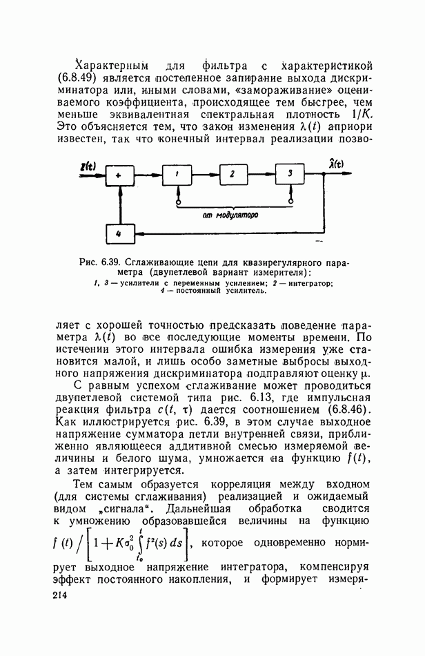 В случае быстрых флюктуаций сигналов сглаживающие цепи имеют меньшее отношение к вопросам разрешения. Вместе с тем их синтез при наличии многих целей и многих случайно изменяющихся во времени параметров, подлежащих измерению, представляет собой весьма сложную задачу. Этой задачи в настоящей книге мы касаться не будем — ограничимся лишь синтезом устройства, в котором сосредоточена собственно радиотехническая часть системы. Не делая различий между следящим и неследящим вариантами системы, назовем это устройство дискриминатором. Общие свойства оптимальных дискриминаторов, соответствующих многоцелевым задачам, будут сформулированы ниже.