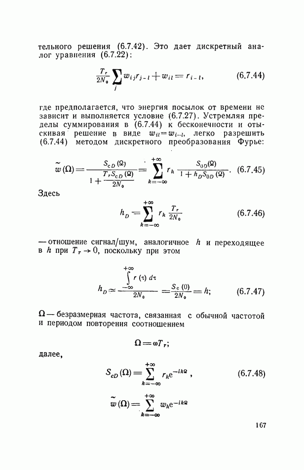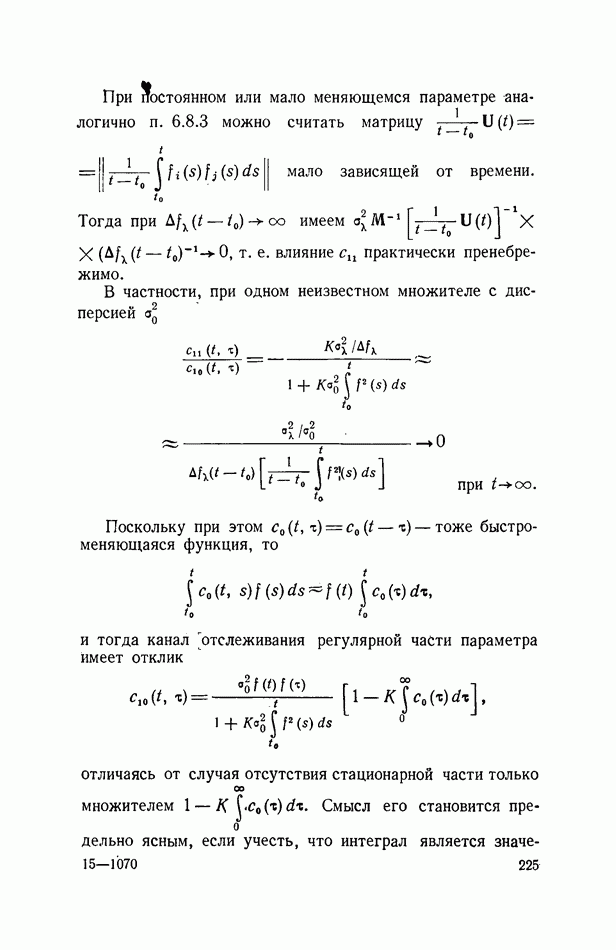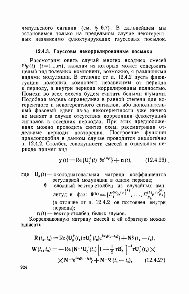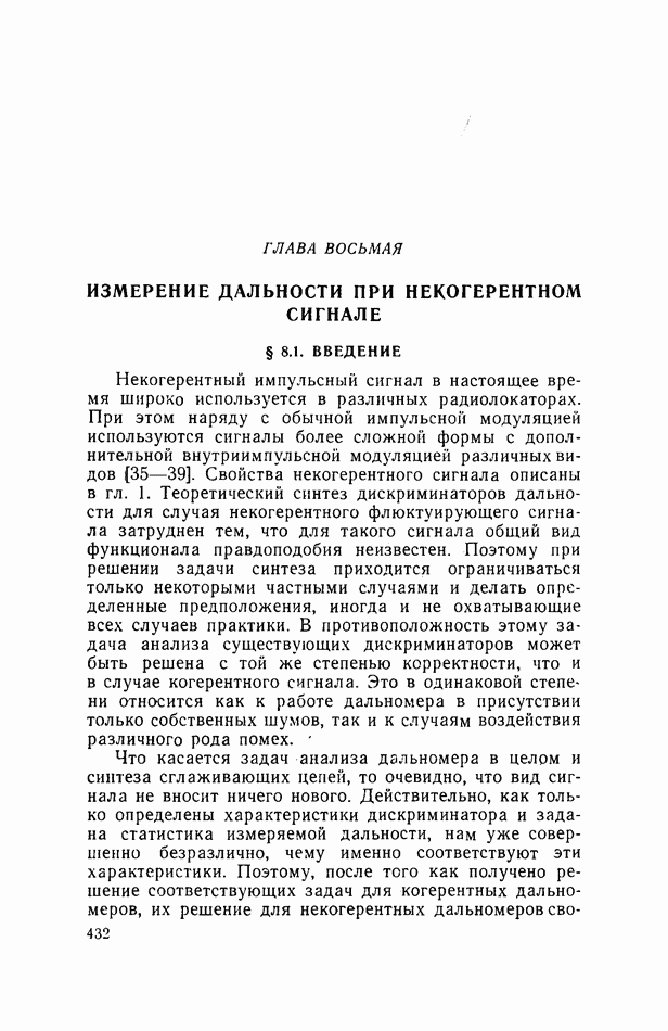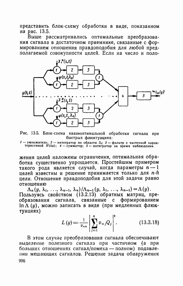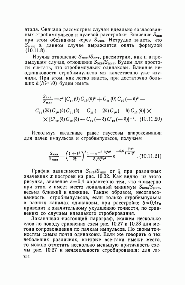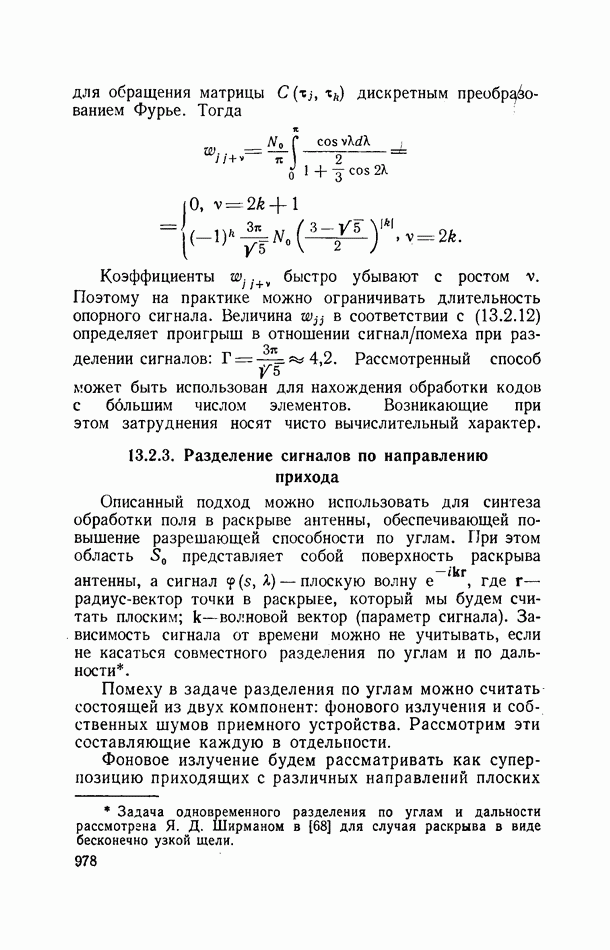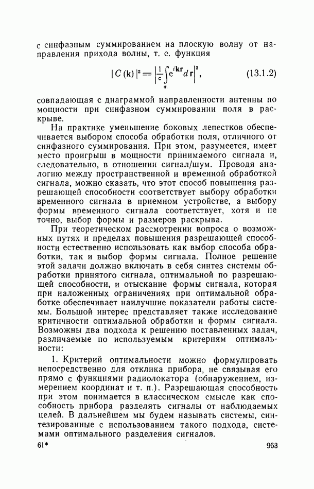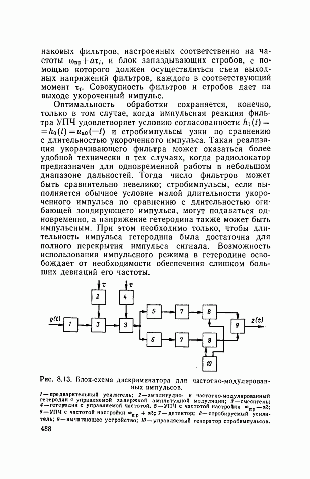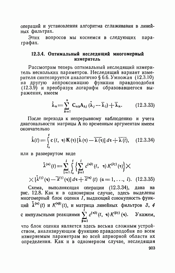 В случае быстрых флюктуаций сигналов сглаживающие цепи имеют меньшее отношение к вопросам разрешения. Вместе с тем их синтез при наличии многих целей и многих случайно изменяющихся во времени параметров, подлежащих измерению, представляет собой весьма сложную задачу. Этой задачи в настоящей книге мы касаться не будем — ограничимся лишь синтезом устройства, в котором сосредоточена собственно радиотехническая часть системы. Не делая различий между следящим и неследящим вариантами системы, назовем это устройство дискриминатором. Общие свойства оптимальных дискриминаторов, соответствующих многоцелевым задачам, будут сформулированы ниже.