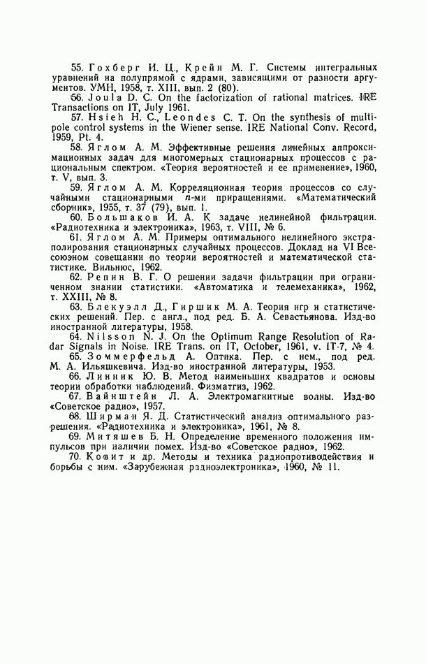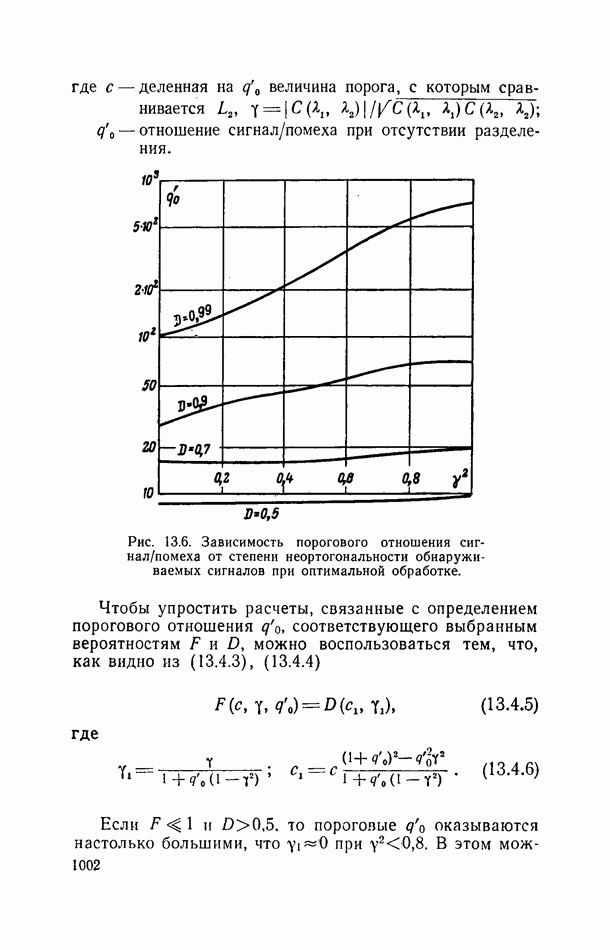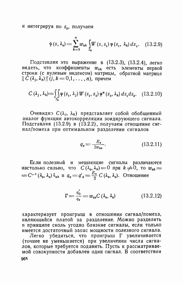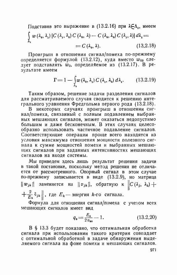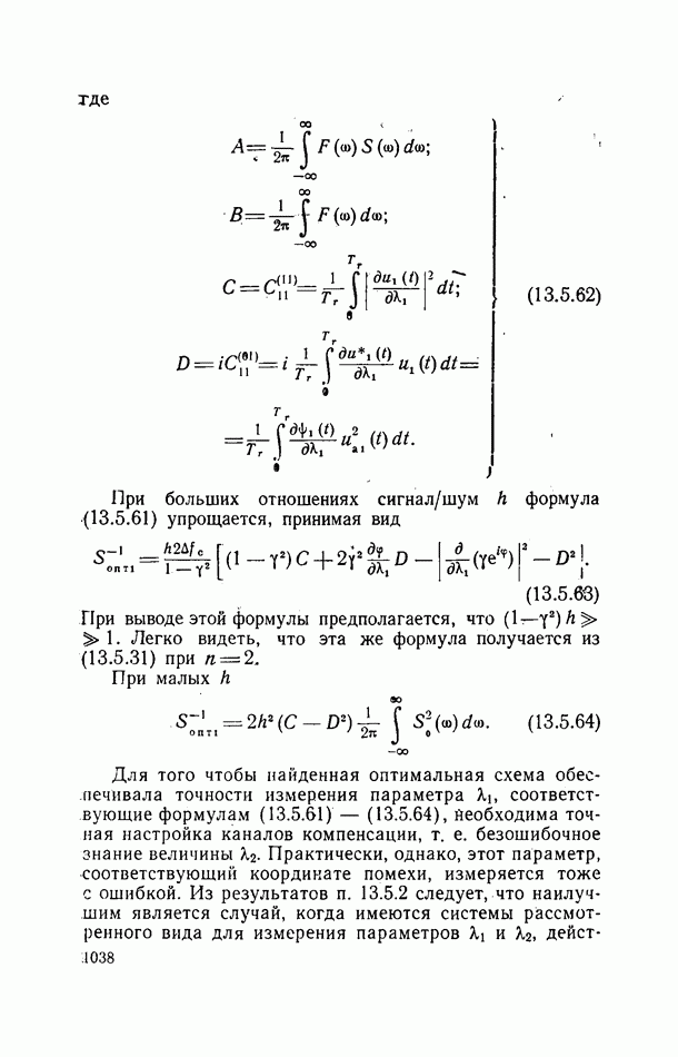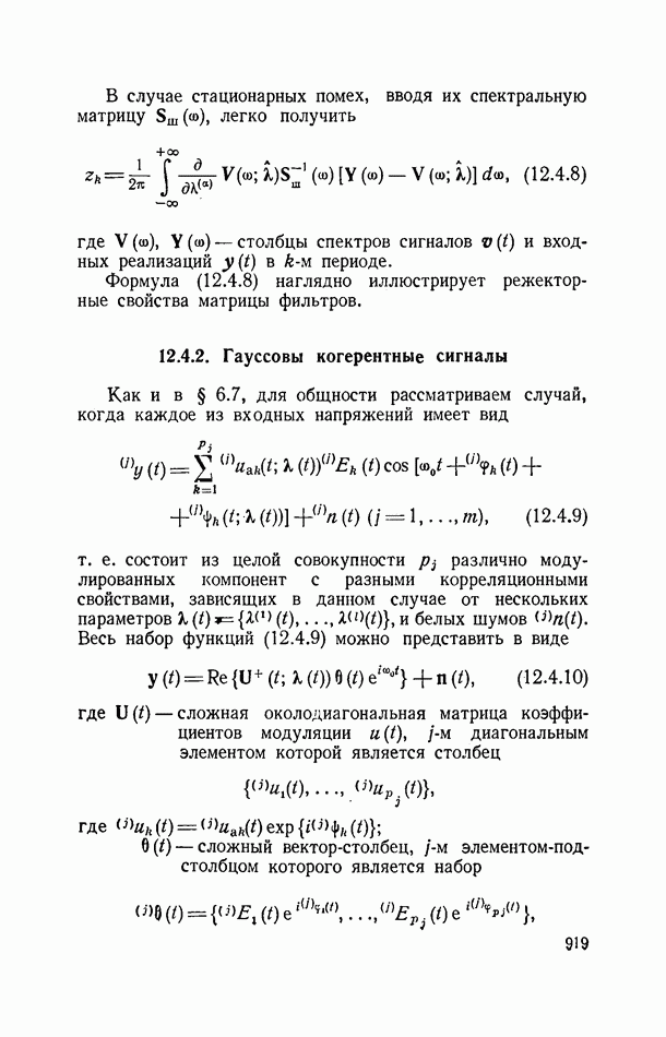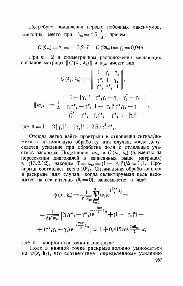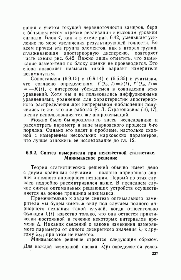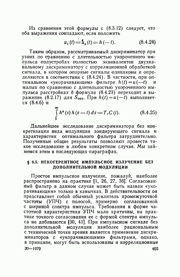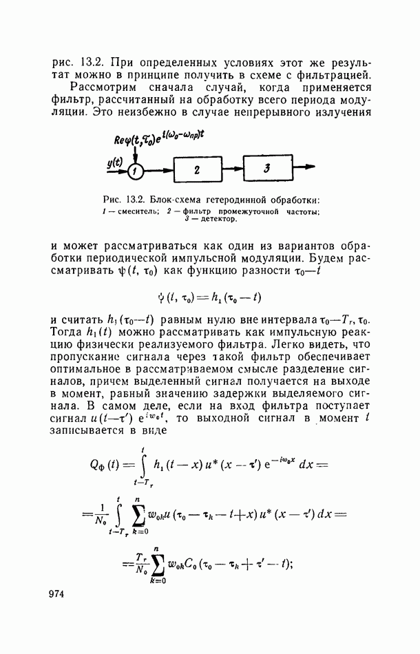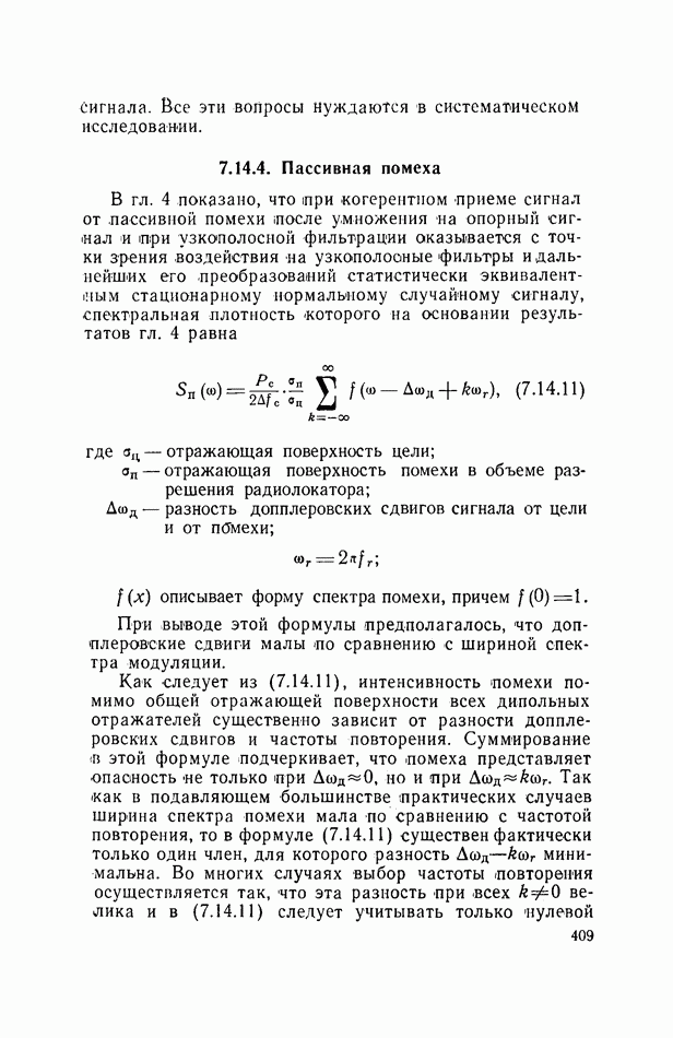 В случае быстрых флюктуаций сигналов сглаживающие цепи имеют меньшее отношение к вопросам разрешения. Вместе с тем их синтез при наличии многих целей и многих случайно изменяющихся во времени параметров, подлежащих измерению, представляет собой весьма сложную задачу. Этой задачи в настоящей книге мы касаться не будем — ограничимся лишь синтезом устройства, в котором сосредоточена собственно радиотехническая часть системы. Не делая различий между следящим и неследящим вариантами системы, назовем это устройство дискриминатором. Общие свойства оптимальных дискриминаторов, соответствующих многоцелевым задачам, будут сформулированы ниже.