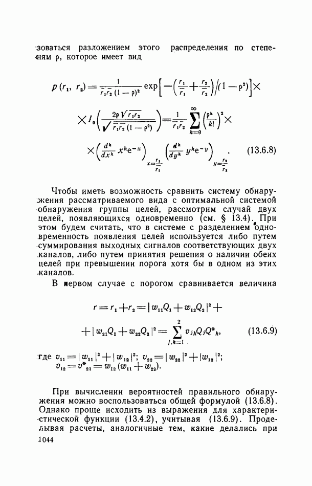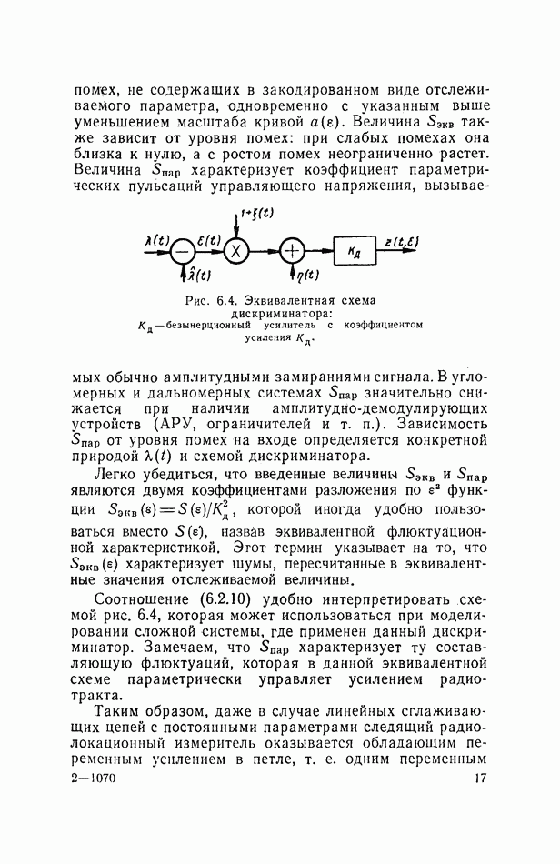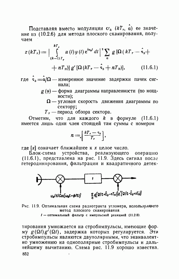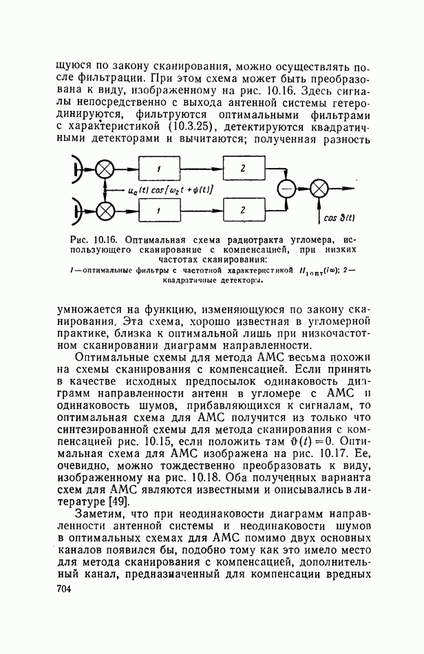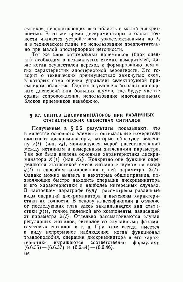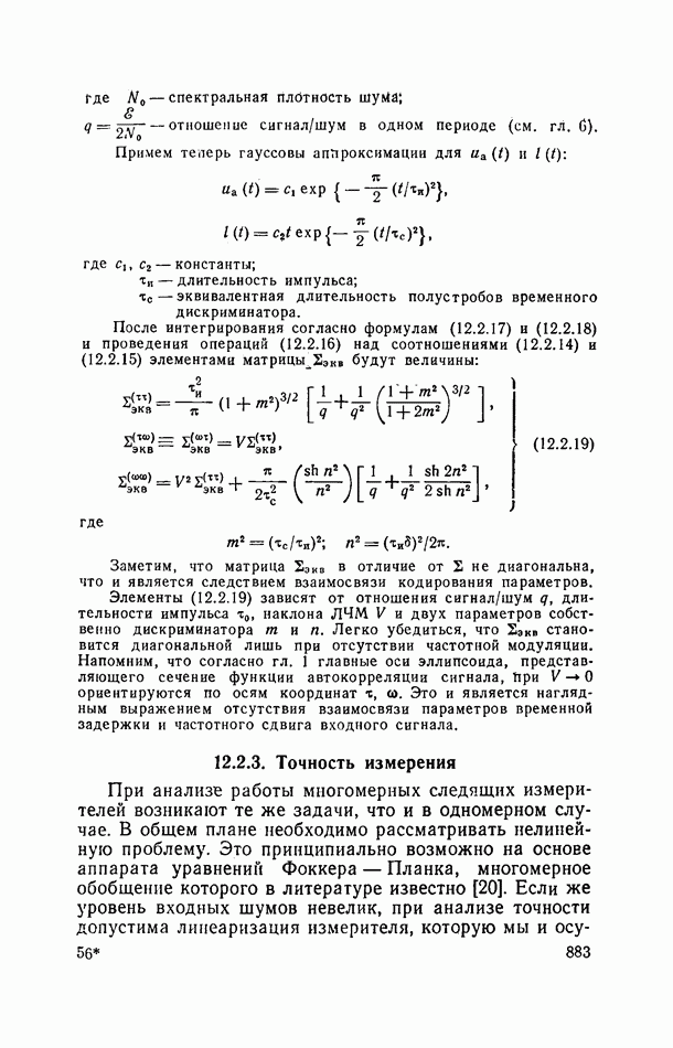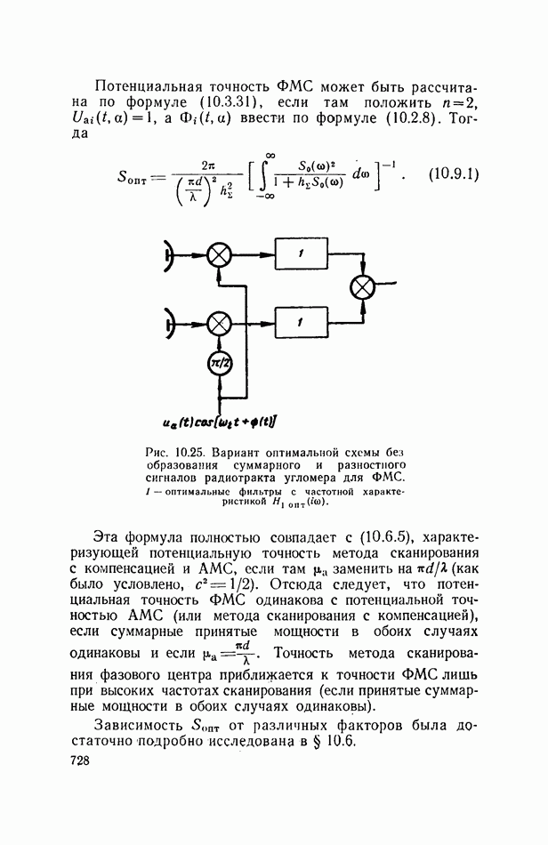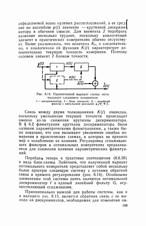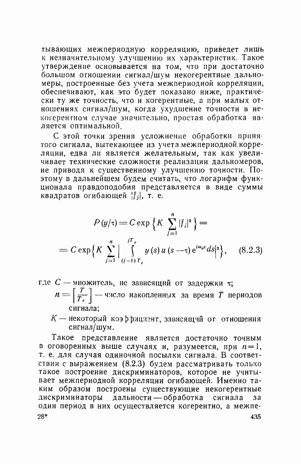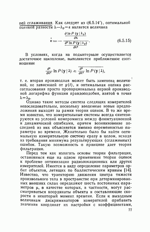 Если этот критерий применить для синтеза системы измерения координат в целом, то, как и в случае одной цели, при соблюдении некоторых не слишком ограничительных условий система разделится на две части. Первая из них — это дискриминатор в следящем варианте или блок оценки в неследящем варианте измерителя, т. е. система обработки высокочастотного сигнала, вырабатывающая текущую оценку измеряемого параметра (совокупности параметров)