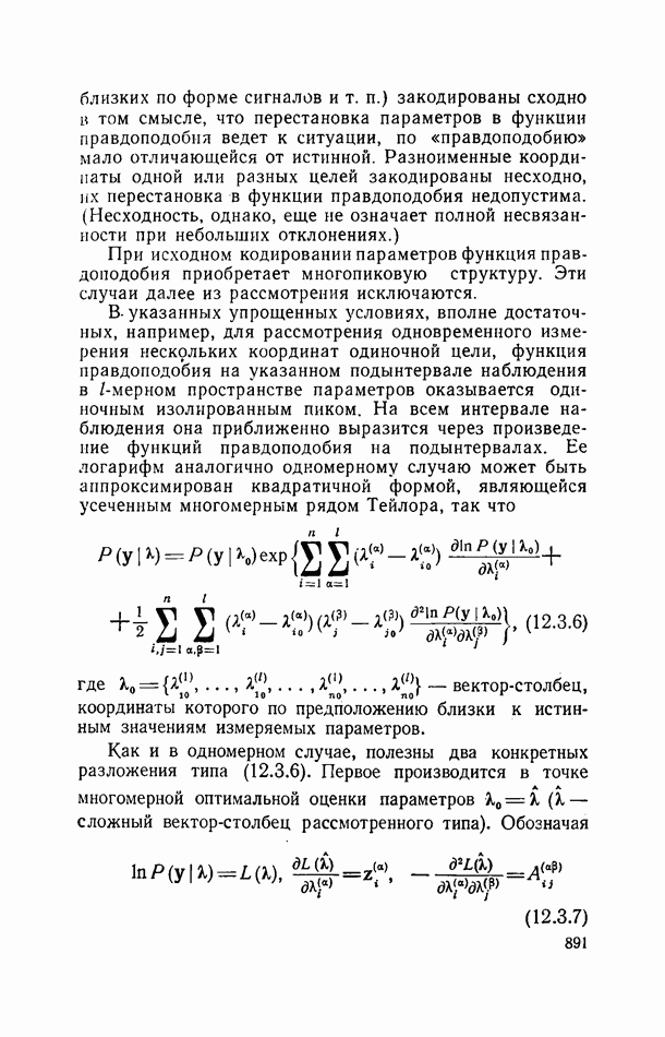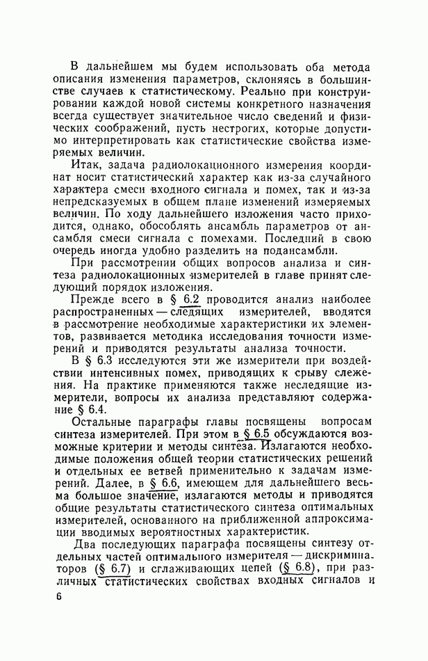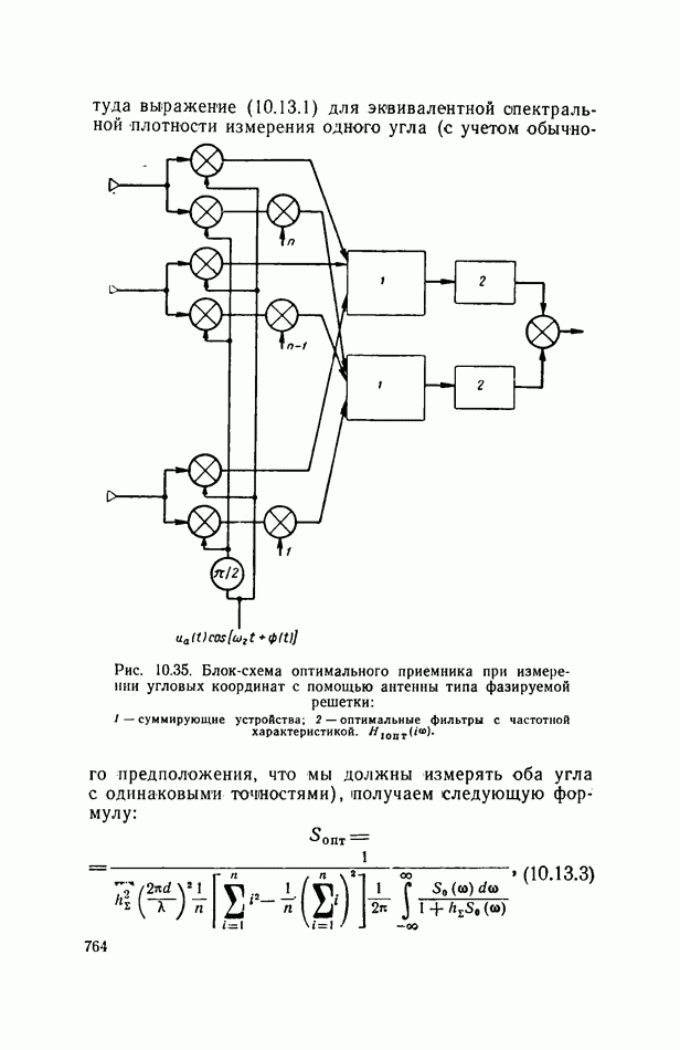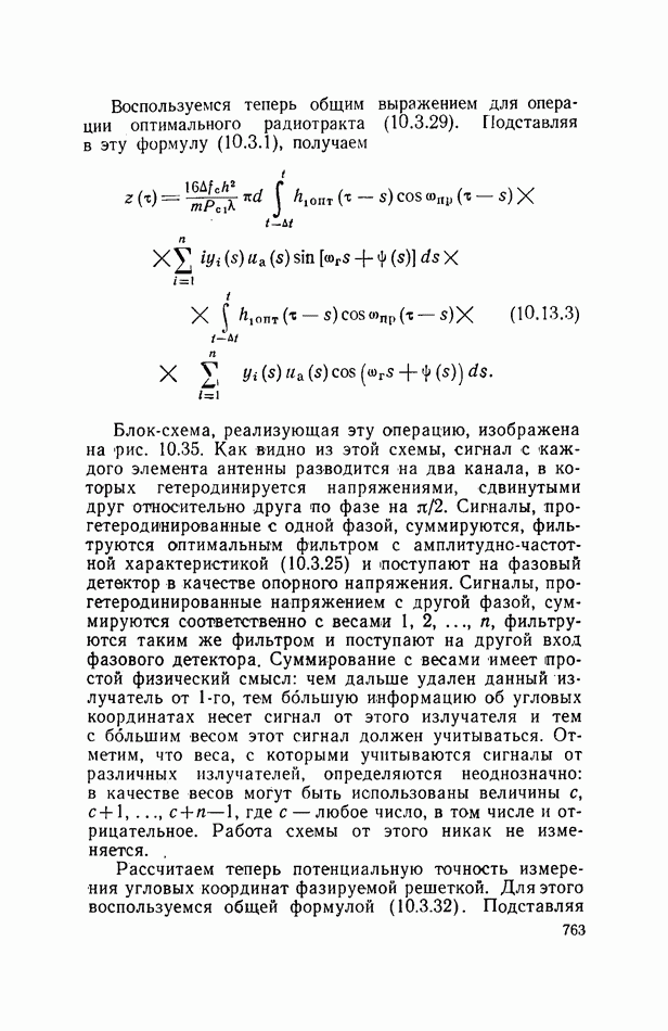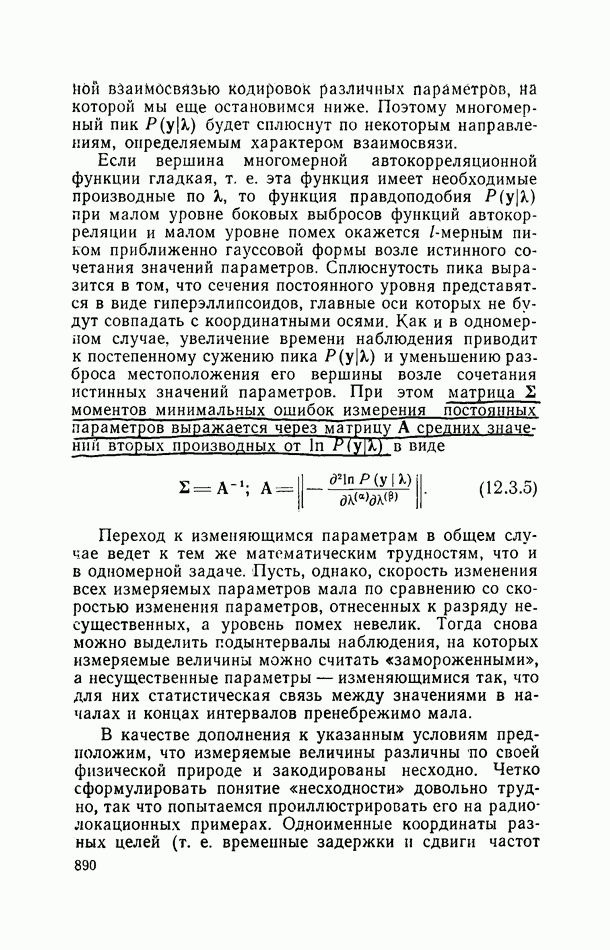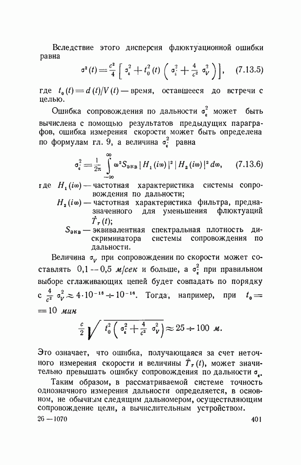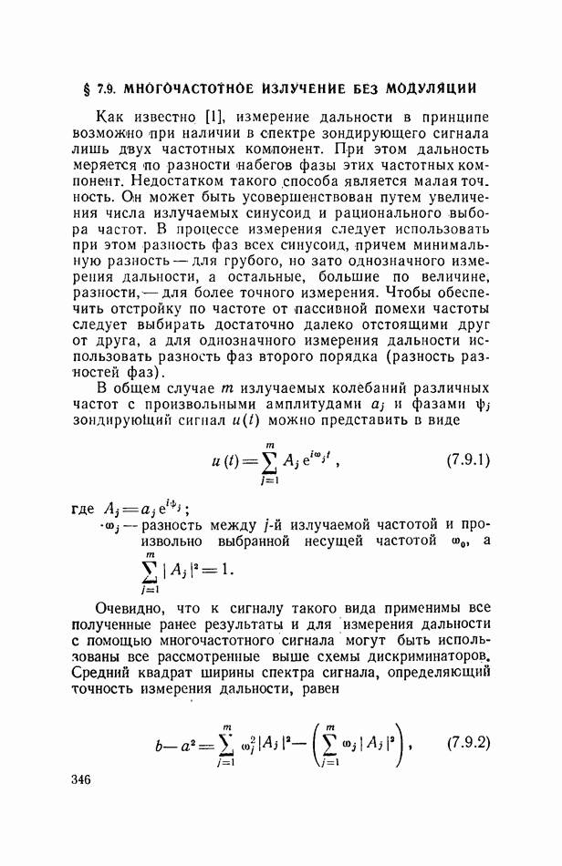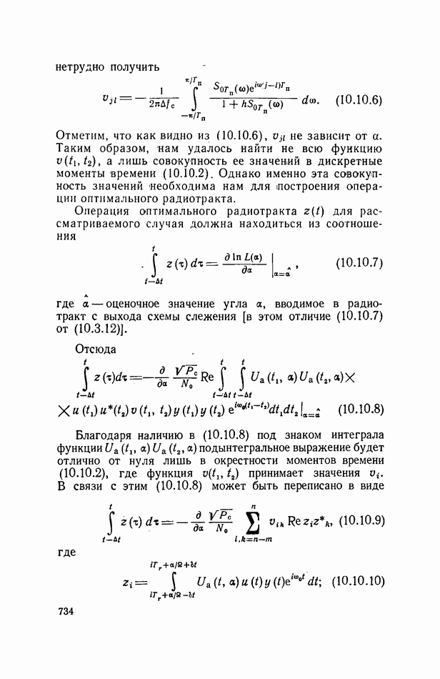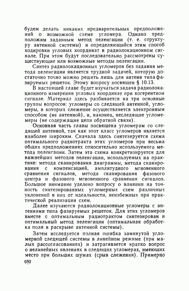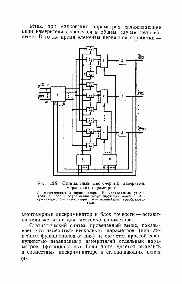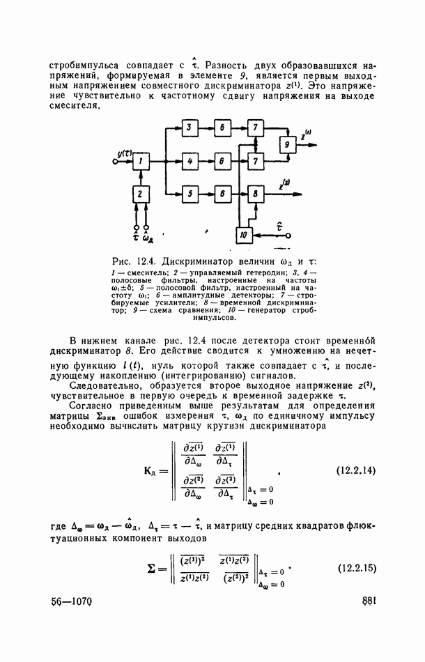 Если этот критерий применить для синтеза системы измерения координат в целом, то, как и в случае одной цели, при соблюдении некоторых не слишком ограничительных условий система разделится на две части. Первая из них — это дискриминатор в следящем варианте или блок оценки в неследящем варианте измерителя, т. е. система обработки высокочастотного сигнала, вырабатывающая текущую оценку измеряемого параметра (совокупности параметров)