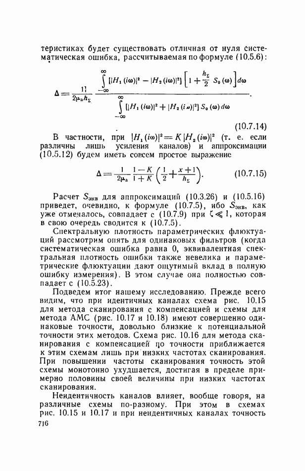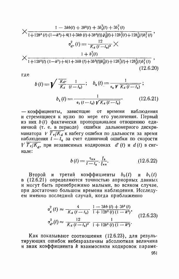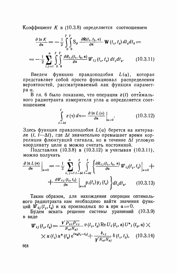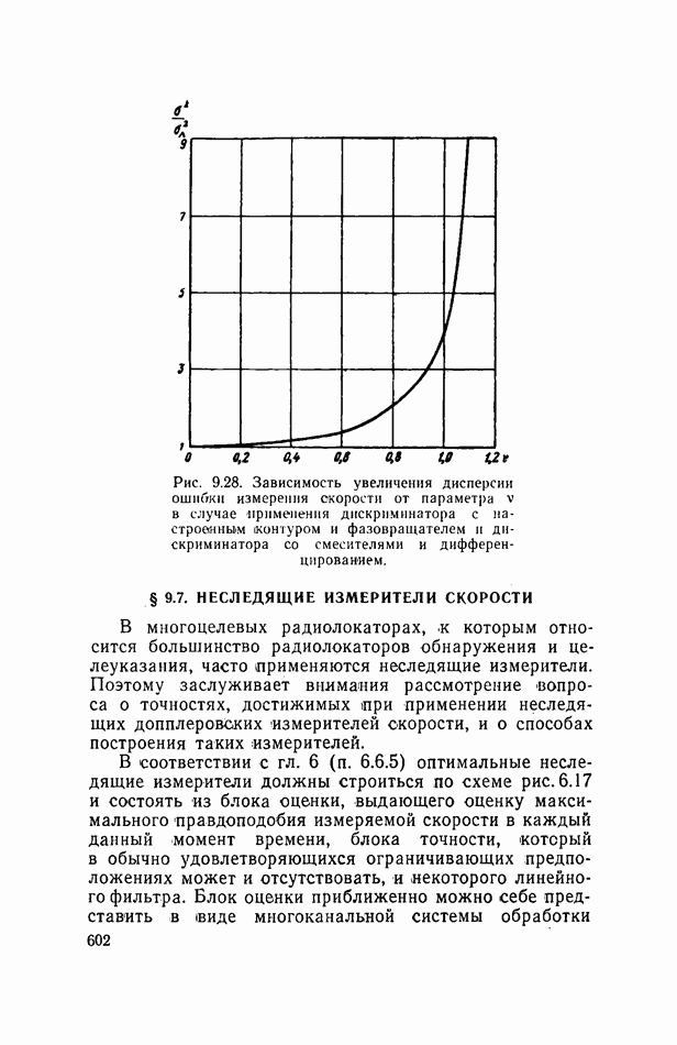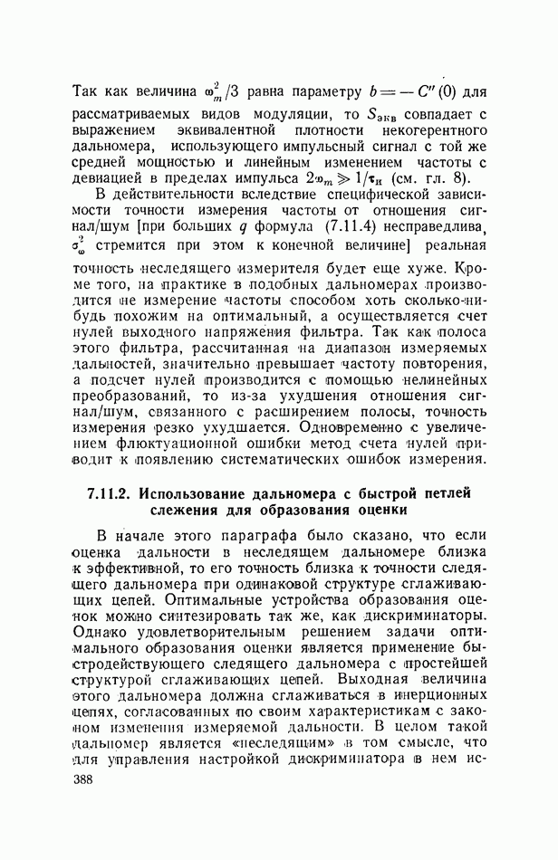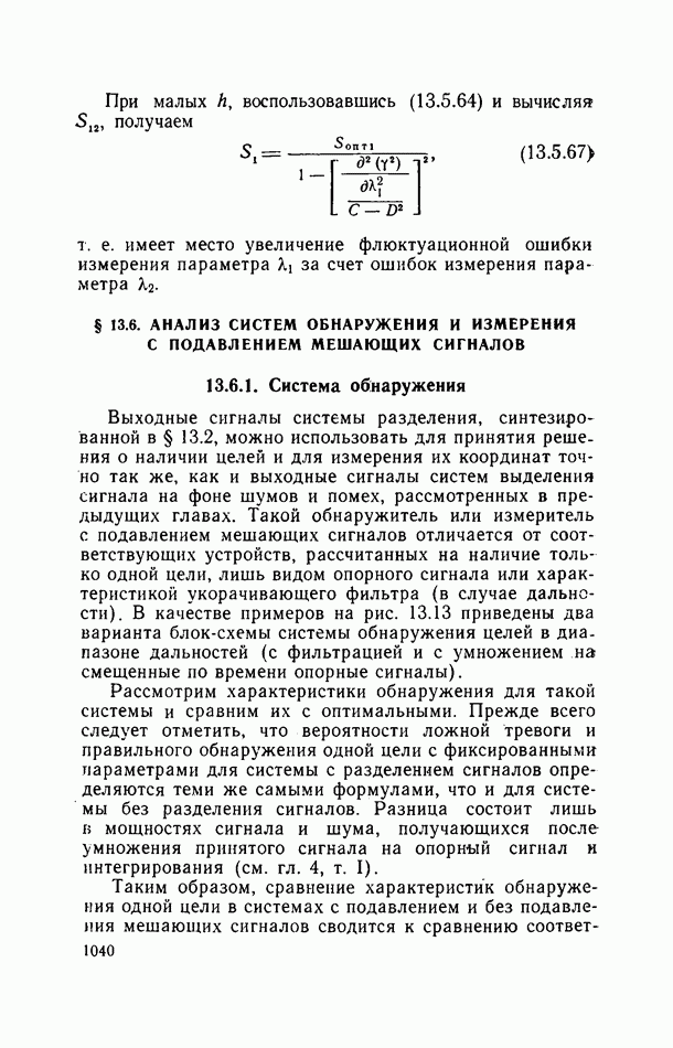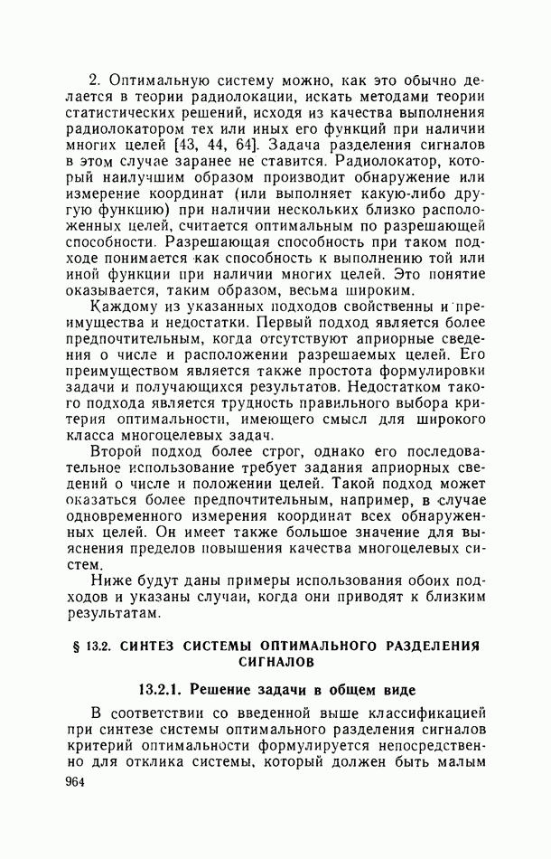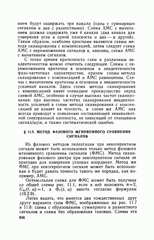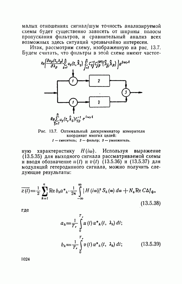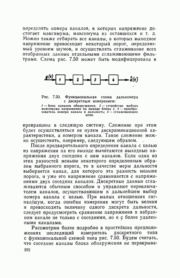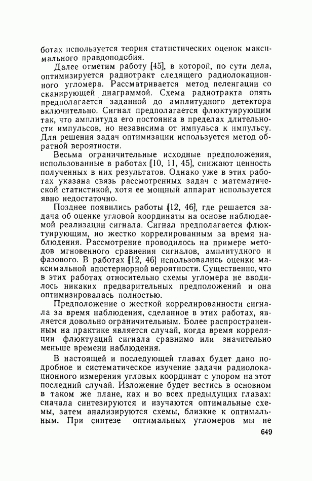 Если этот критерий применить для синтеза системы измерения координат в целом, то, как и в случае одной цели, при соблюдении некоторых не слишком ограничительных условий система разделится на две части. Первая из них — это дискриминатор в следящем варианте или блок оценки в неследящем варианте измерителя, т. е. система обработки высокочастотного сигнала, вырабатывающая текущую оценку измеряемого параметра (совокупности параметров)