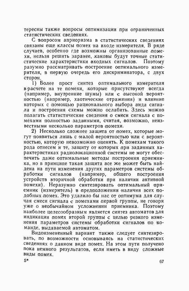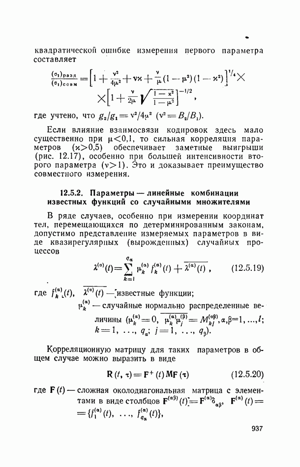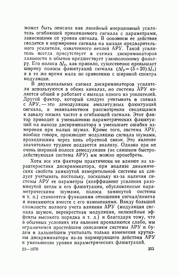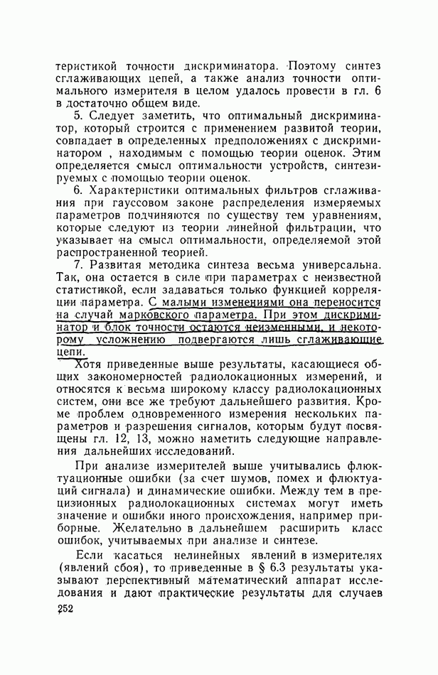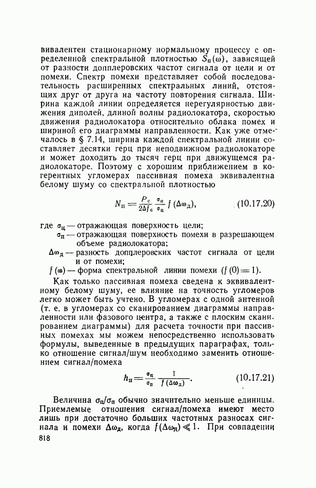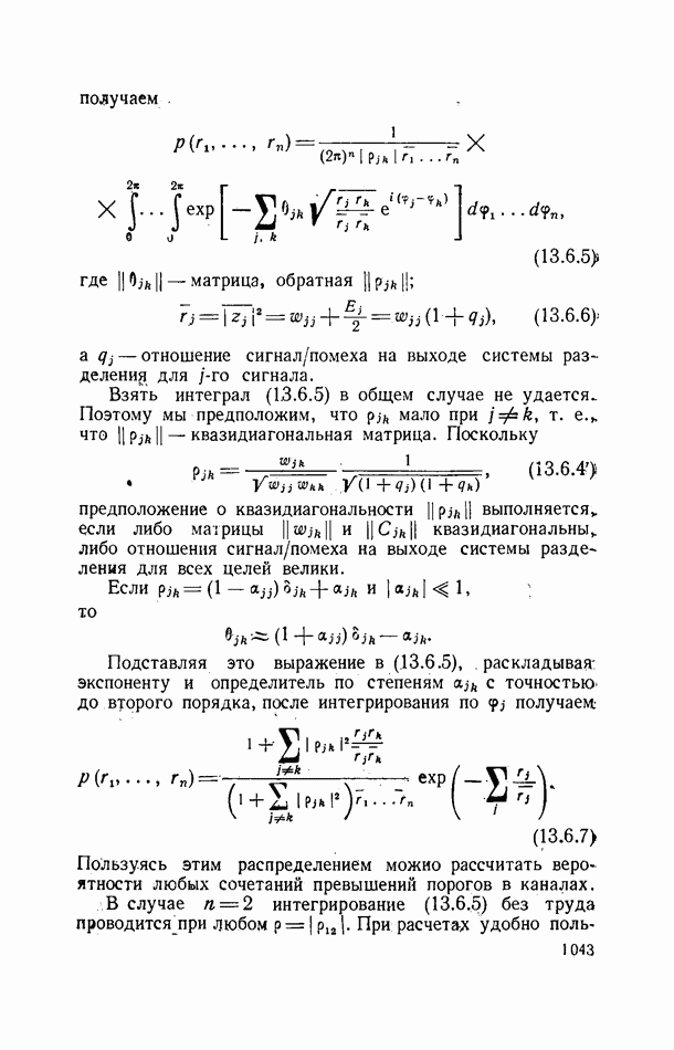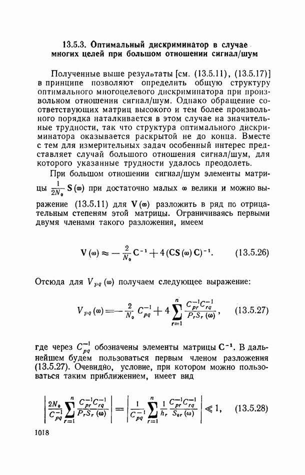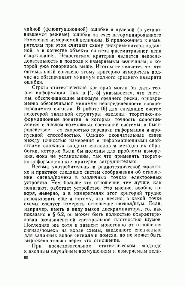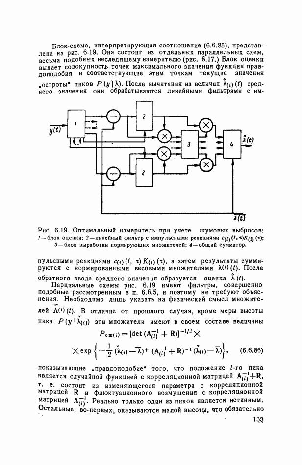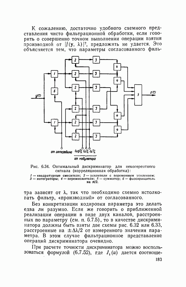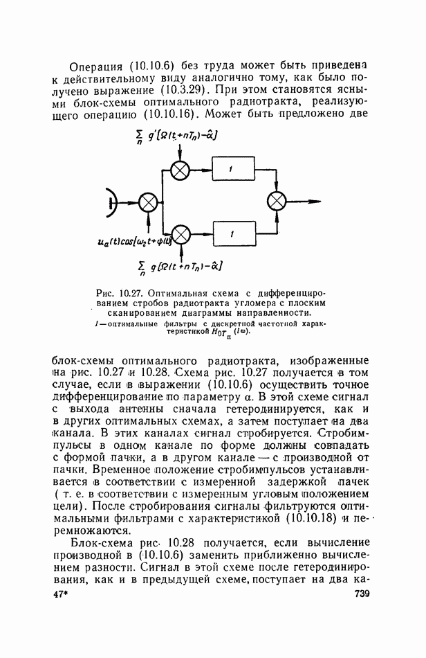 Если этот критерий применить для синтеза системы измерения координат в целом, то, как и в случае одной цели, при соблюдении некоторых не слишком ограничительных условий система разделится на две части. Первая из них — это дискриминатор в следящем варианте или блок оценки в неследящем варианте измерителя, т. е. система обработки высокочастотного сигнала, вырабатывающая текущую оценку измеряемого параметра (совокупности параметров)