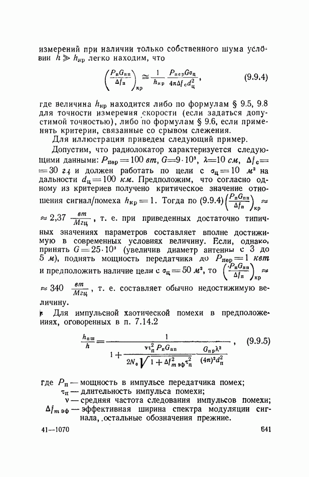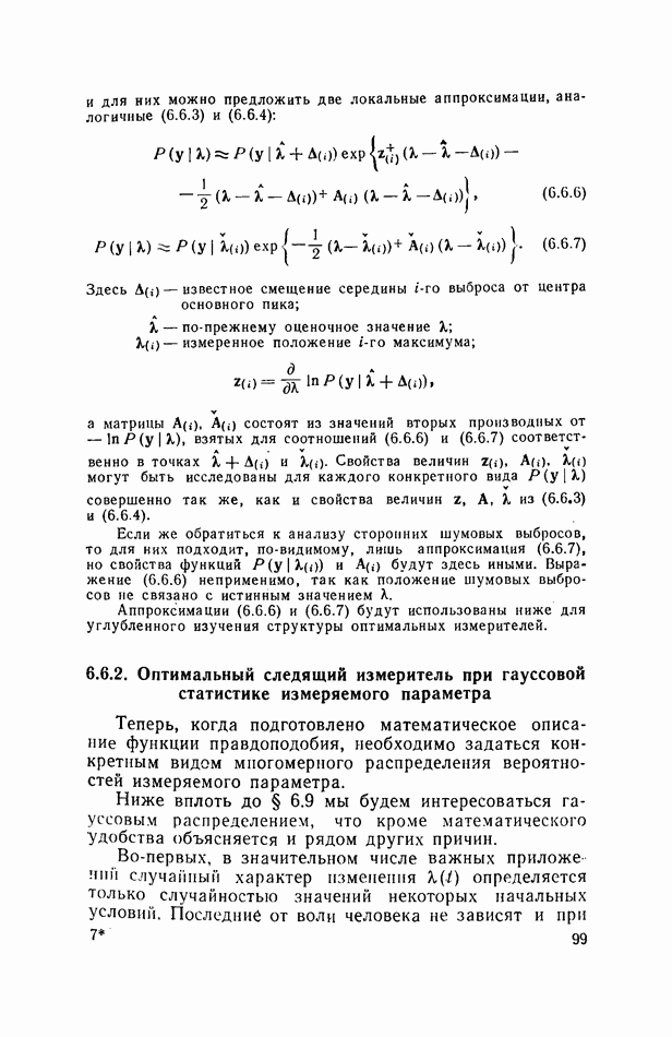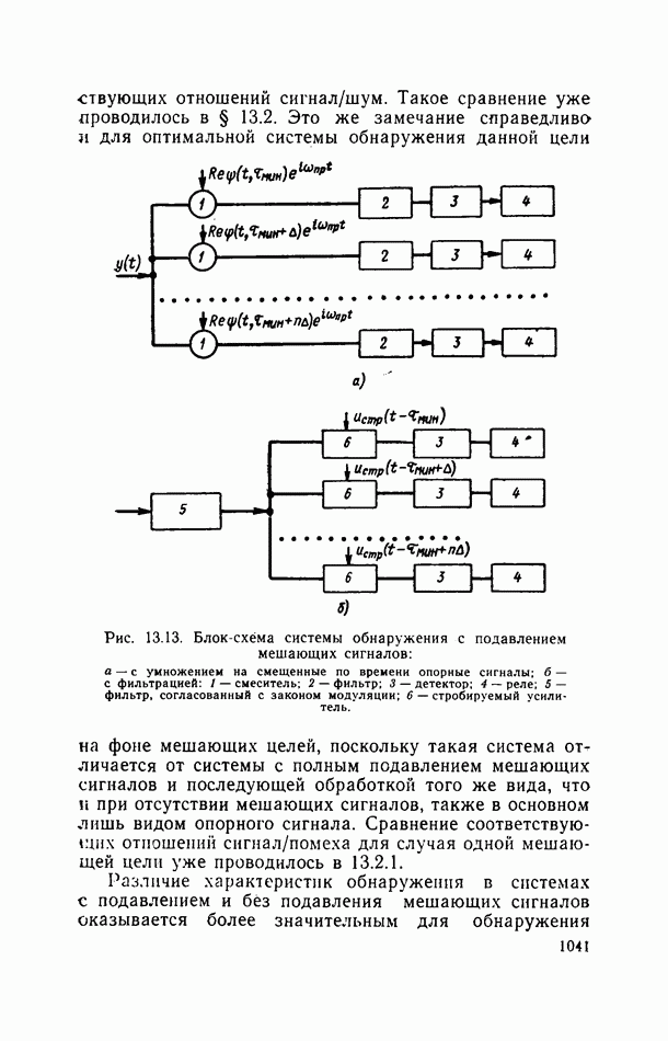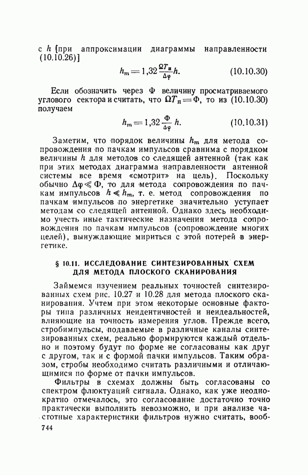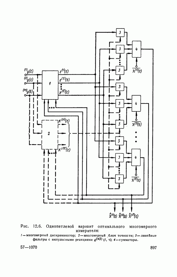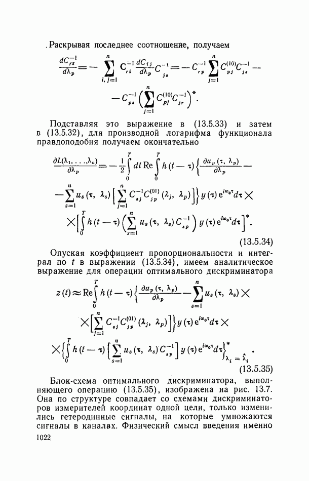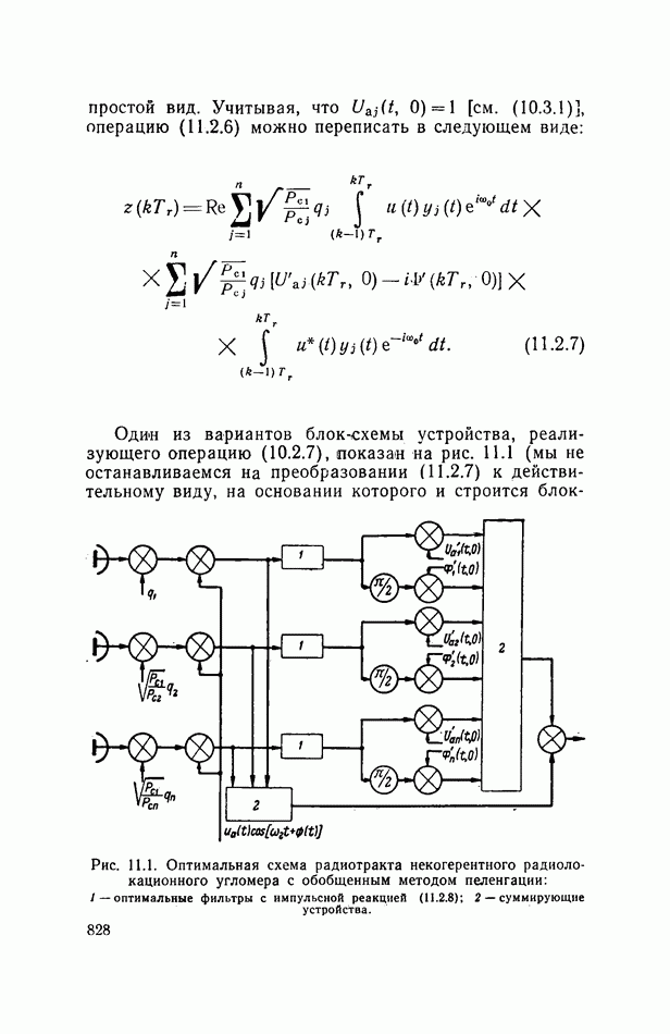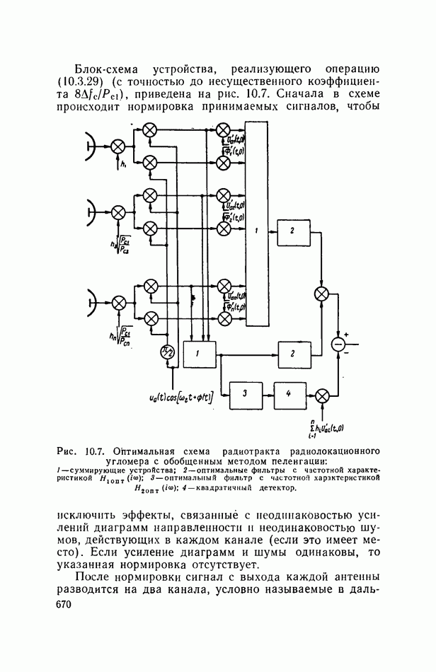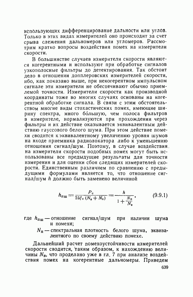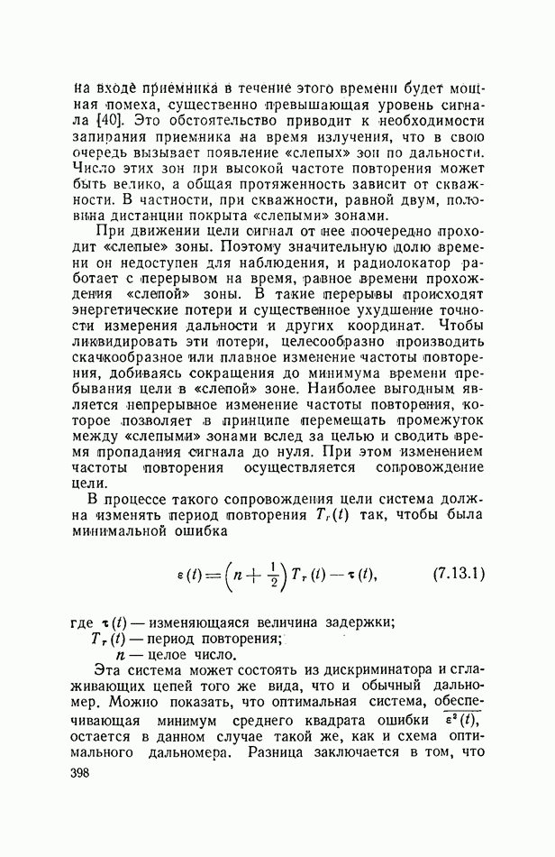 Если этот критерий применить для синтеза системы измерения координат в целом, то, как и в случае одной цели, при соблюдении некоторых не слишком ограничительных условий система разделится на две части. Первая из них — это дискриминатор в следящем варианте или блок оценки в неследящем варианте измерителя, т. е. система обработки высокочастотного сигнала, вырабатывающая текущую оценку измеряемого параметра (совокупности параметров)