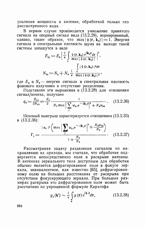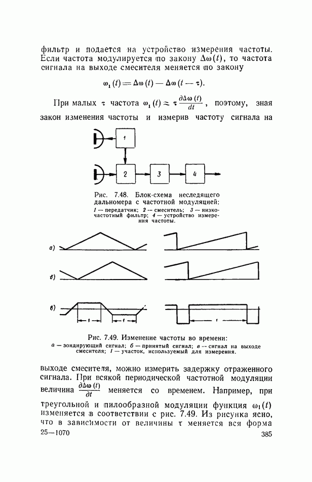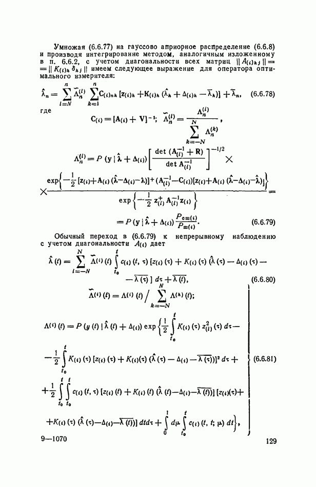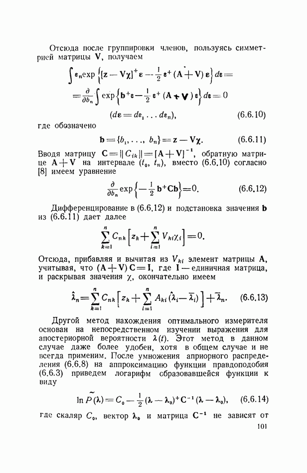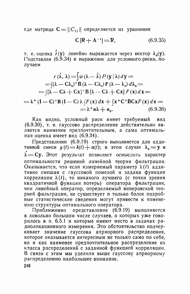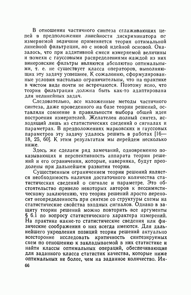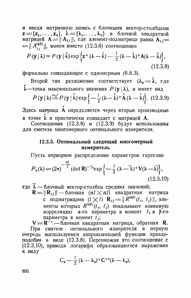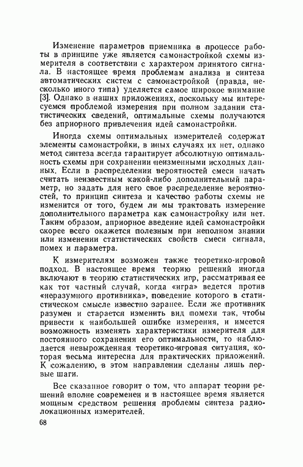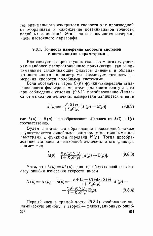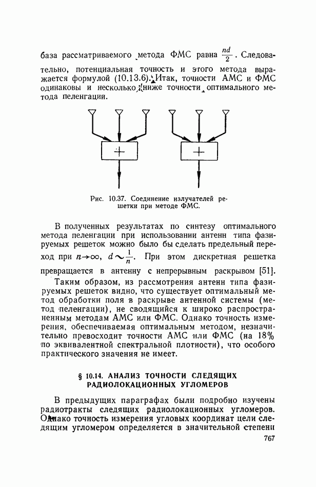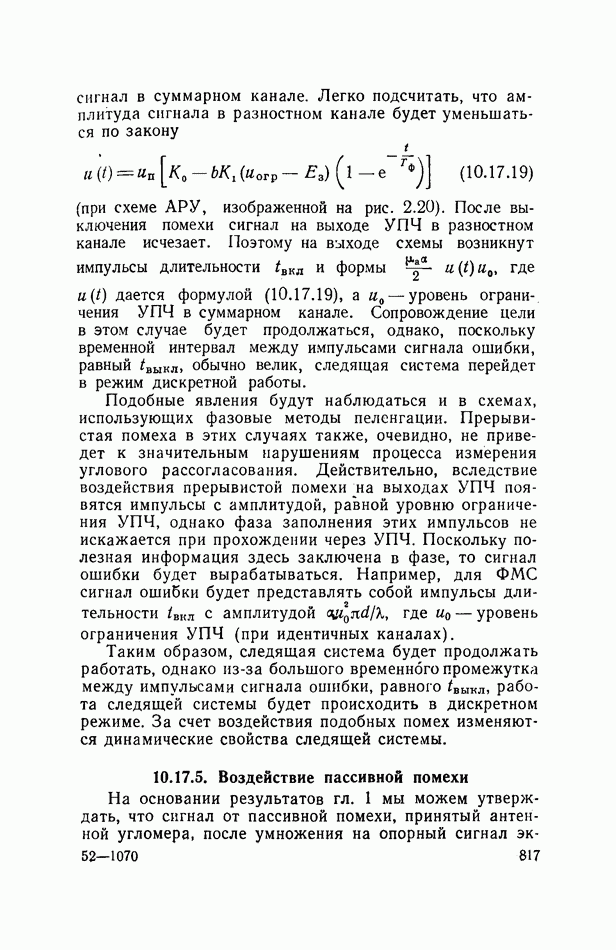 Если этот критерий применить для синтеза системы измерения координат в целом, то, как и в случае одной цели, при соблюдении некоторых не слишком ограничительных условий система разделится на две части. Первая из них — это дискриминатор в следящем варианте или блок оценки в неследящем варианте измерителя, т. е. система обработки высокочастотного сигнала, вырабатывающая текущую оценку измеряемого параметра (совокупности параметров)