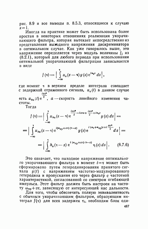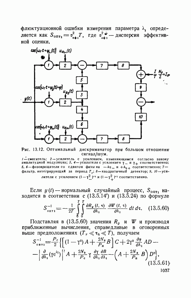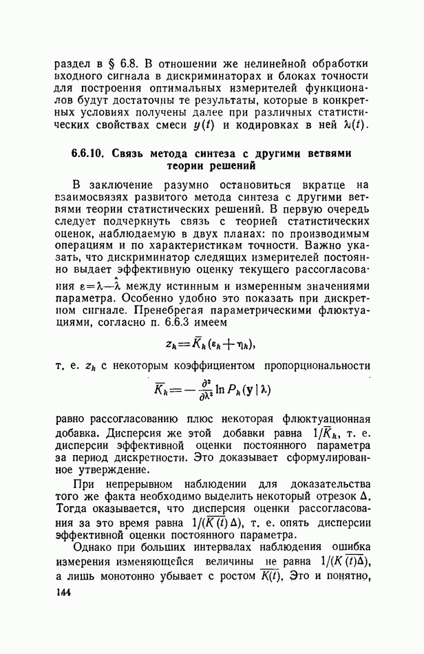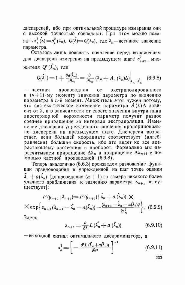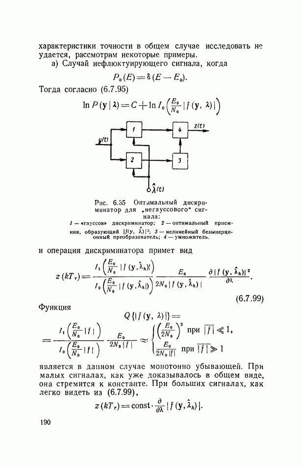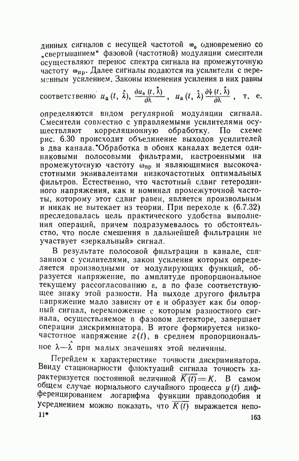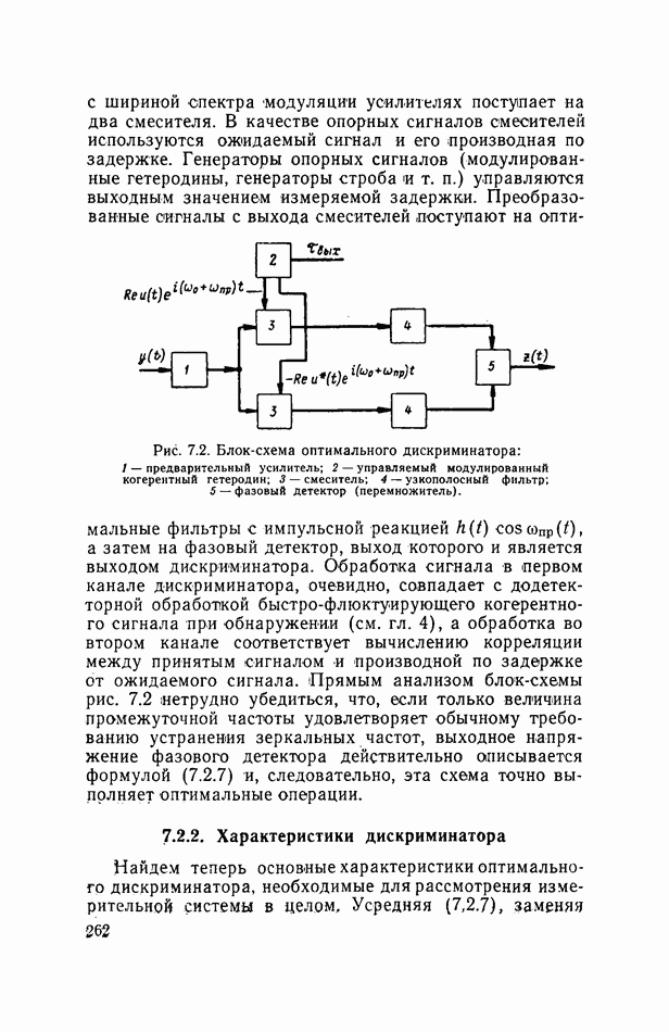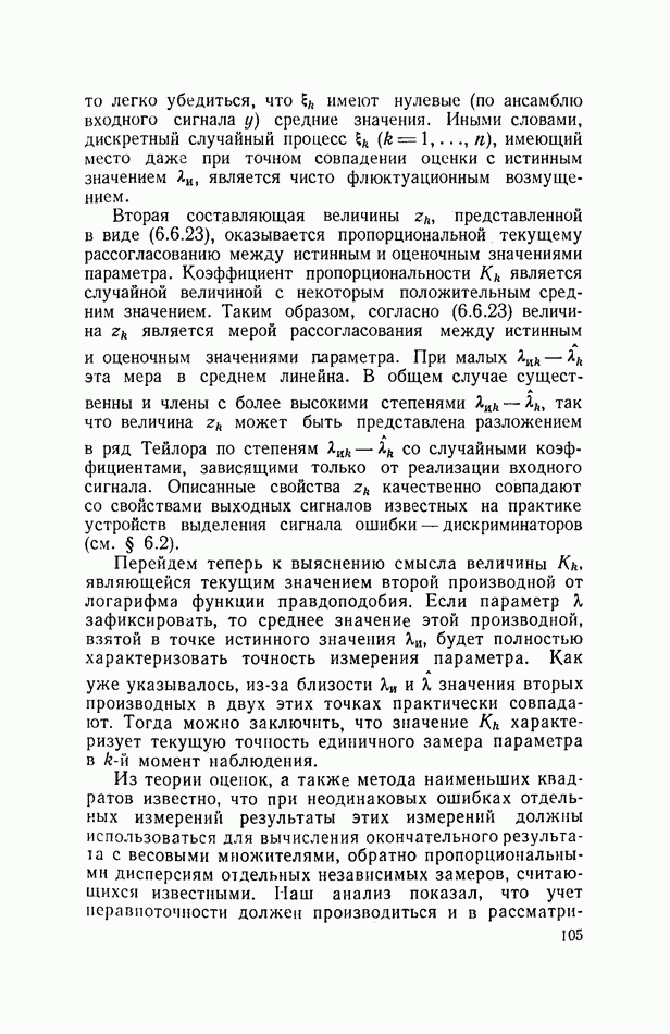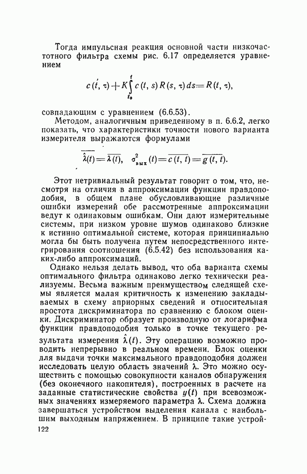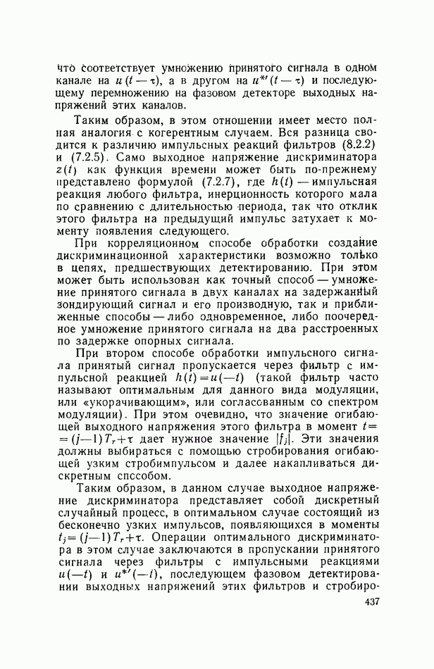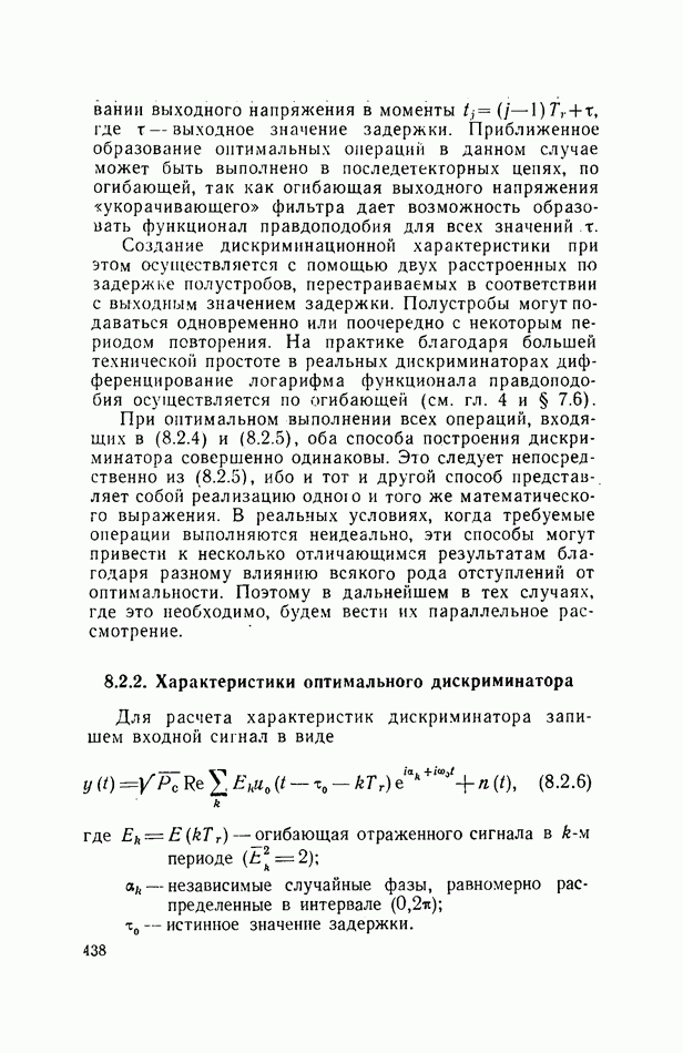 Предварительно отметим, что в соответствии со сформулированным критерием оптимальный дискриминатор должен выполнять такие операции над принятым сигналом, которые соответствуют образованию текущей эффективной оценки измеряемой величины X, ибо в понятие эффективности входит и отсутствие смещения и минимум дисперсии оценки. Практически, учитывая приближенность выполнения оптимальных операций, достаточно потребовать асимптотической эффективности оценки.