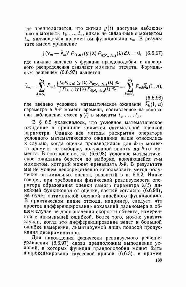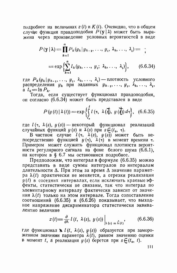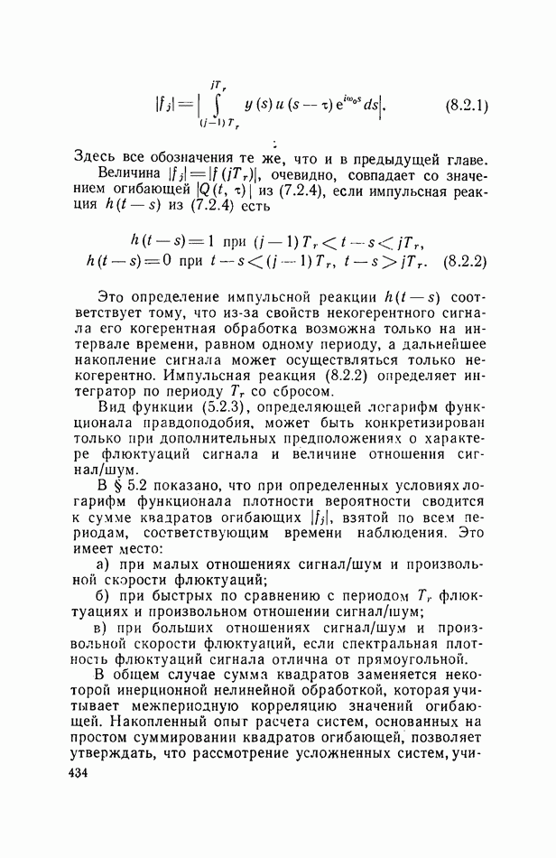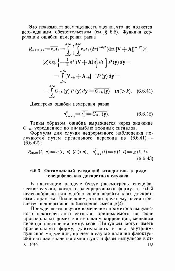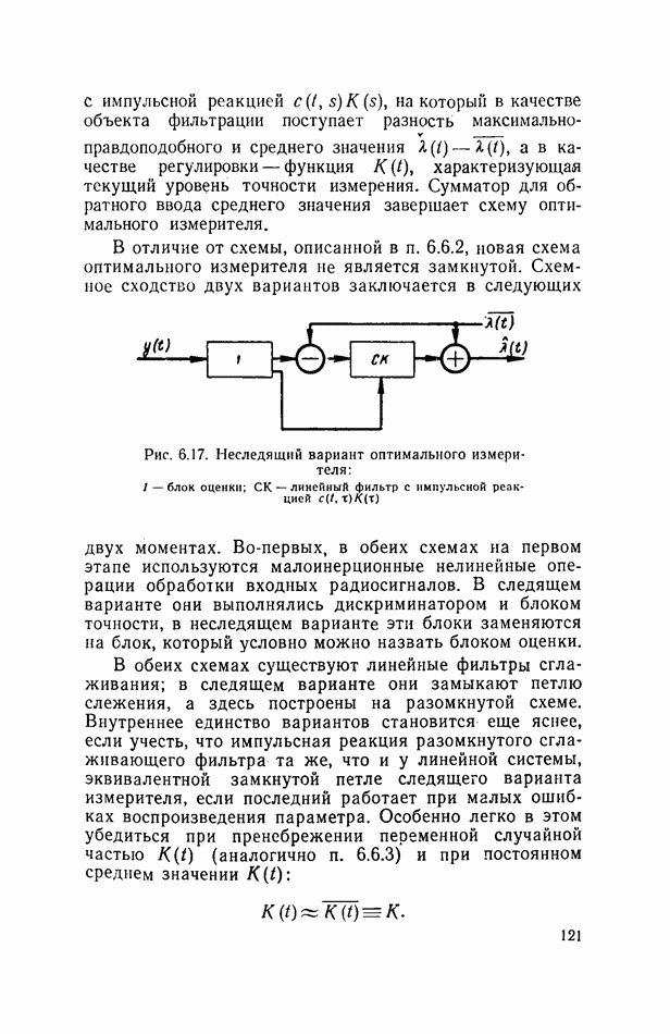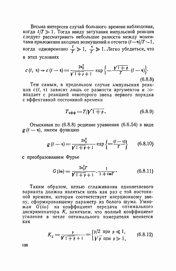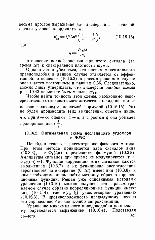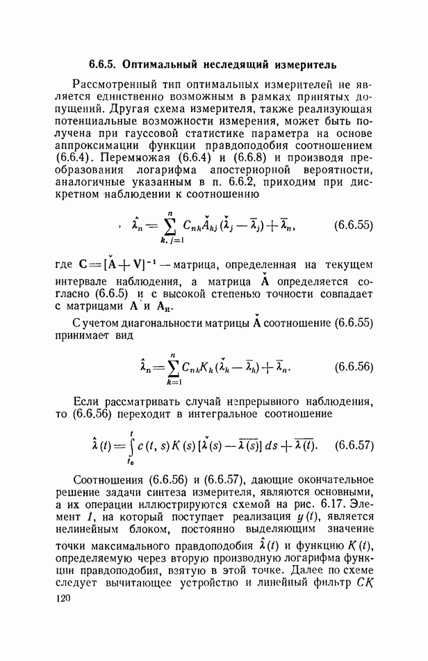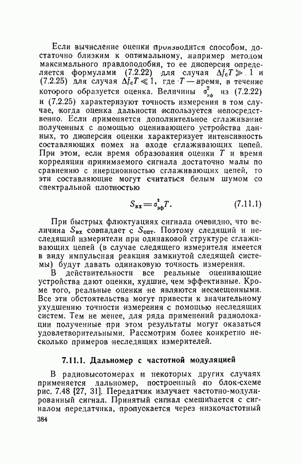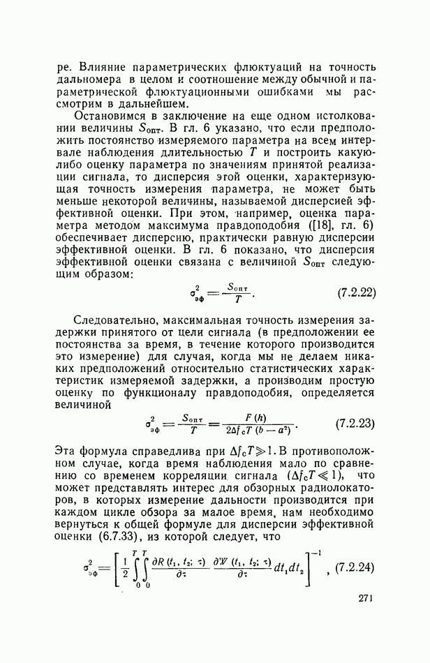 Предварительно отметим, что в соответствии со сформулированным критерием оптимальный дискриминатор должен выполнять такие операции над принятым сигналом, которые соответствуют образованию текущей эффективной оценки измеряемой величины X, ибо в понятие эффективности входит и отсутствие смещения и минимум дисперсии оценки. Практически, учитывая приближенность выполнения оптимальных операций, достаточно потребовать асимптотической эффективности оценки.