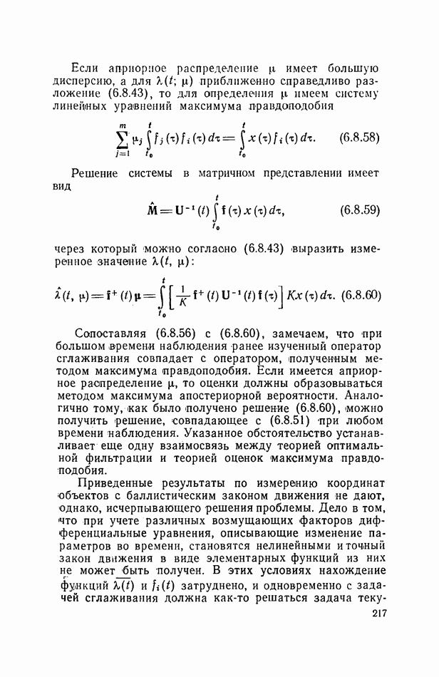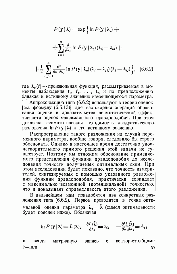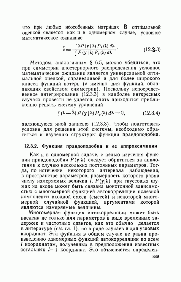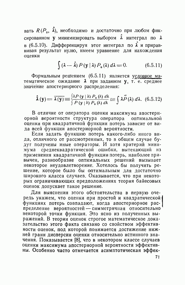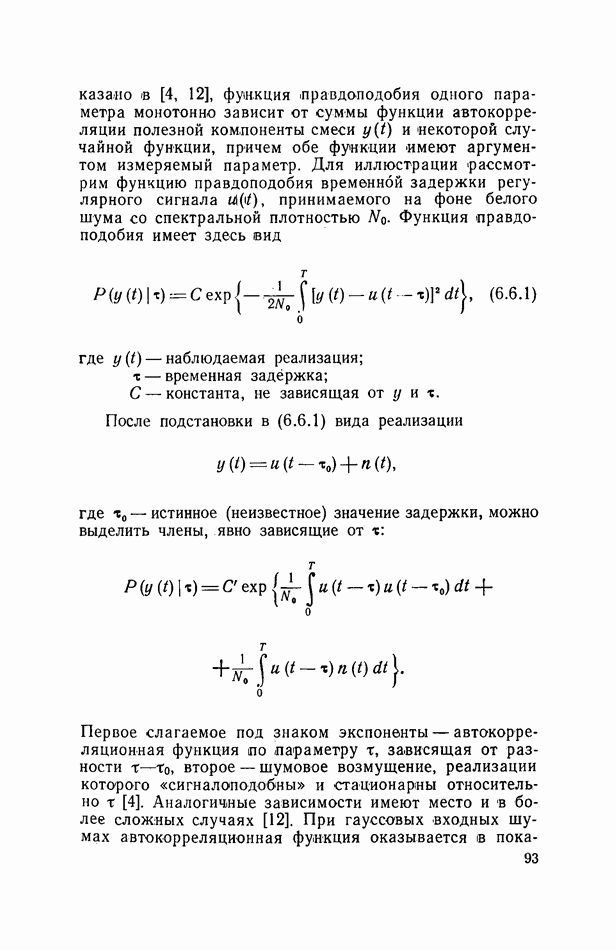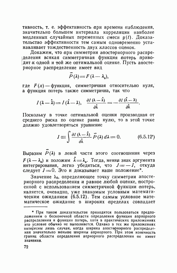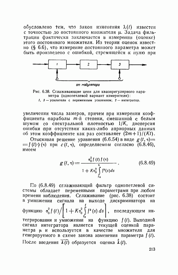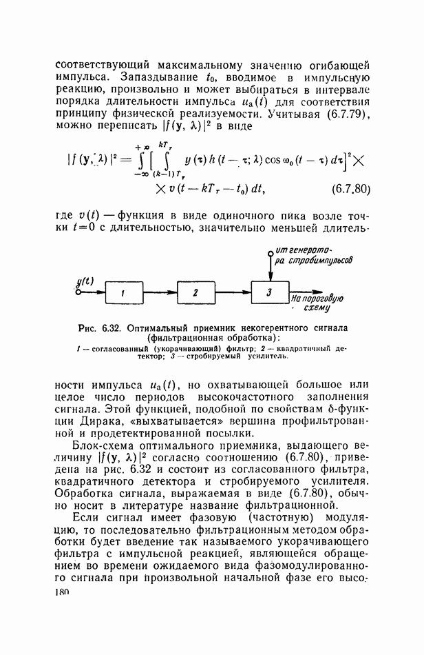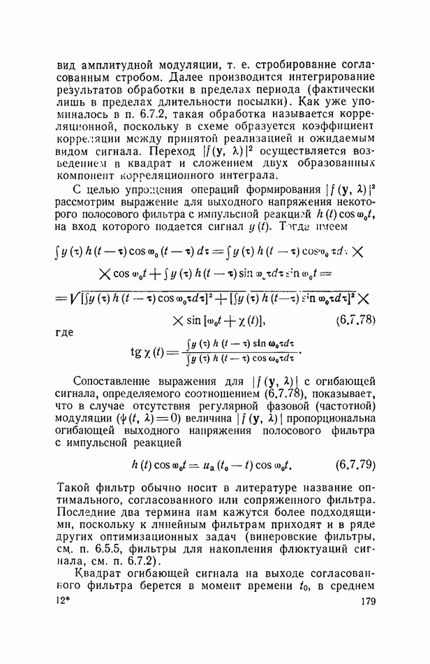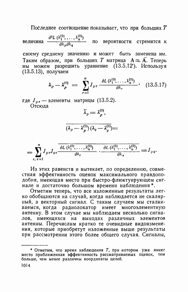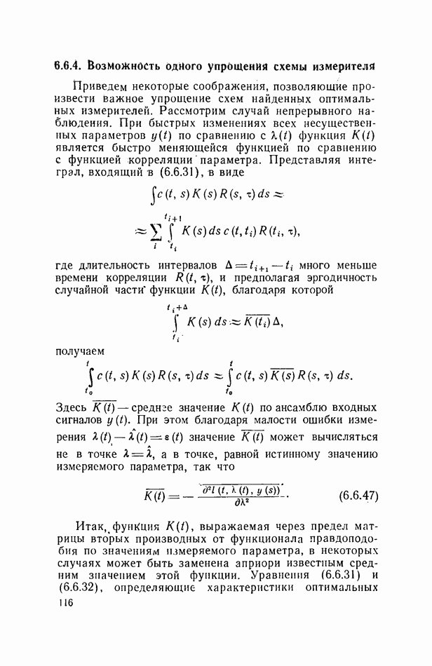 Предварительно отметим, что в соответствии со сформулированным критерием оптимальный дискриминатор должен выполнять такие операции над принятым сигналом, которые соответствуют образованию текущей эффективной оценки измеряемой величины X, ибо в понятие эффективности входит и отсутствие смещения и минимум дисперсии оценки. Практически, учитывая приближенность выполнения оптимальных операций, достаточно потребовать асимптотической эффективности оценки.
