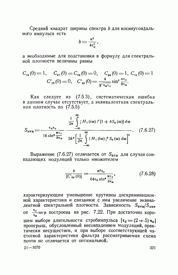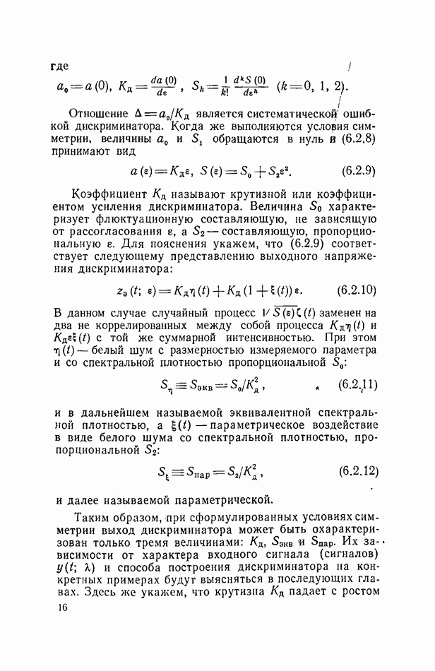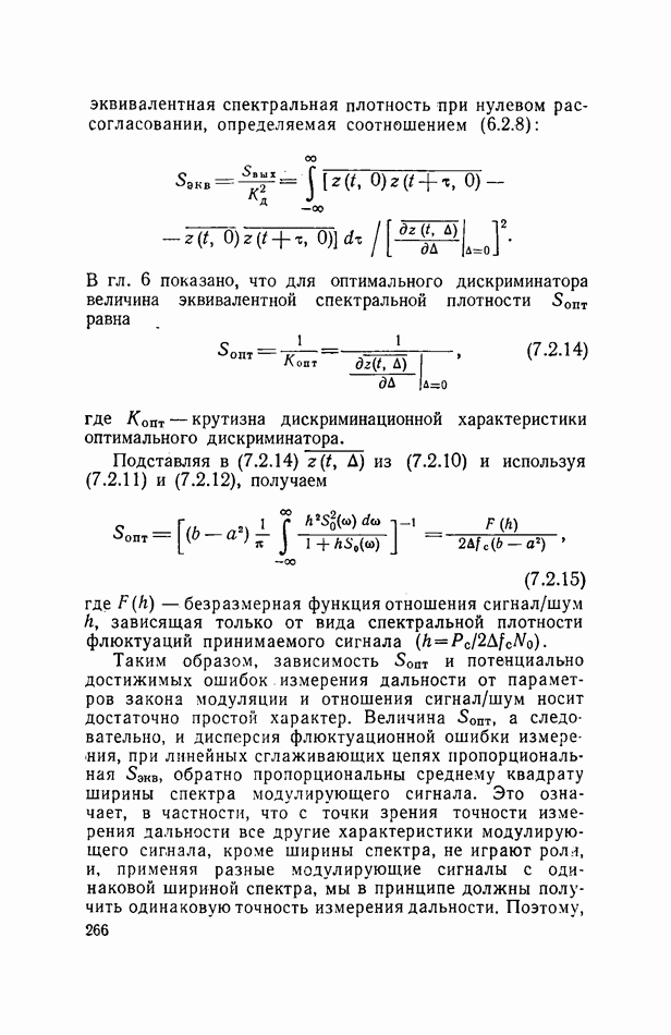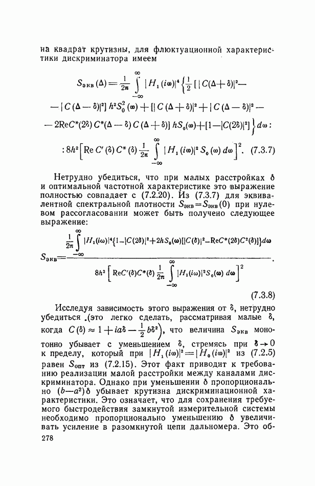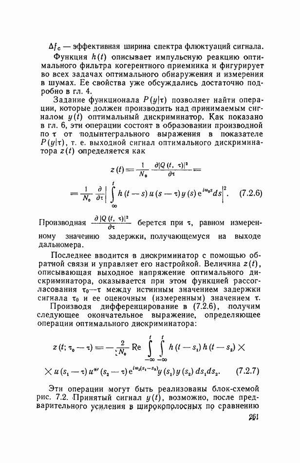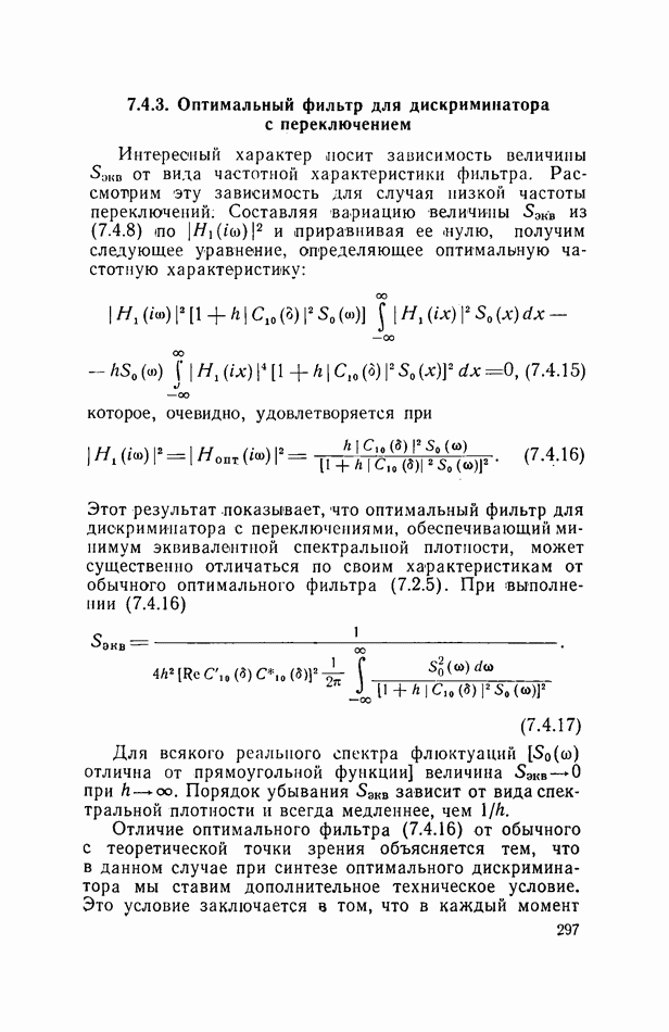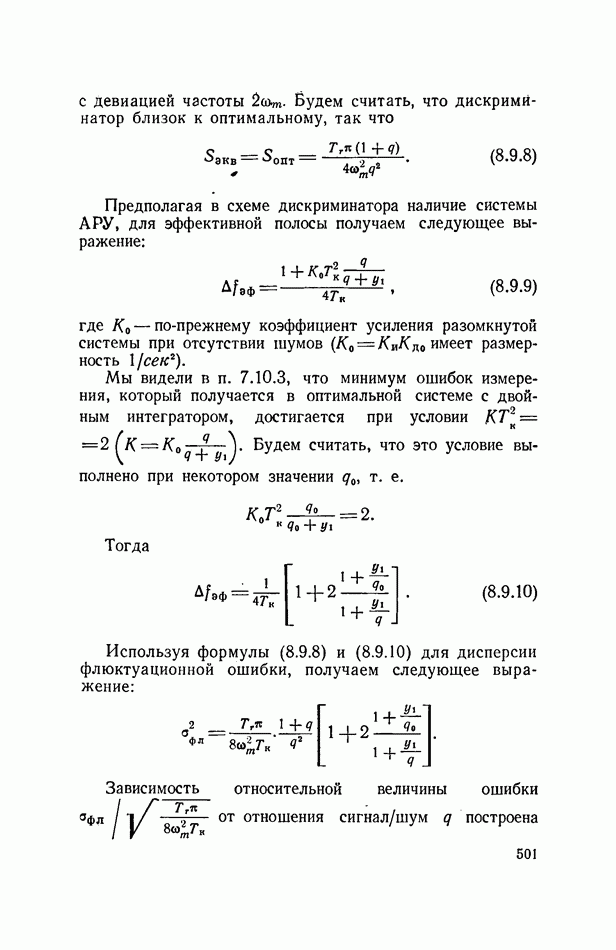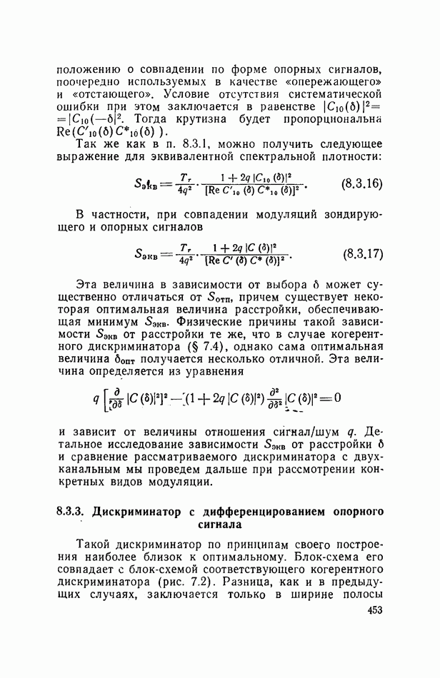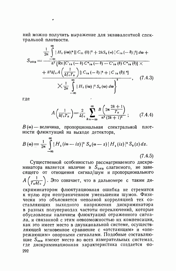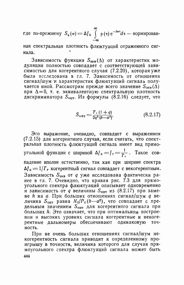 Свойства же оптимального дискриминатора определяются известной формулой для спектральной плотности, соответствующей дисперсии эффективной оценки