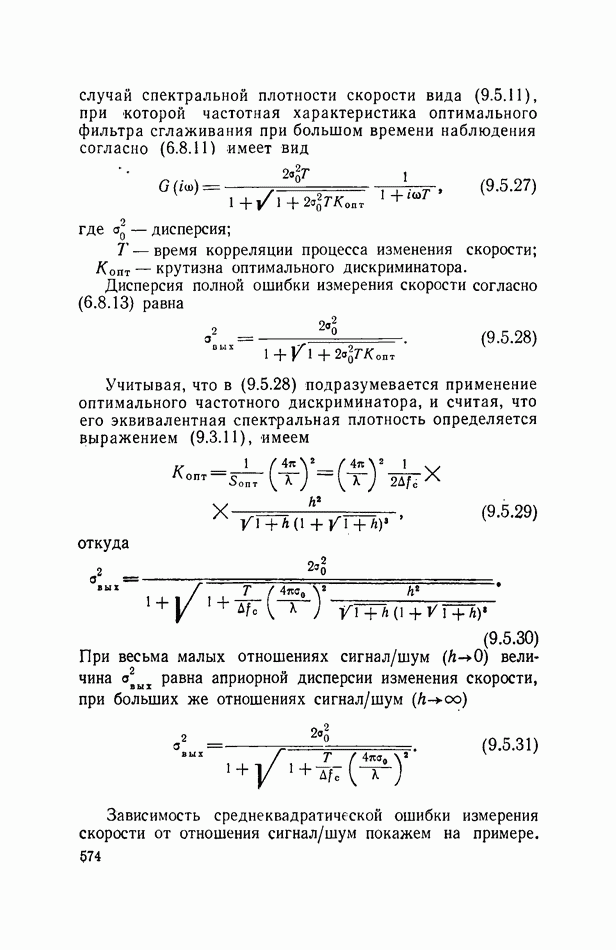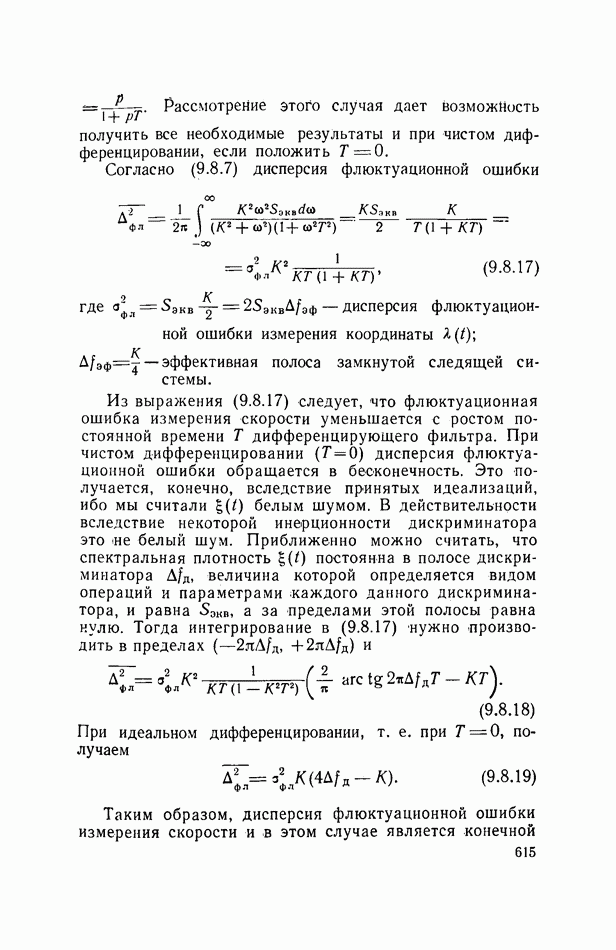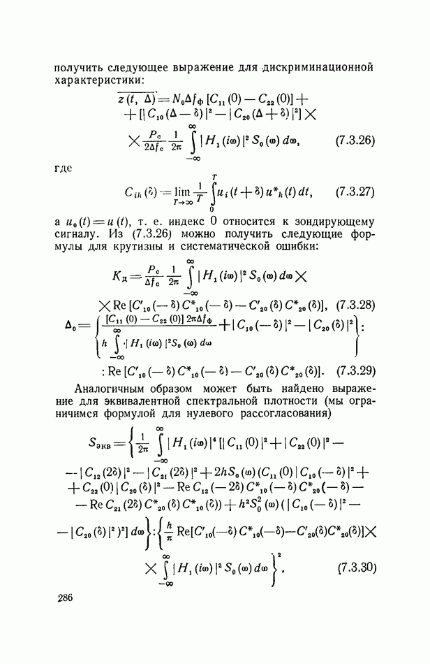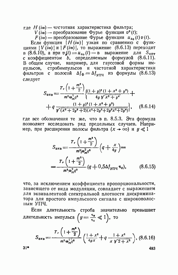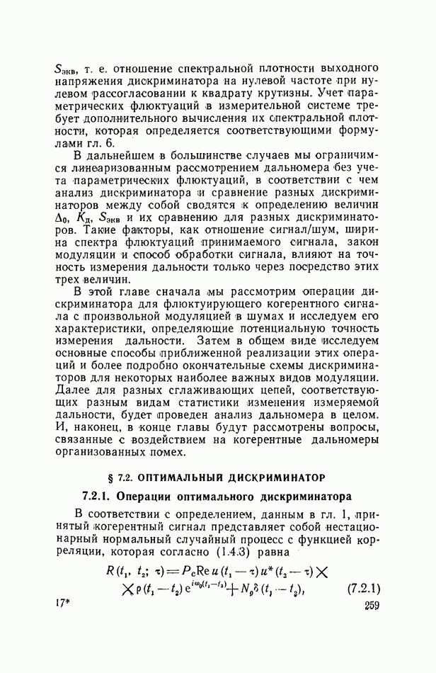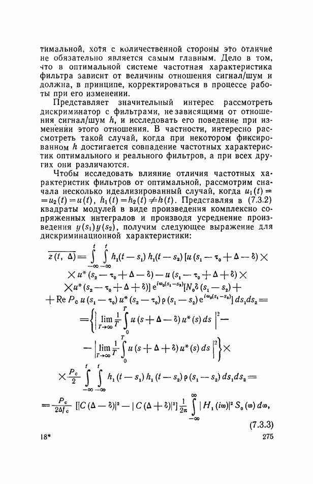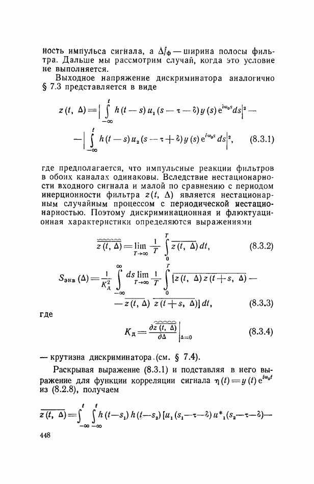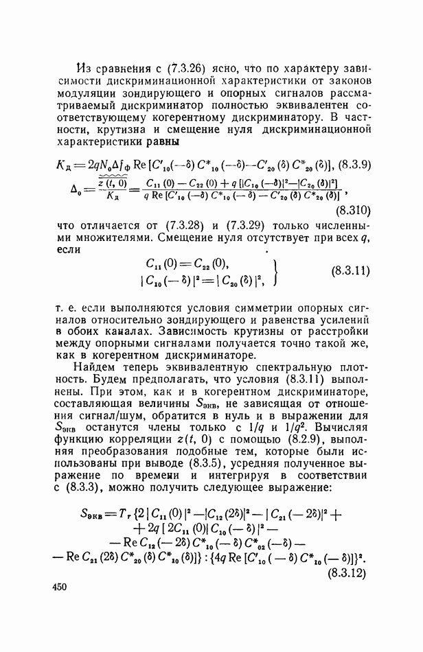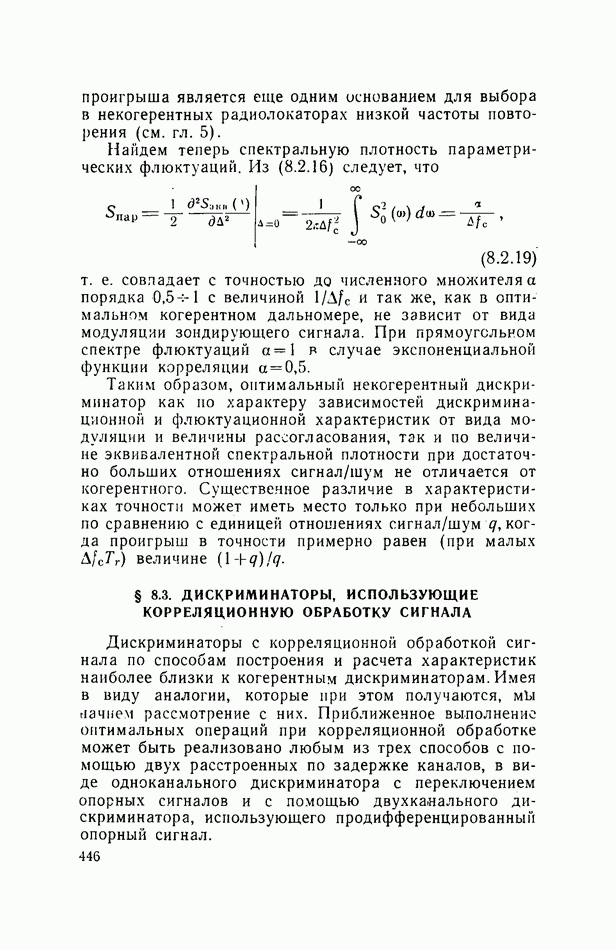 Свойства же оптимального дискриминатора определяются известной формулой для спектральной плотности, соответствующей дисперсии эффективной оценки