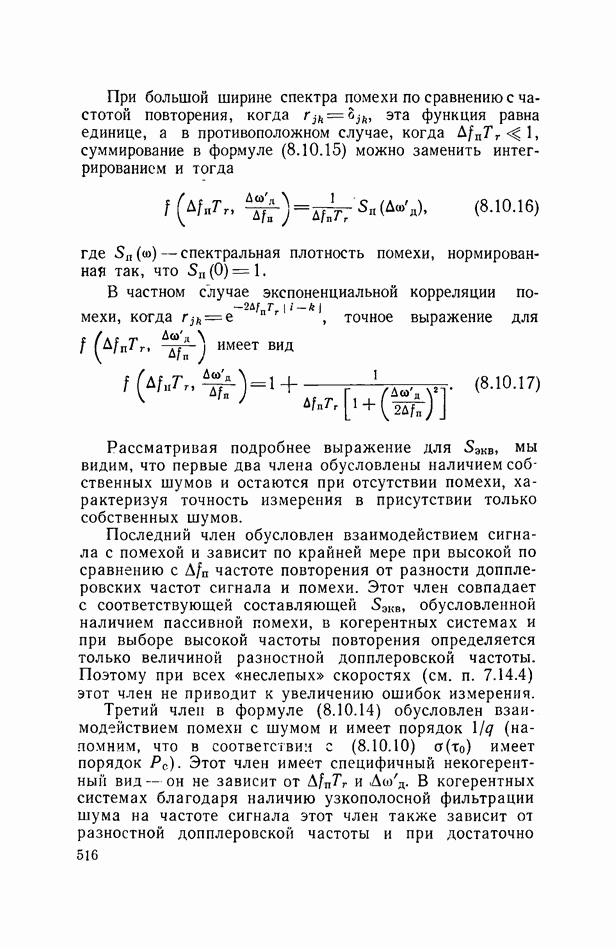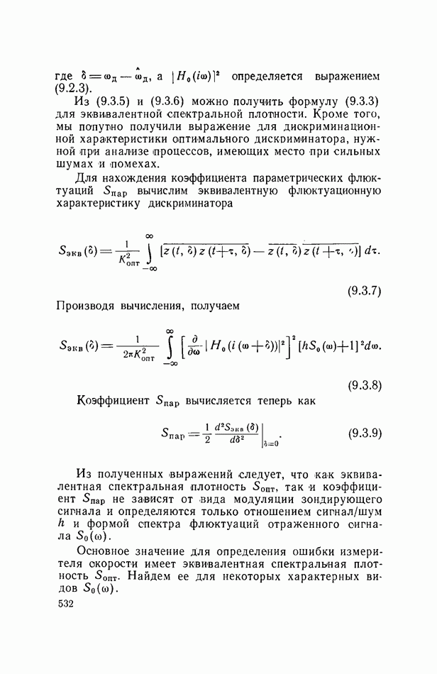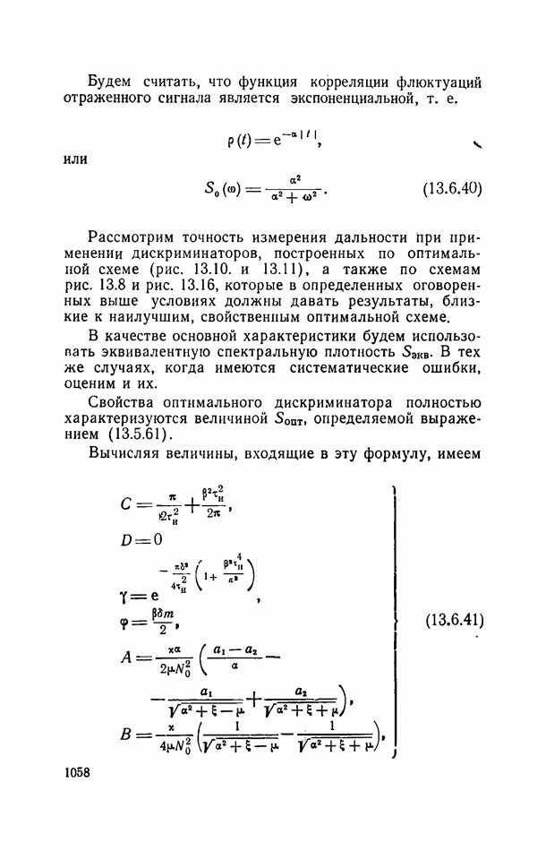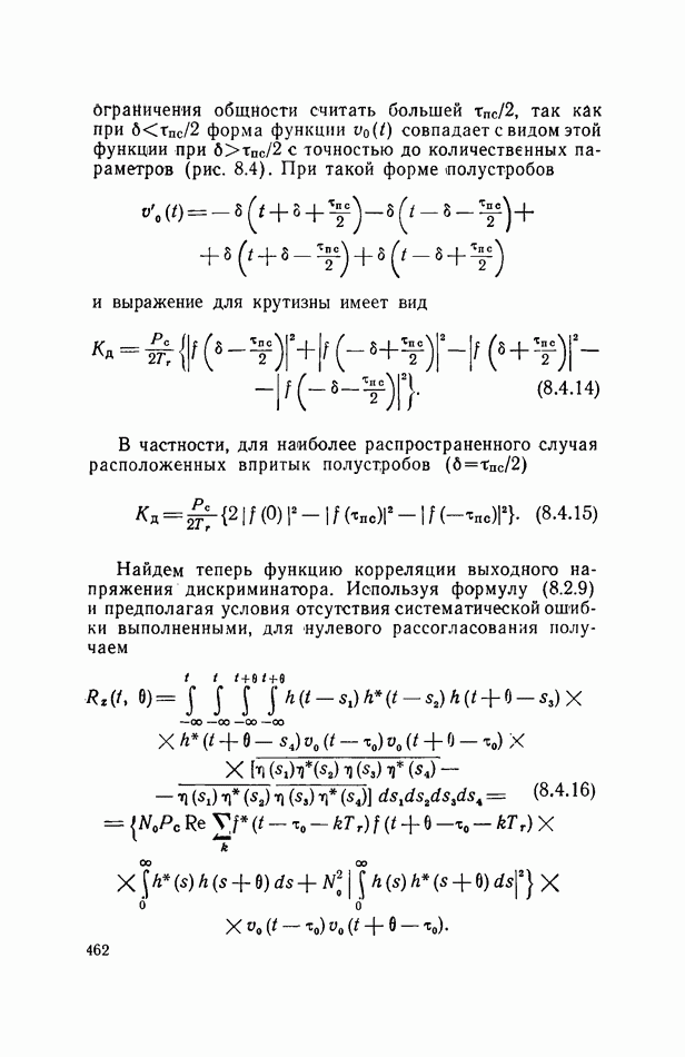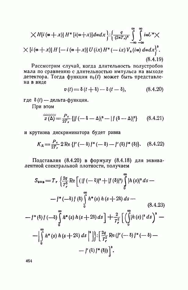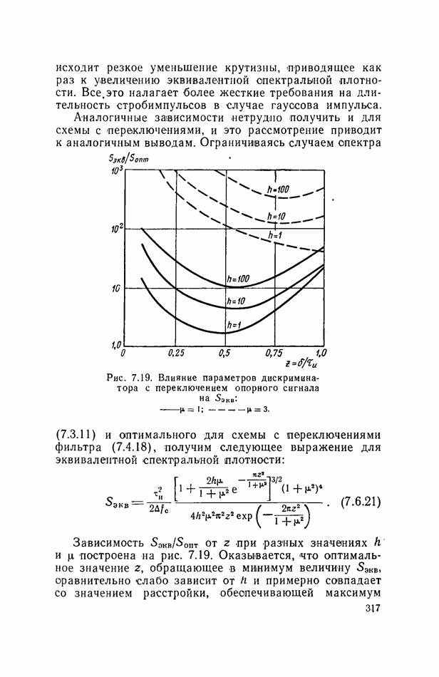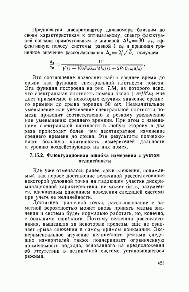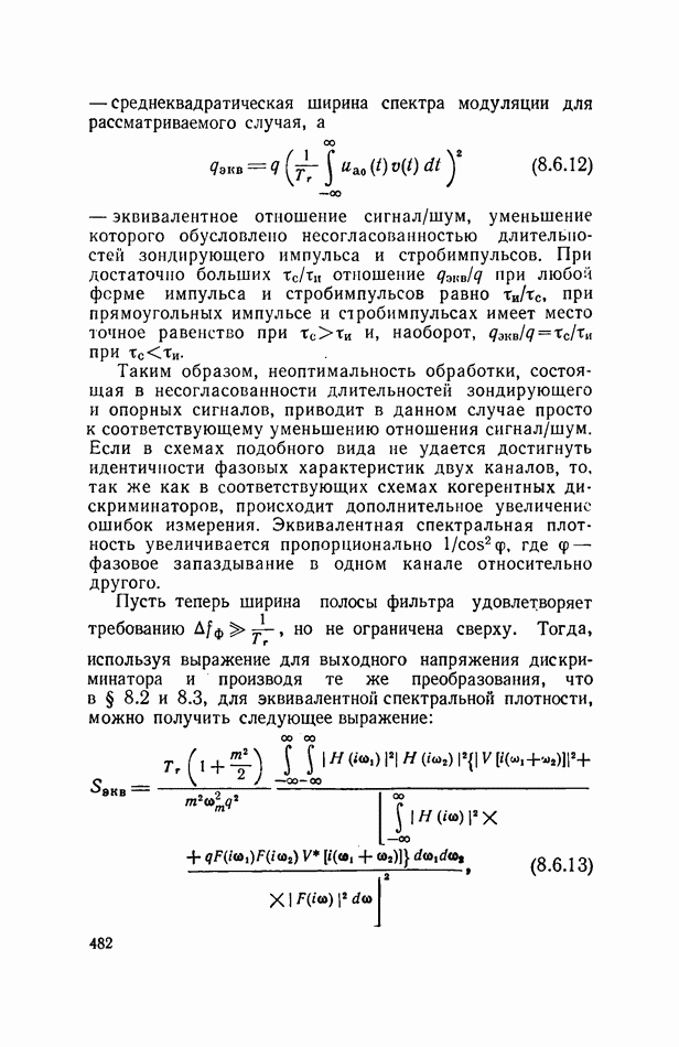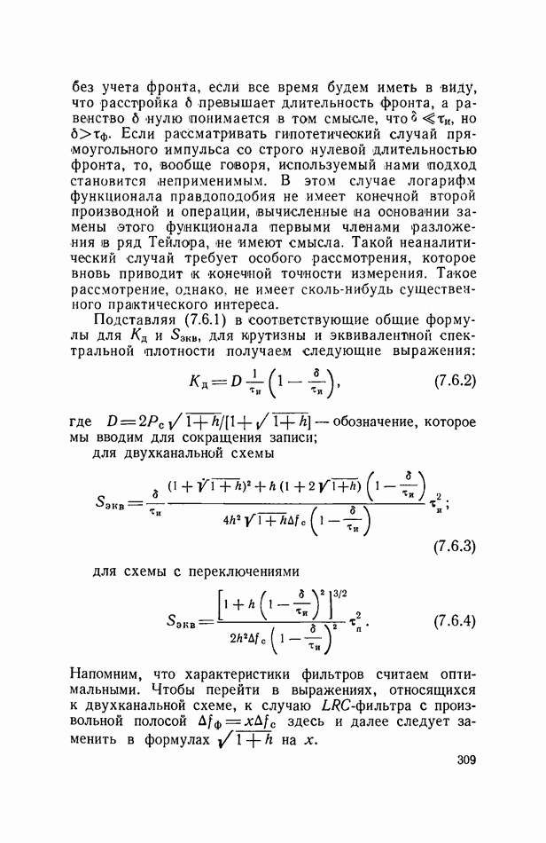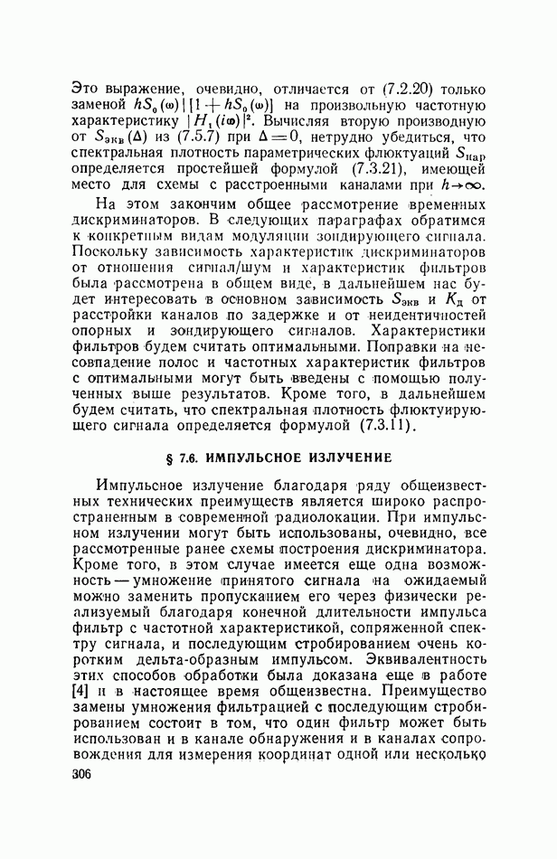 Свойства же оптимального дискриминатора определяются известной формулой для спектральной плотности, соответствующей дисперсии эффективной оценки