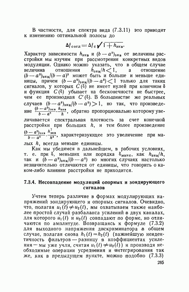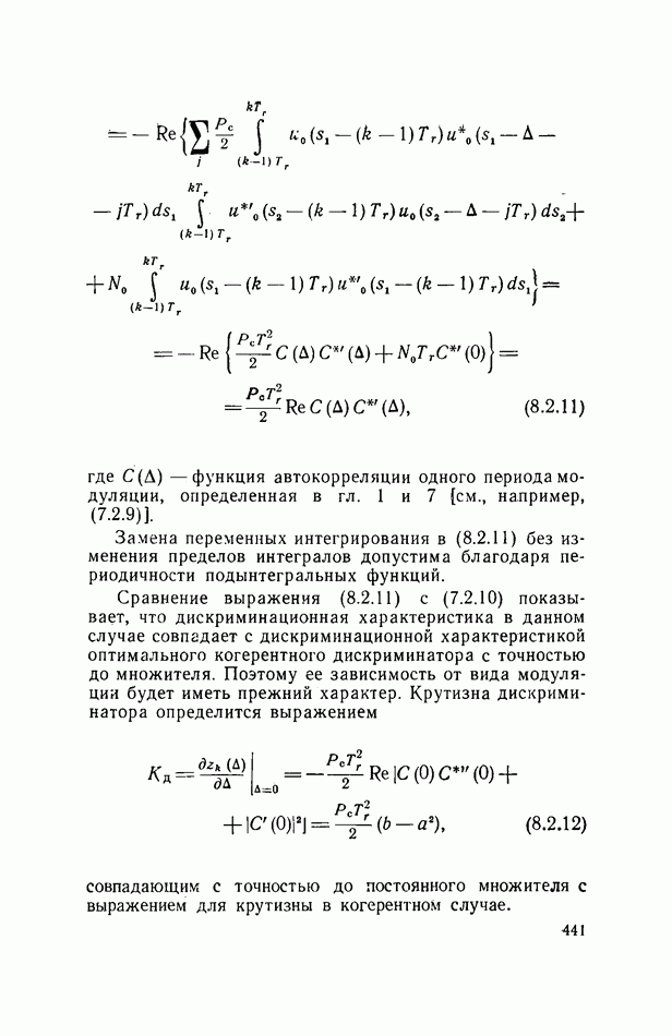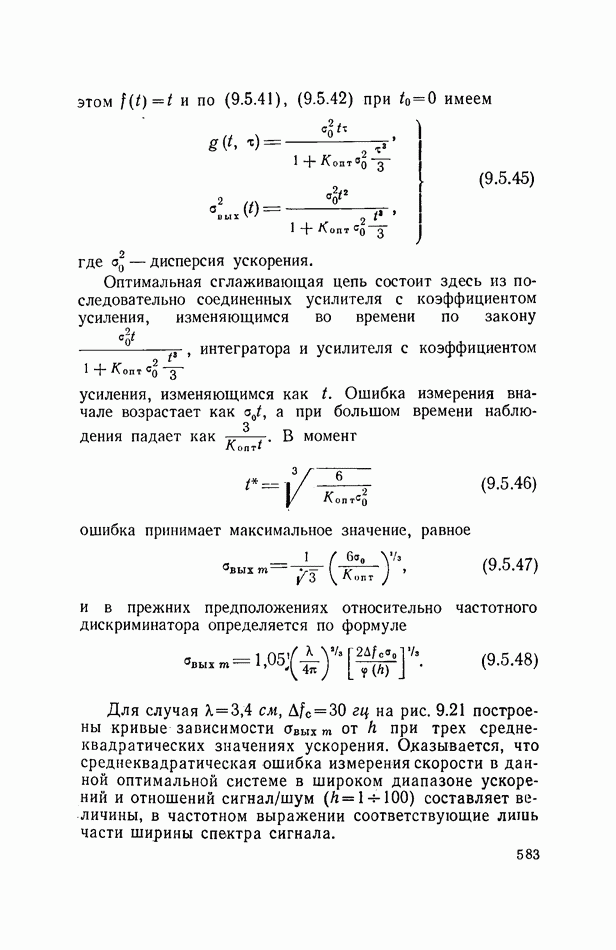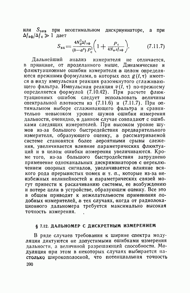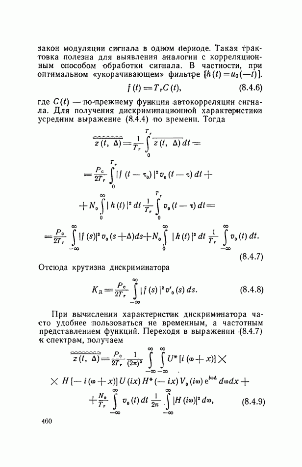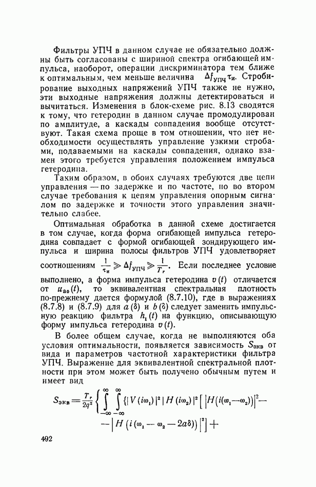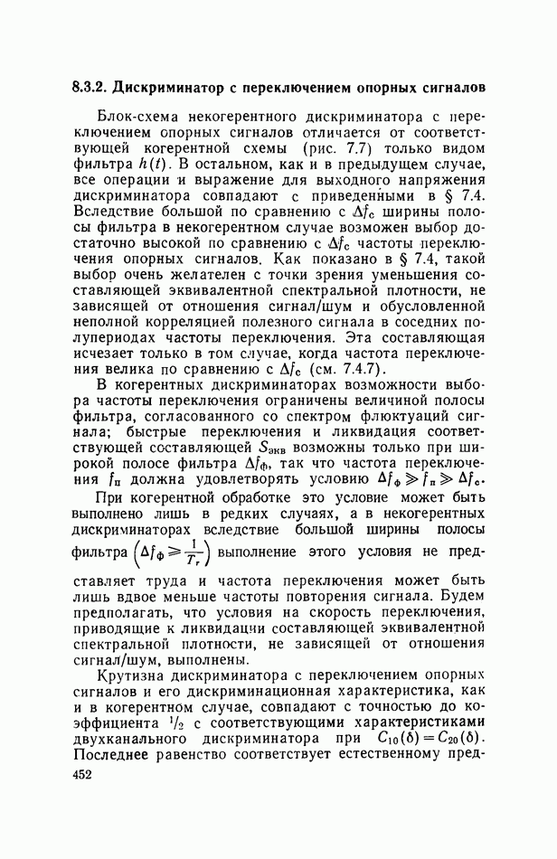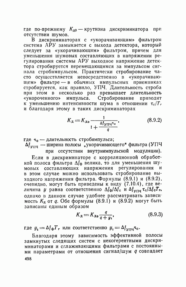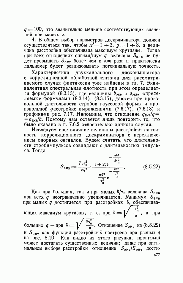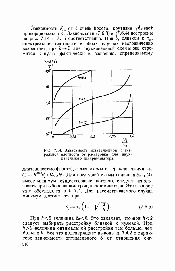 Свойства же оптимального дискриминатора определяются известной формулой для спектральной плотности, соответствующей дисперсии эффективной оценки