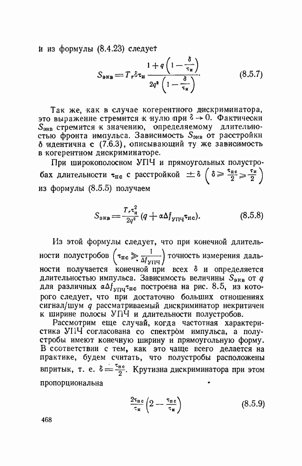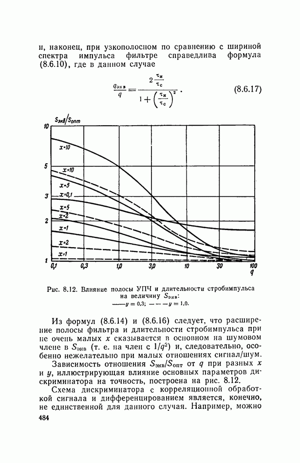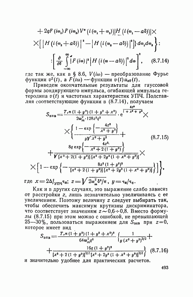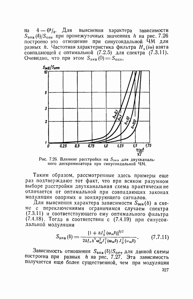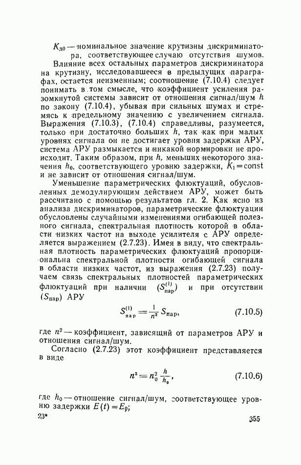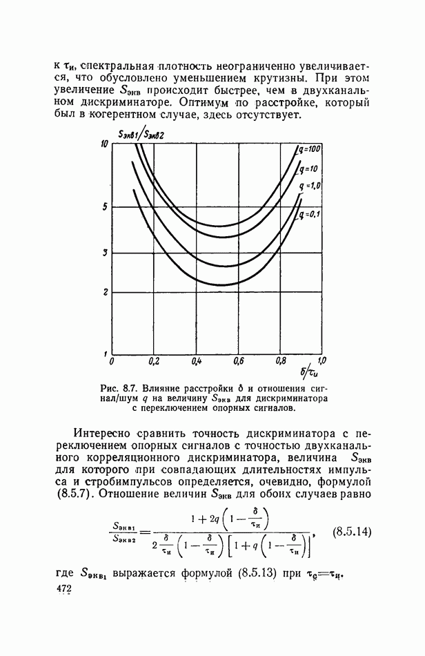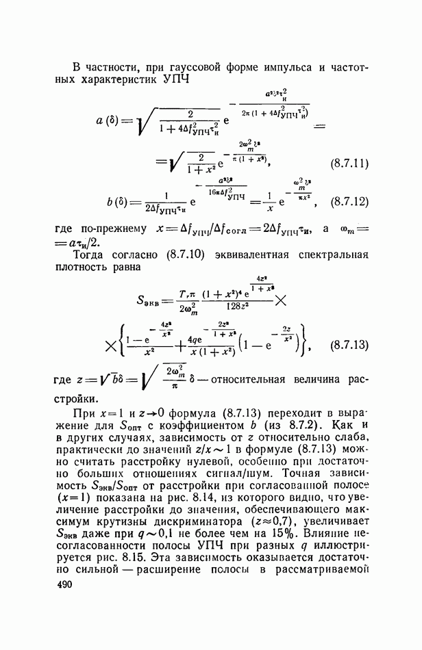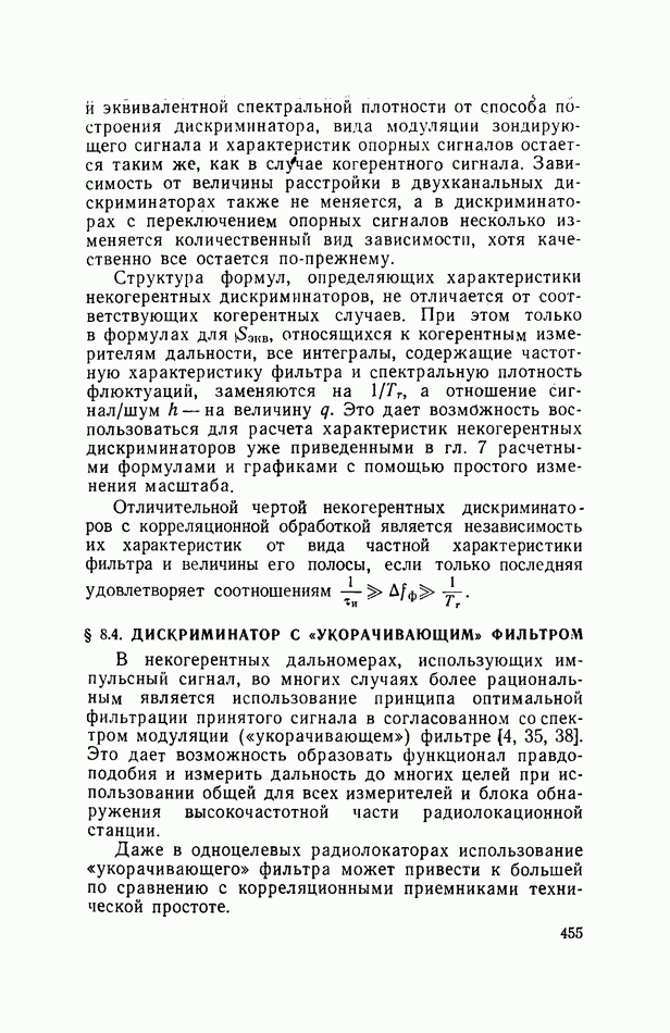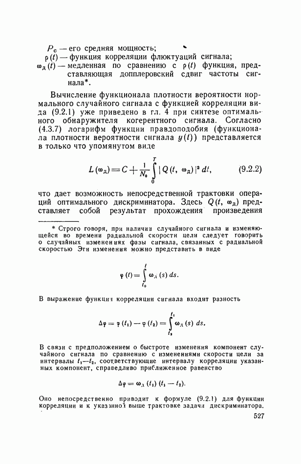 Свойства же оптимального дискриминатора определяются известной формулой для спектральной плотности, соответствующей дисперсии эффективной оценки