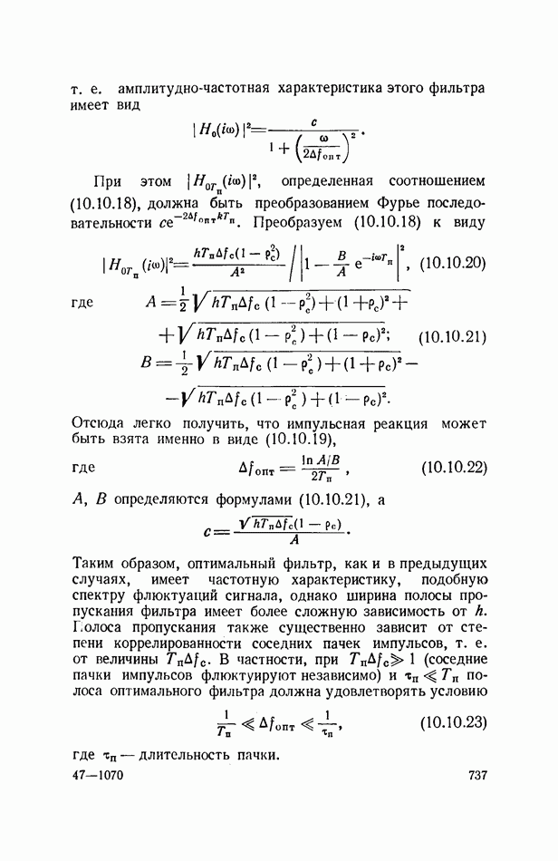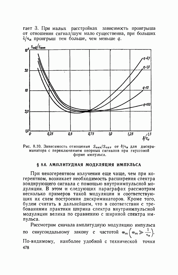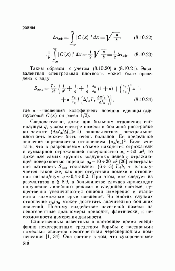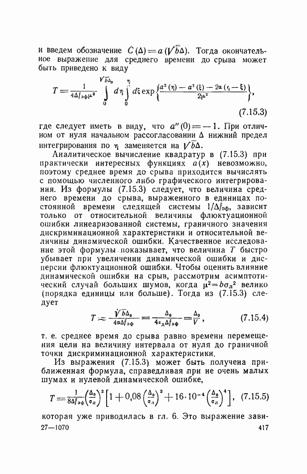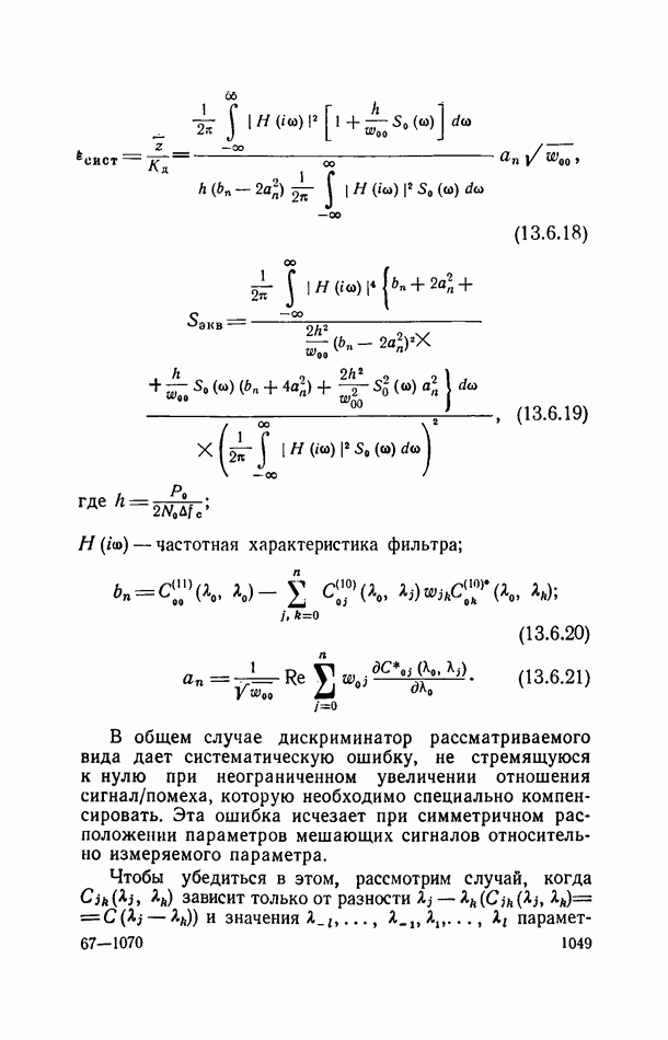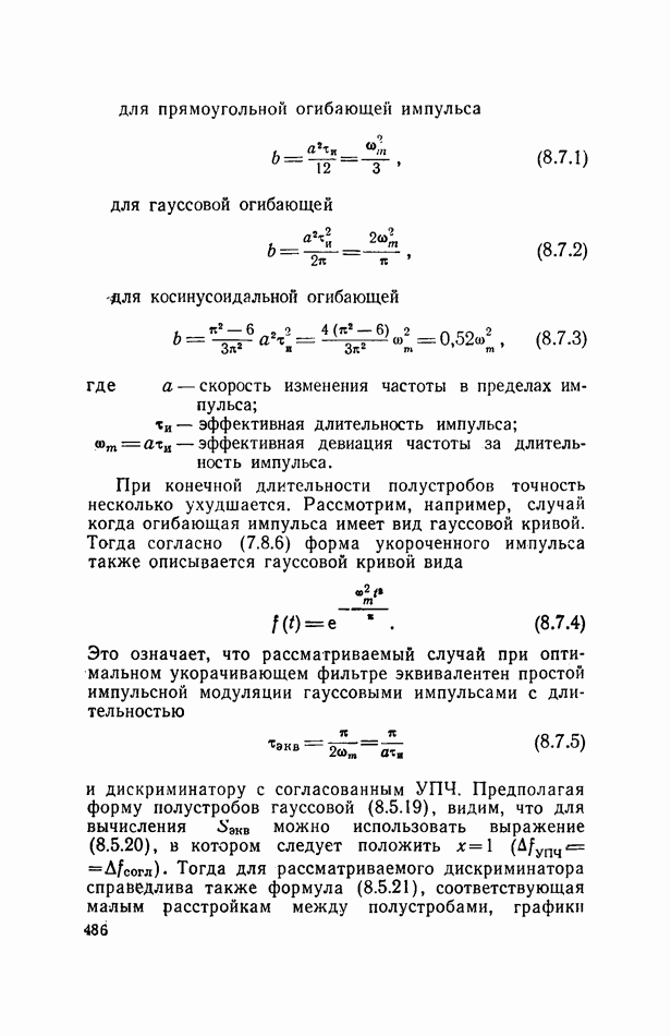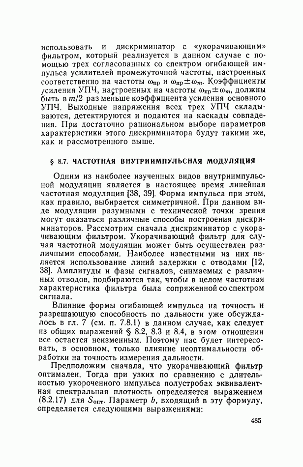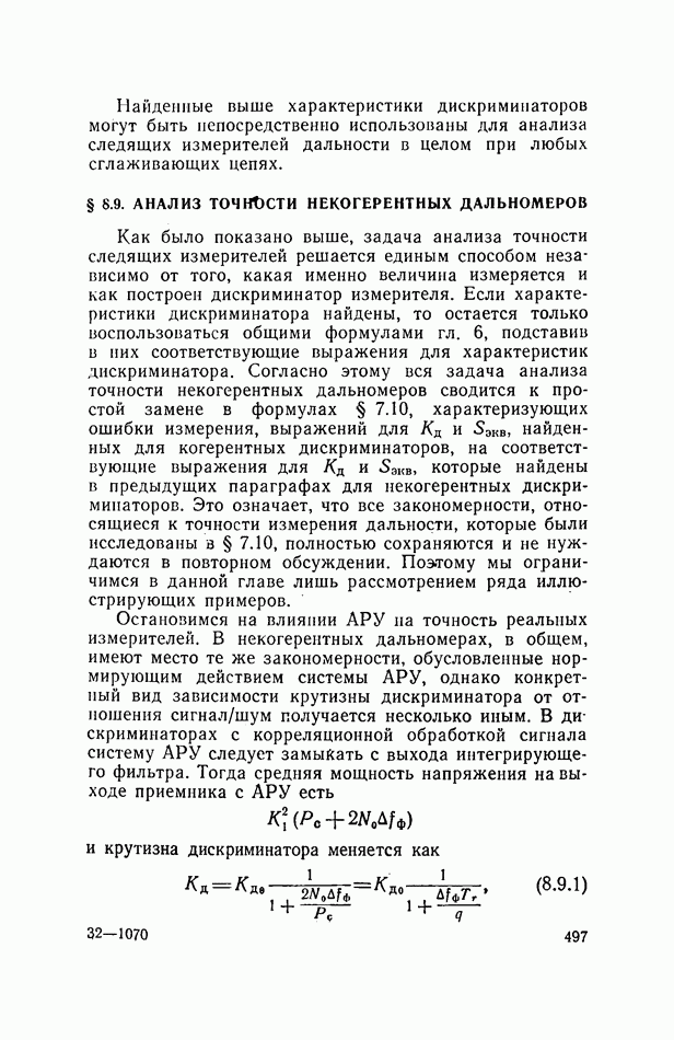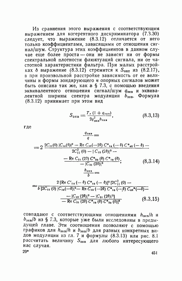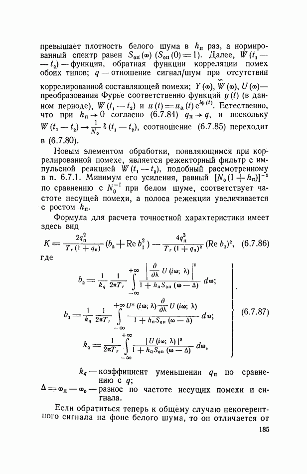 Свойства же оптимального дискриминатора определяются известной формулой для спектральной плотности, соответствующей дисперсии эффективной оценки