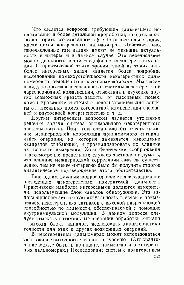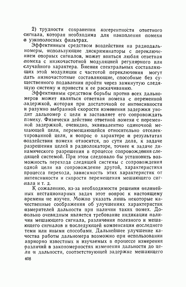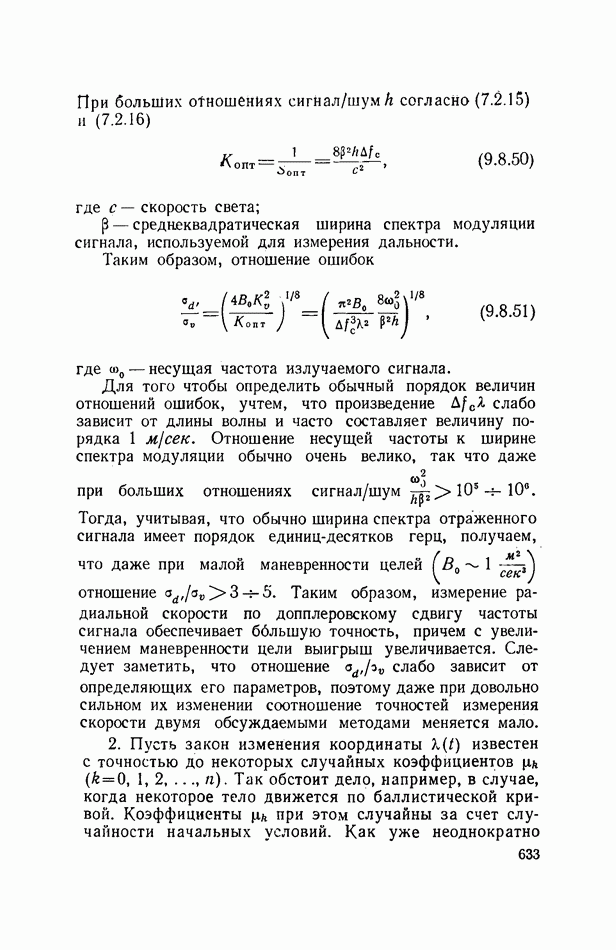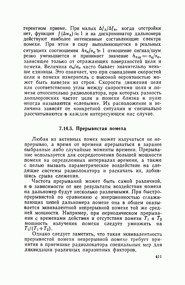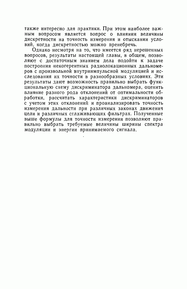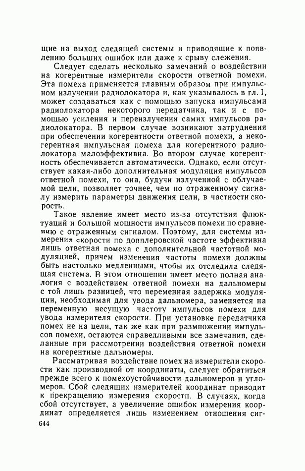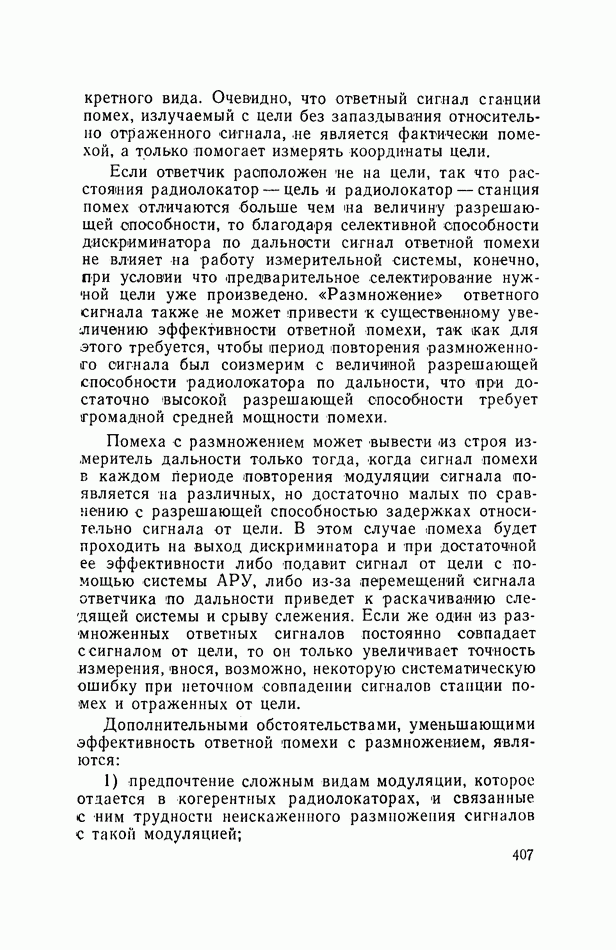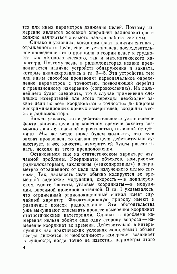 При измерении радиолокатором координат близко расположенных неразрешенных целей оказывается, что за счет взаимного влияния сигналов, отраженных от этих целей, средние значения измеренных величин не совпадают с истинными их значениями. При полном отсутствии разрешения радиолокатор измеряет координаты некоторого центра группы целей, а не координаты каждой цели. Вместе с тем если при заданном зондирующем сигнале ввести разрешение целей с помощью соответствующей обработки сигналов в приемнике, то, вообще говоря, уменьшается отношение сигнала к шуму и возрастает флюктуационная ошибка.
