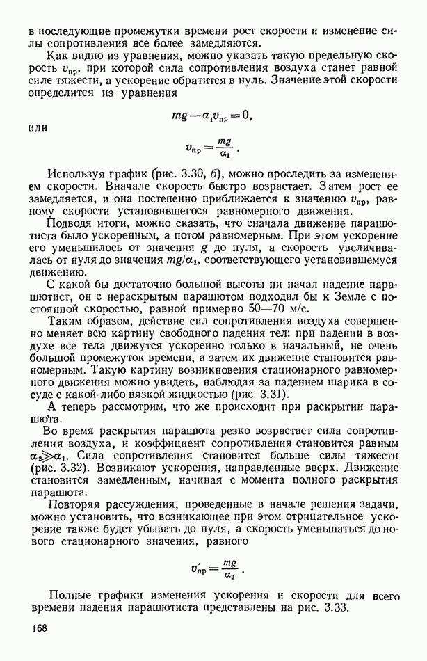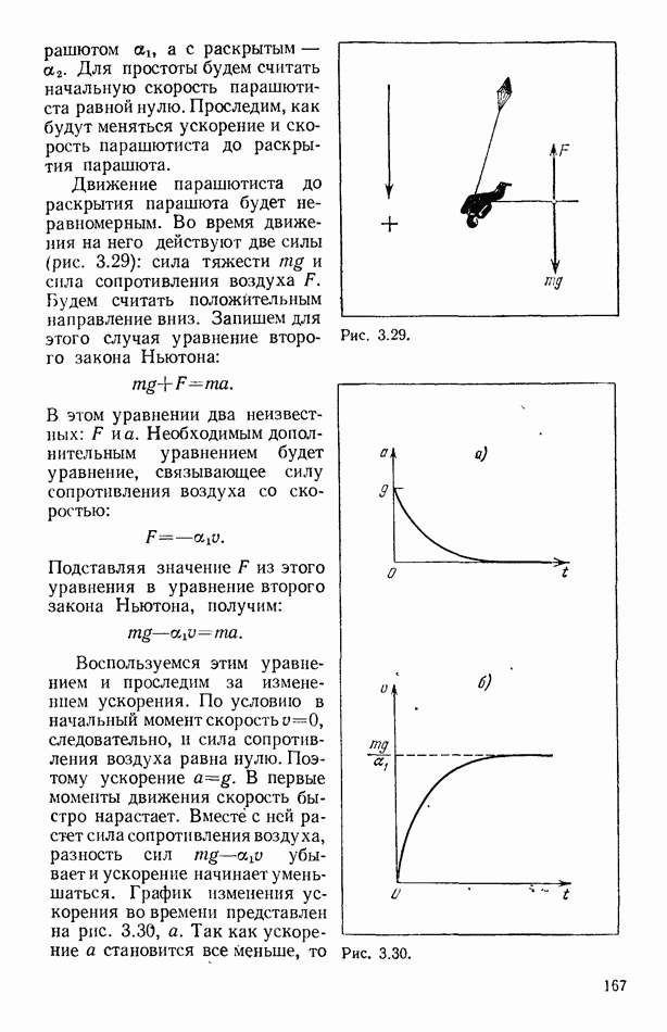 Опыты говорят о том, что эти различия обусловлены действием воздуха на движущиеся тела. Это сопротивление воздуха используется и практически, например при прыжках с парашютом. Падение парашютиста до и после раскрытия парашюта носит разный характер. Раскрытие парашюта изменяет характер движения, меняются скорость и ускорение парашютиста.