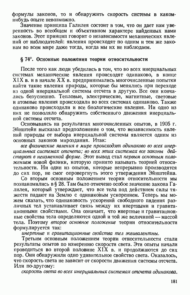 Закон Галилея под названием принципа эквивалентности вошел в фундамент общей теории всемирного тяготения (гравитации), которая была создана А. Эйнштейном в начале нашего века. Эту теорию Эйнштейн назвал общей теорией относительности.