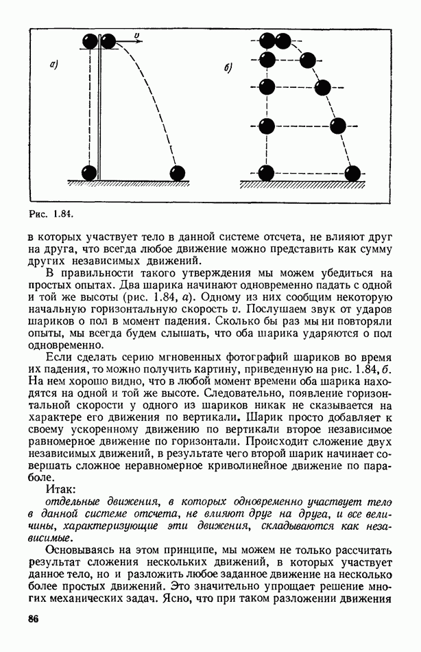 Это всеобщее явление, и уже поэтому изучение законов свободного падения тел только под действием притяжения Земли представляет особый интерес. Однако повседневные наблюдения показывают, что в обычных условиях тела падают по-разному. Тяжелый шар падаетбыстро, легкий лист бумаги падает медленно и по сложной траектории (рис. 1.80).